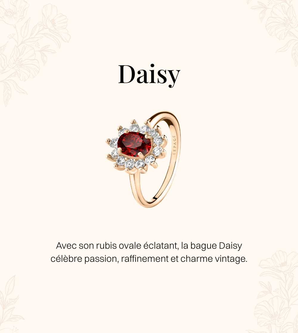 Dans l’écrin raffiné de la collection Suzanne, la bague Marguerite s’épanouit telle une fleur éternelle, façonnée par l’art joaillier. Son cœur précieux se pare tour à tour d’un diamant immaculé, éclat pur comme la lumière du matin, d’un saphir profond qui murmure la sérénité des ciels d’azur, d’une émeraude vibrante comme la promesse du printemps, ou d’un rubis ardent qui embrase l’âme de passion. Serties dans l’éclat argenté de l’or blanc, la chaleur de l'or jaune ou la douceur de l'or rose 750 millièmes, ces gemmes scintillent au milieu d’un halo de diamants, pétales de lumière qui subliment leur beauté. Chaque variante révèle une personnalité unique, mais toutes partagent le même charme intemporel, celui d’une fleur née du passé et réinventée pour la femme d’aujourd’hui, portant en elle la poésie, l’élégance et l’émotion des grands bijoux de tradition.