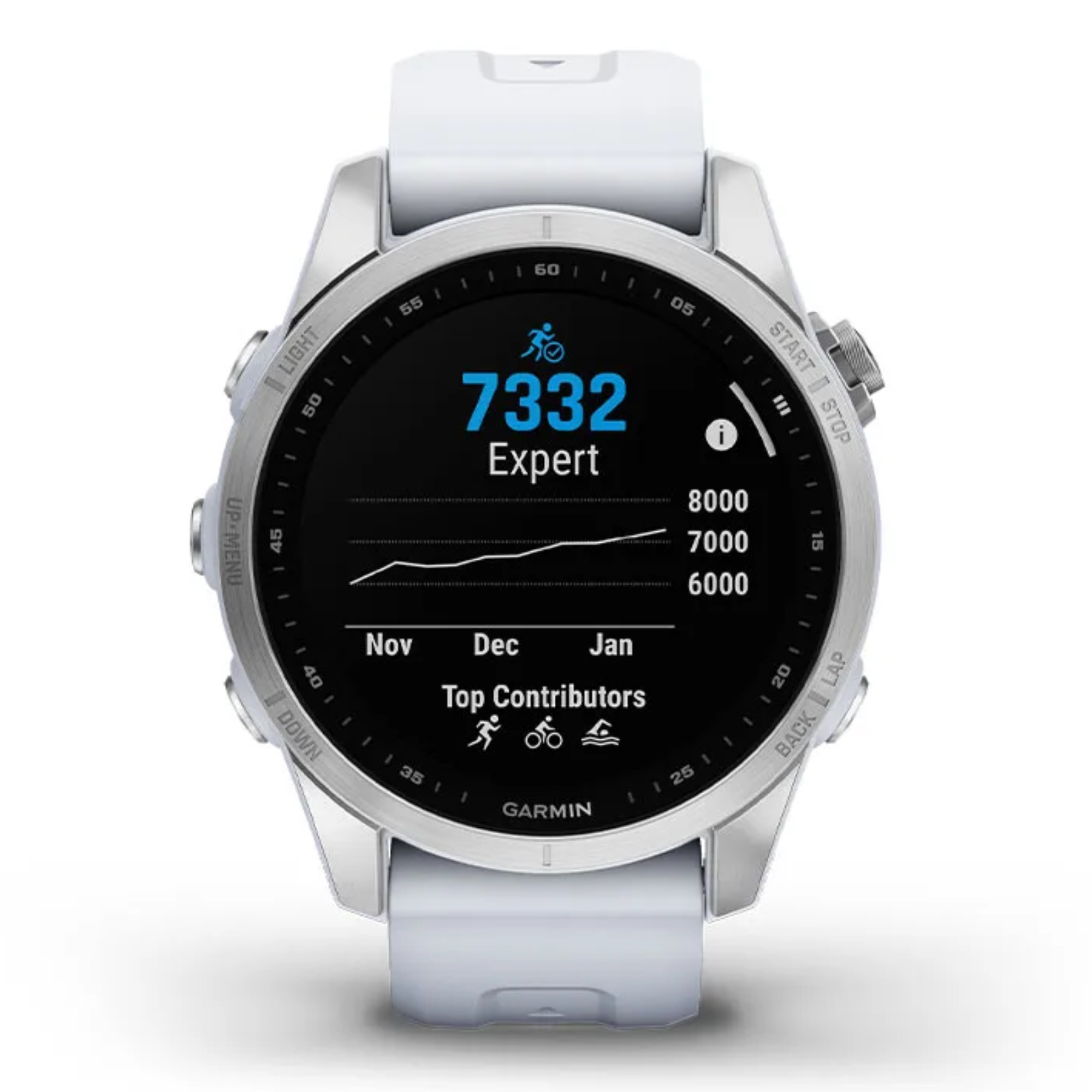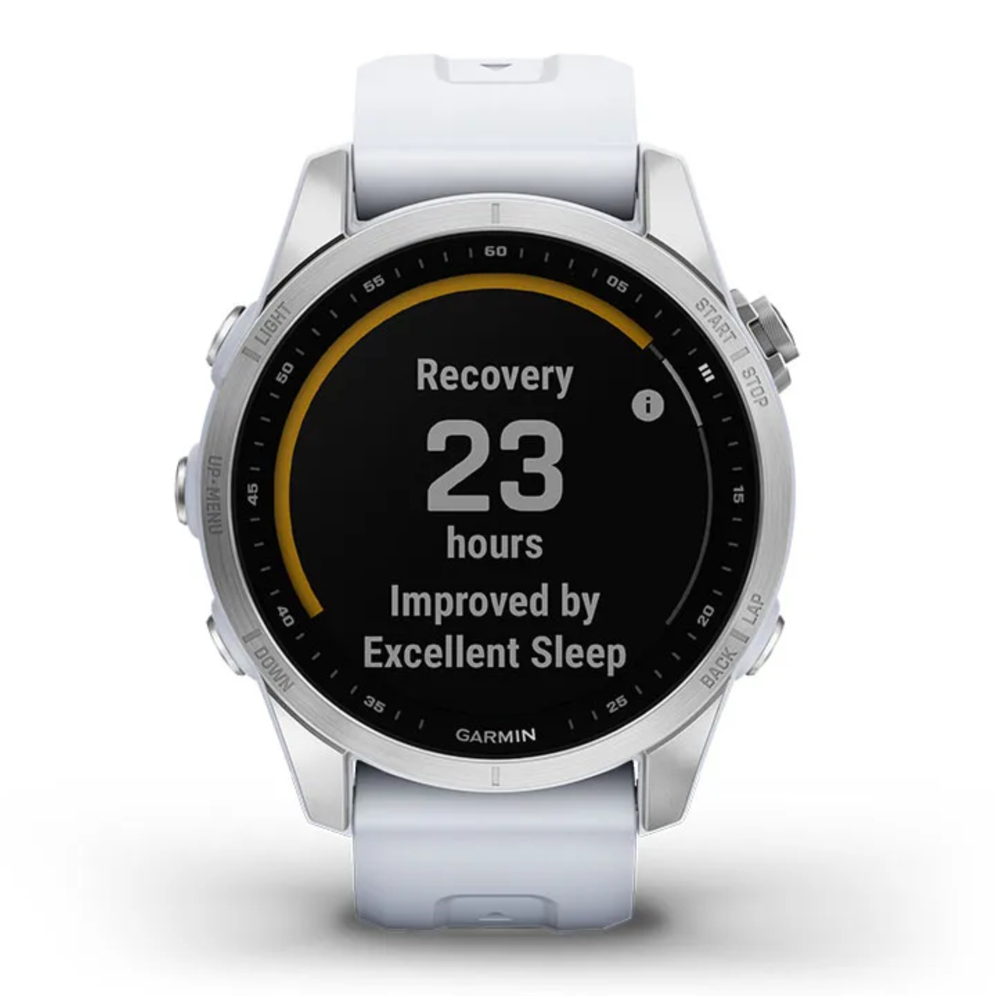 - GPS, Fréquence cardiaque et stress au poignet, parcours de golf préchargés, musique et streaming, garmin pay, Sleep control
