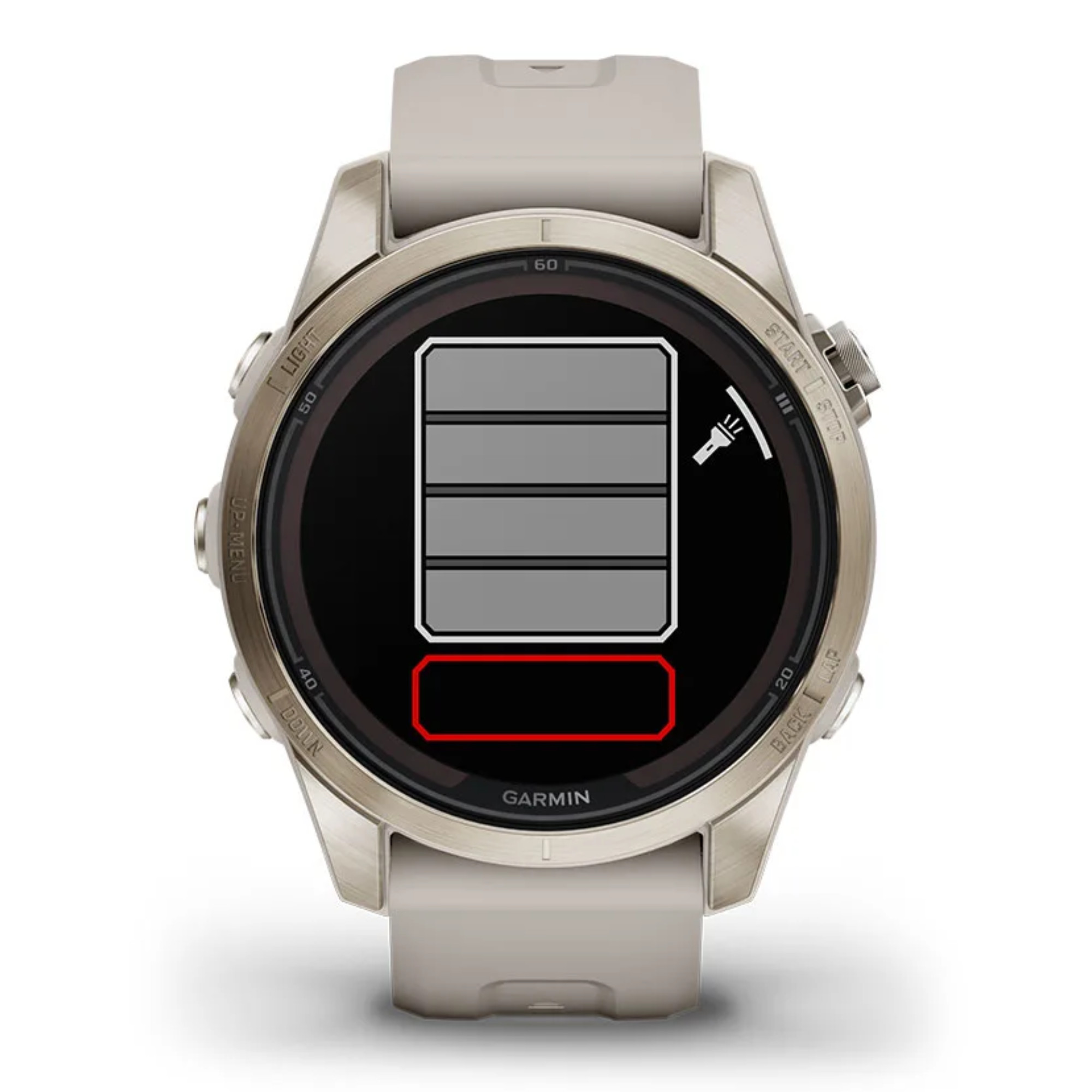 One of the most noteworthy new features on this Fénix 7S Pro ref. 010-02776-30 is the higher-contrast MIP (Pixel Memory) touchscreen compared to the Fénix 7 series, for improved legibility (in sunlight in particular) on the field during your activity. The Sapphire glass has been strengthened and reworked for greater resistance, and comes in a 1.2" format with a resolution of 240 x 240 colour pixels. Its robust, lightweight 42 mm case is made of titanium light gold. Autonomy has been improved to 11 days, and 14 days thanks to the solar glass. The watch operates for up to 37 hours in GPS mode and up to 26 days in GPS expedition and solar mode, respectively 46 hours and 43 days. This watch comes with an elegant cream leather strap and an additional silicone strap free of charge.