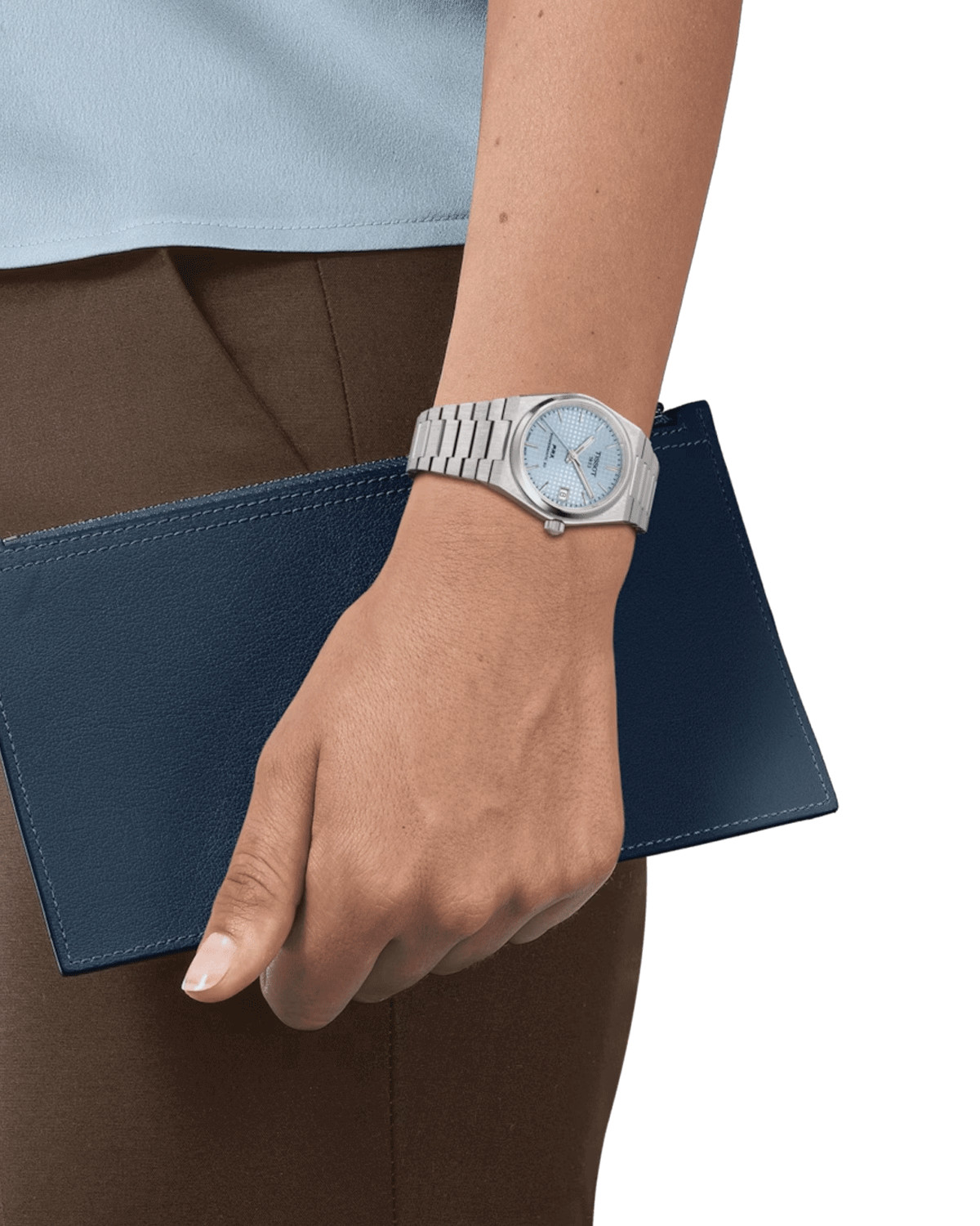 The Tissot PRX Powermatic 80 T137.207.11.351.00, launched in 2023, reinterprets the iconic design of the 1970s with finesse. Featuring a light blue "Tiffany" dial, this watch is instantly appealing for its elegant yet discreet look. At 35 mm in diameter, it has a subtly refined look that suits both men's and women's wrists, embodying a perfect combination of retro-modern style and contemporary sophistication. Its minimalist, versatile design makes it a must-have accessory for those seeking to combine simplicity and elegance.