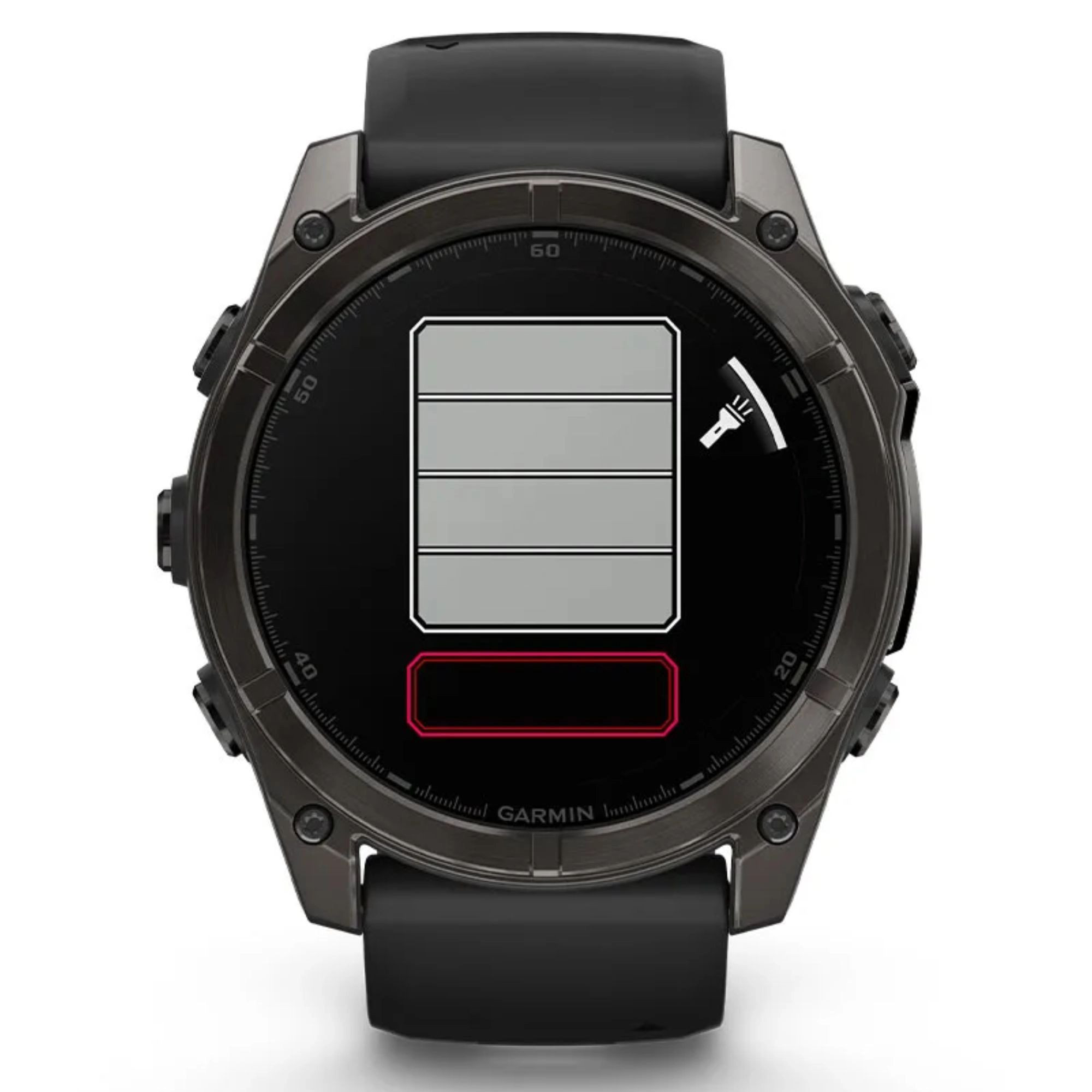Adventure is at hand... The Fenix 8 revents the world of connected multisport watches once again. Designed to accompany you on every new challenge, this watch version features a luminous AMOLED dial, exceptional quality and a resolution of 454 x 454 pixels. The extended battery life makes this technological jewel a real ally! Sturdier than ever, this watch version with its Titanium bezel comes with two straps to suit every situation: a sleek titanium strap and a black silicone strap redesigned to offer the wearer ultimate comfort.
