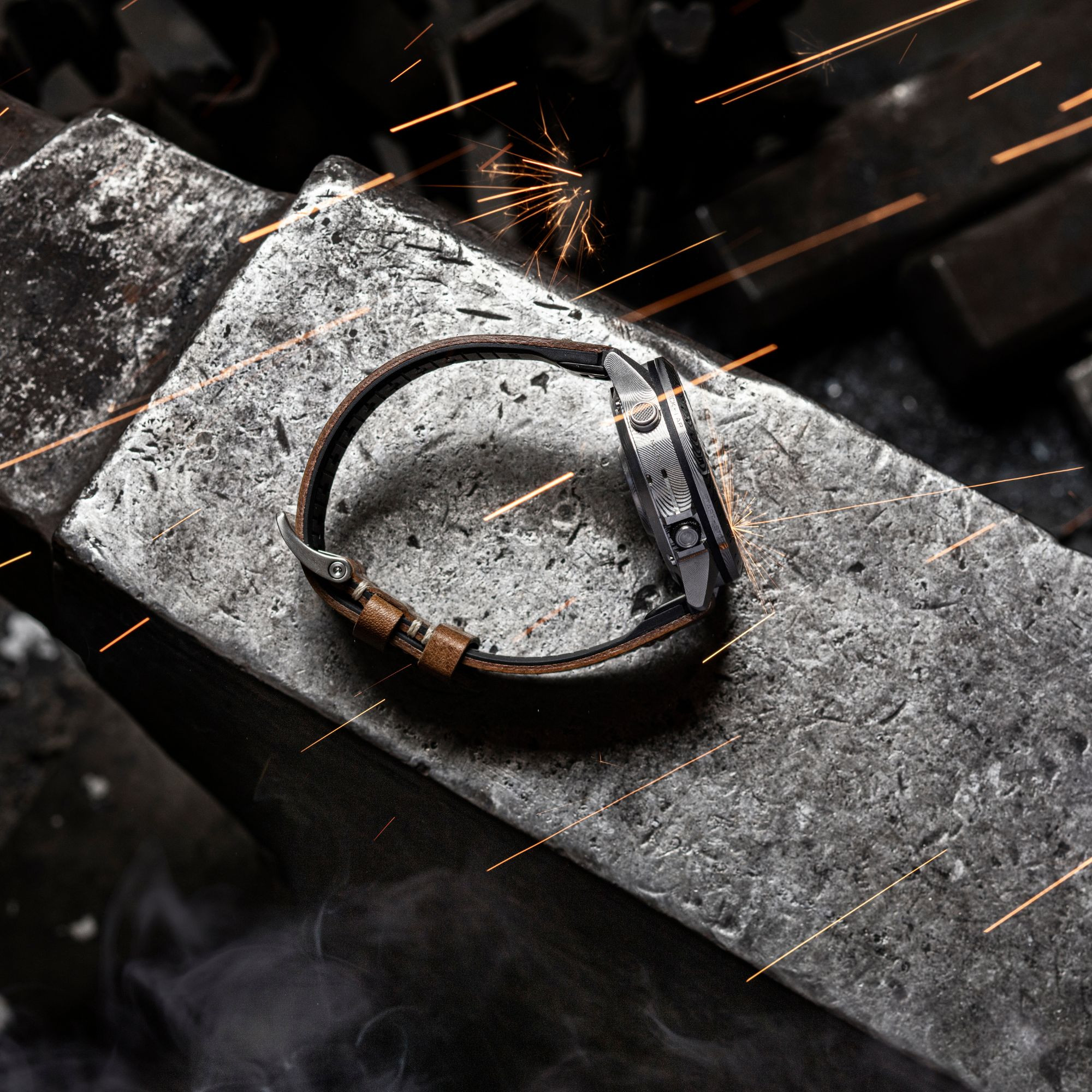 - 46 mm bezel and case in Damascus steel - an age-old material renowned for its unprecedented resistance
