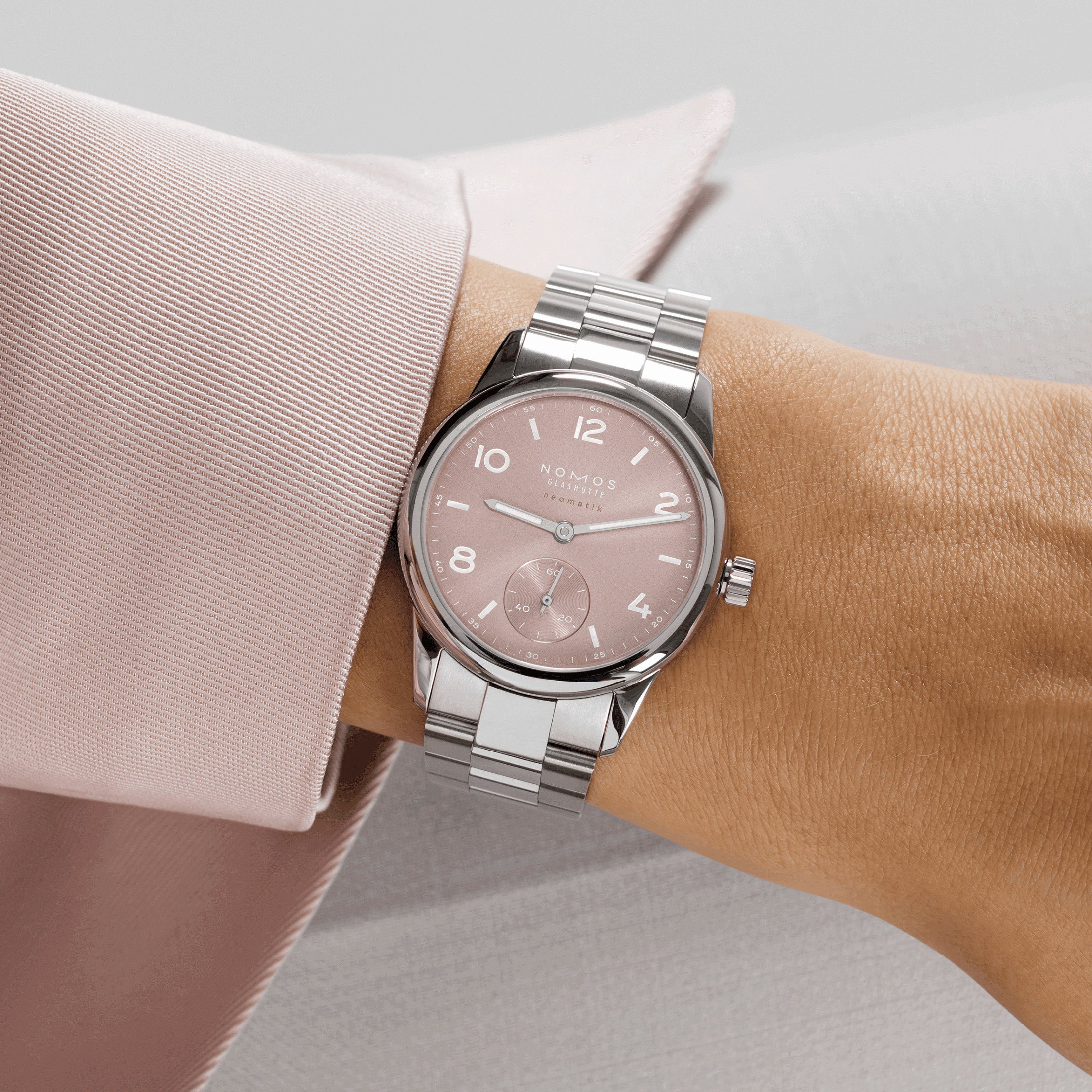 With the Club Sport neomatik 34 rosé, Nomos has created a resolutely modern watch. The delicate pink of the dial, combined with the polished stainless steel, creates an ensemble that is both sophisticated and contemporary. A watch that's sure to turn heads.