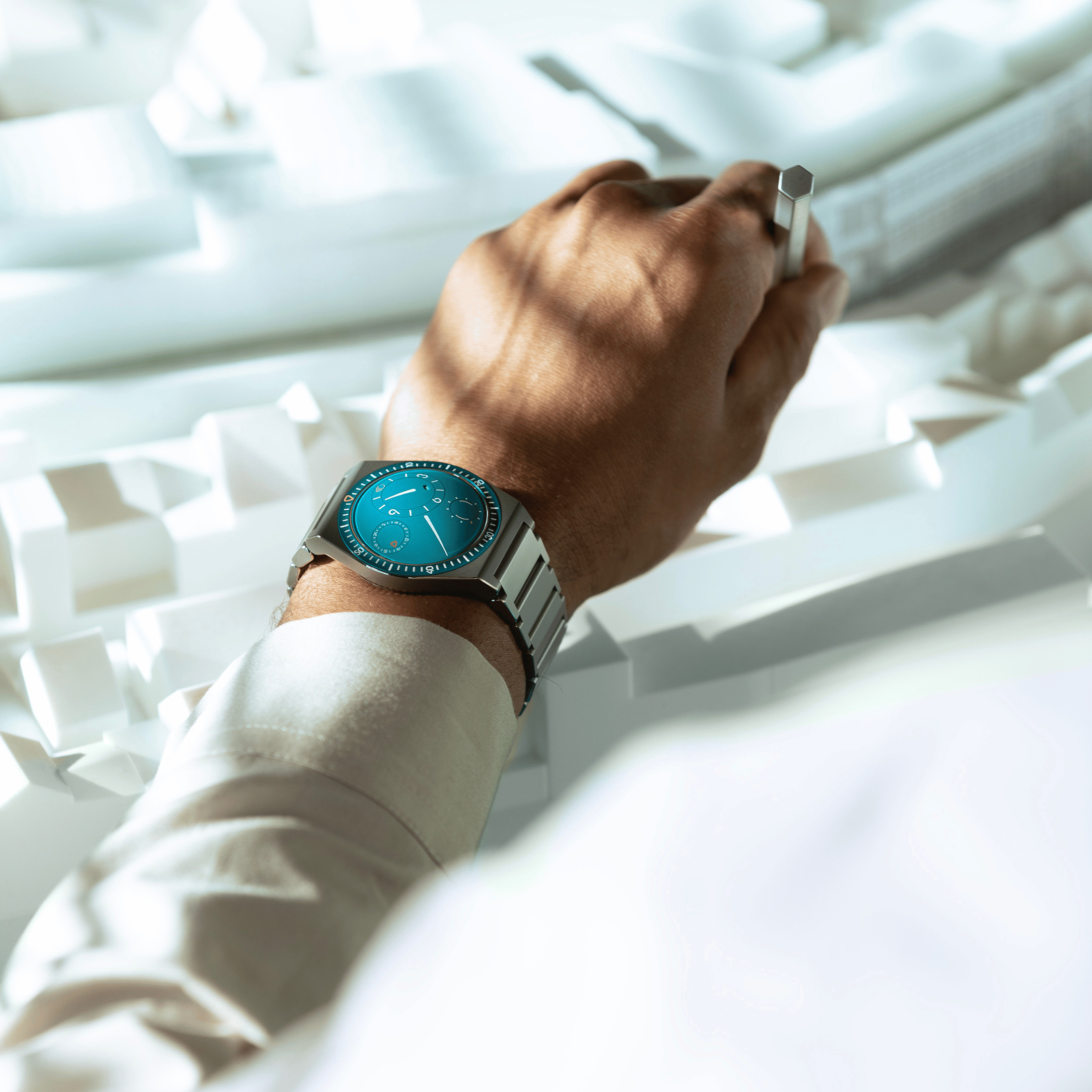 To celebrate its 15th anniversary, Ressence unveils an exclusive edition of its first tool-watch with an integrated bracelet: the TYPE 7 XV Aquamarine. Limited to 80 pieces, this version embodies the perfect fusion of avant-garde design, innovative watchmaking engineering, and a captivating aquatic aesthetic.