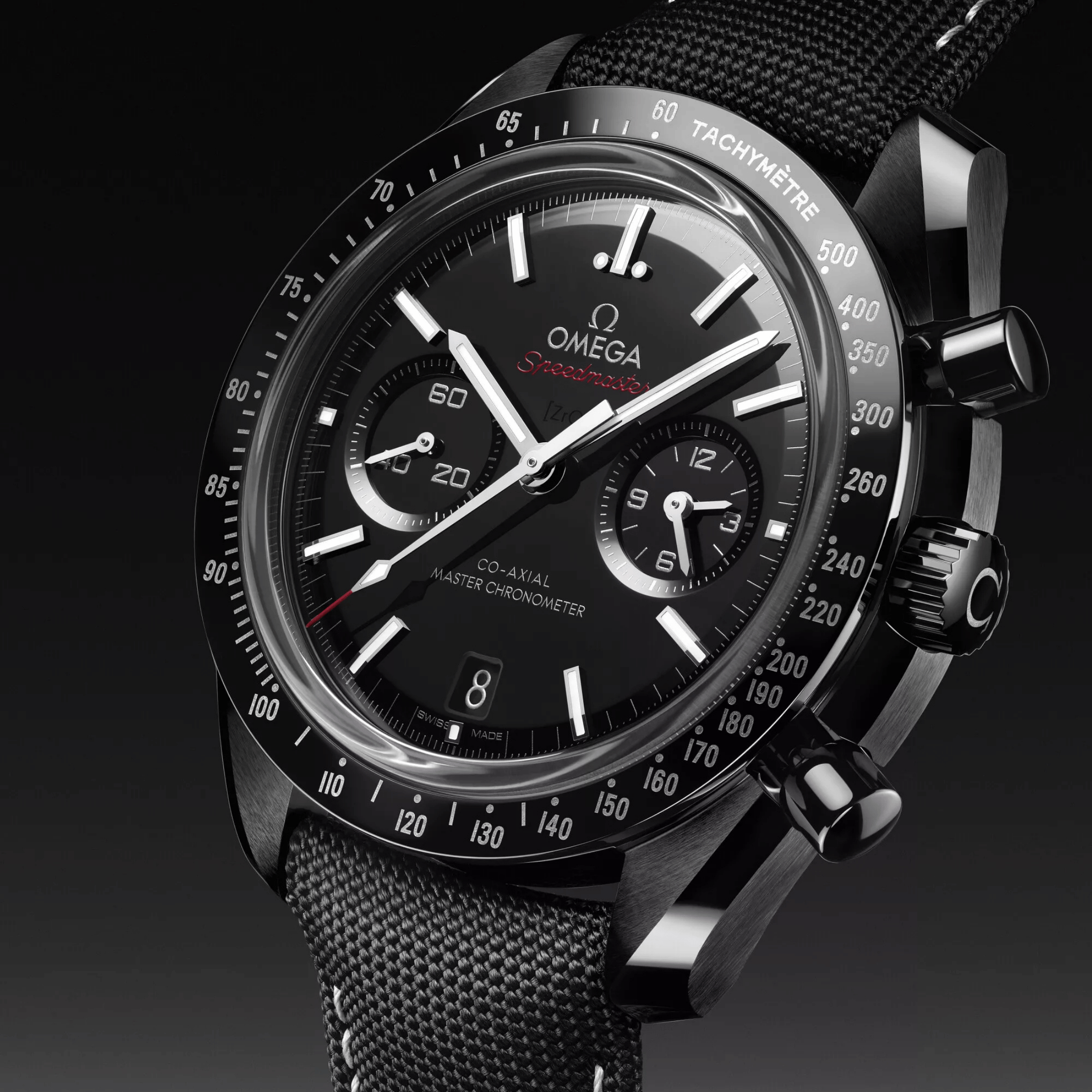 Forty-five years later, in 2013, OMEGA paid tribute to that feat by unveiling the Dark Side of the Moon — the first Speedmaster entirely crafted from black ceramic. A technical tour de force as much as an aesthetic manifesto, it fused pure darkness with light, emptiness with matter, legend with modernity. With its monochrome allure and powerful presence, it inaugurated a whole new lineage, soon joined by the Grey Side, White Side, Pitch Black, and Sedna Black — each a different interpretation of the same lunar myth.