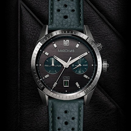 Time and the watch structure our lives, and the color green is the symbol. At March LA.B we find an omnipresent green signature on small details that make the brand strong and unique. The stitching and the return of the leather straps are green. On the automatic models, the transparent case back is green. On the date window, the number 3 is green, a nod to the month of March, the third of the year and birth month of the founder, Alain Marhic. The color green, which offers many shades, is the designer's favorite color. For the anecdote, when he was a child, Alain Marhic always dressed in green.