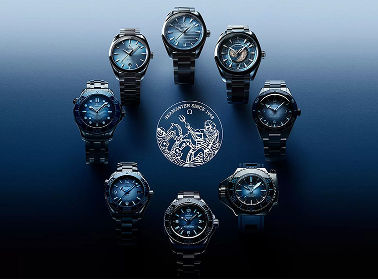 "OMEGA pays tribute to a watchmaking family born 75 years ago with a collection of 11 watches, Seamaster Summer Blue, which celebrates water resistance."