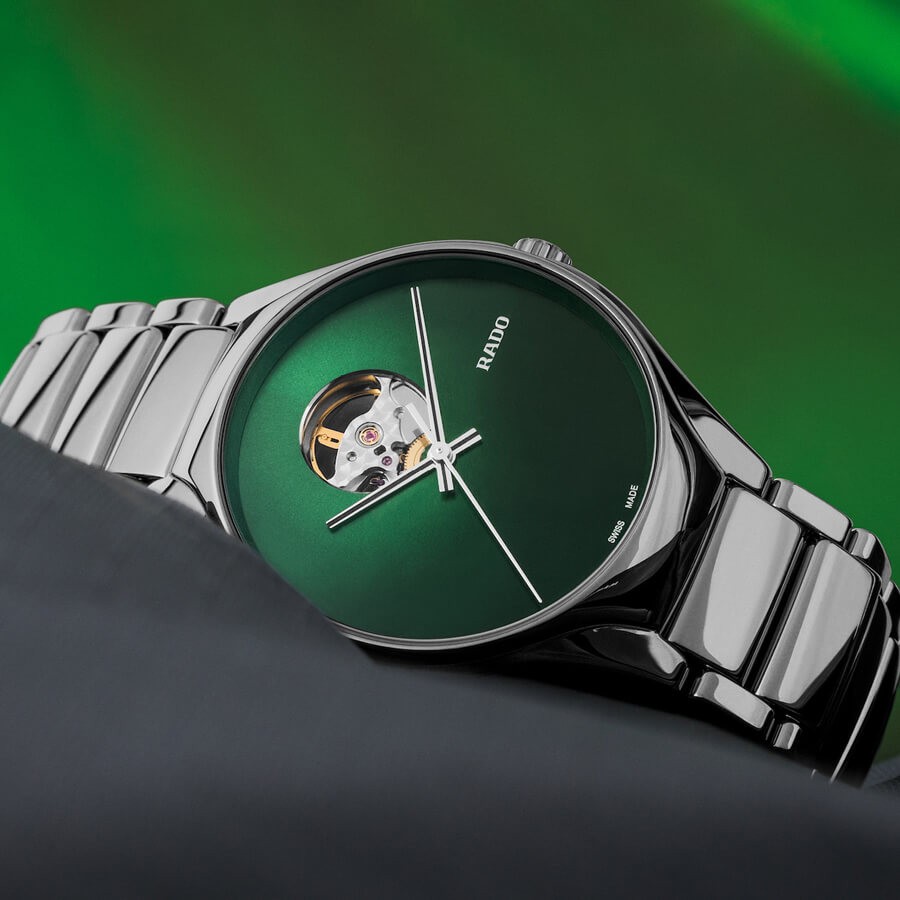 In order to create models with original designs, Rado has had to defy technical constraints and push innovation to the limit. In its constant search for aestheticism, the watchmaking house has notably integrated sapphire crystal into its watches, allowing for numerous possibilities of new shapes and aspects. In addition, the brand has revolutionised the watch market by being the first to manufacture domed sapphire crystals.