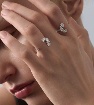 The "Serti Sur Vide" line is distinguished by its innovative setting technique, in which the precious stones seem to float as if in suspension, capturing the light in a spellbinding way. Each piece is a perfect fusion of art and technique, creating a subtle balance between lightness and sophistication. The sleek, architectural lines are enhanced by the beauty of the precious stones that adorn the skin of women.