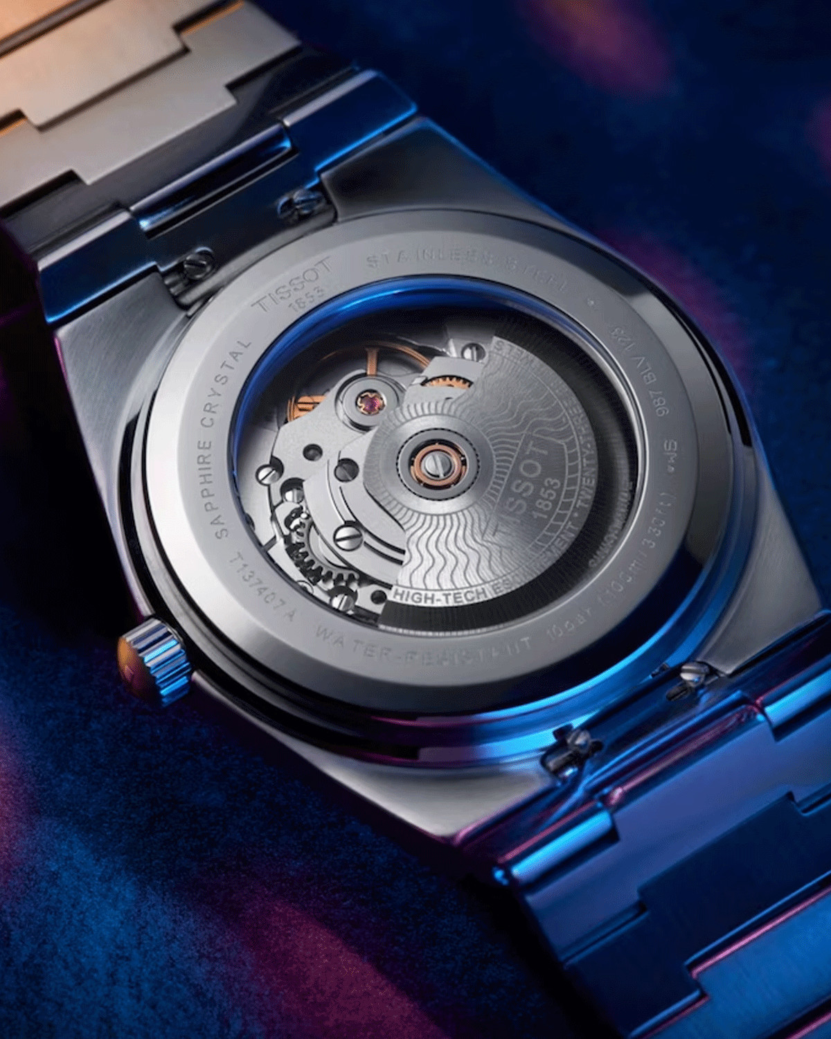 Montre Tissot T-Classic PRX Powermatic 80 Or Rose cadran bleu bracelet acier 40 mm