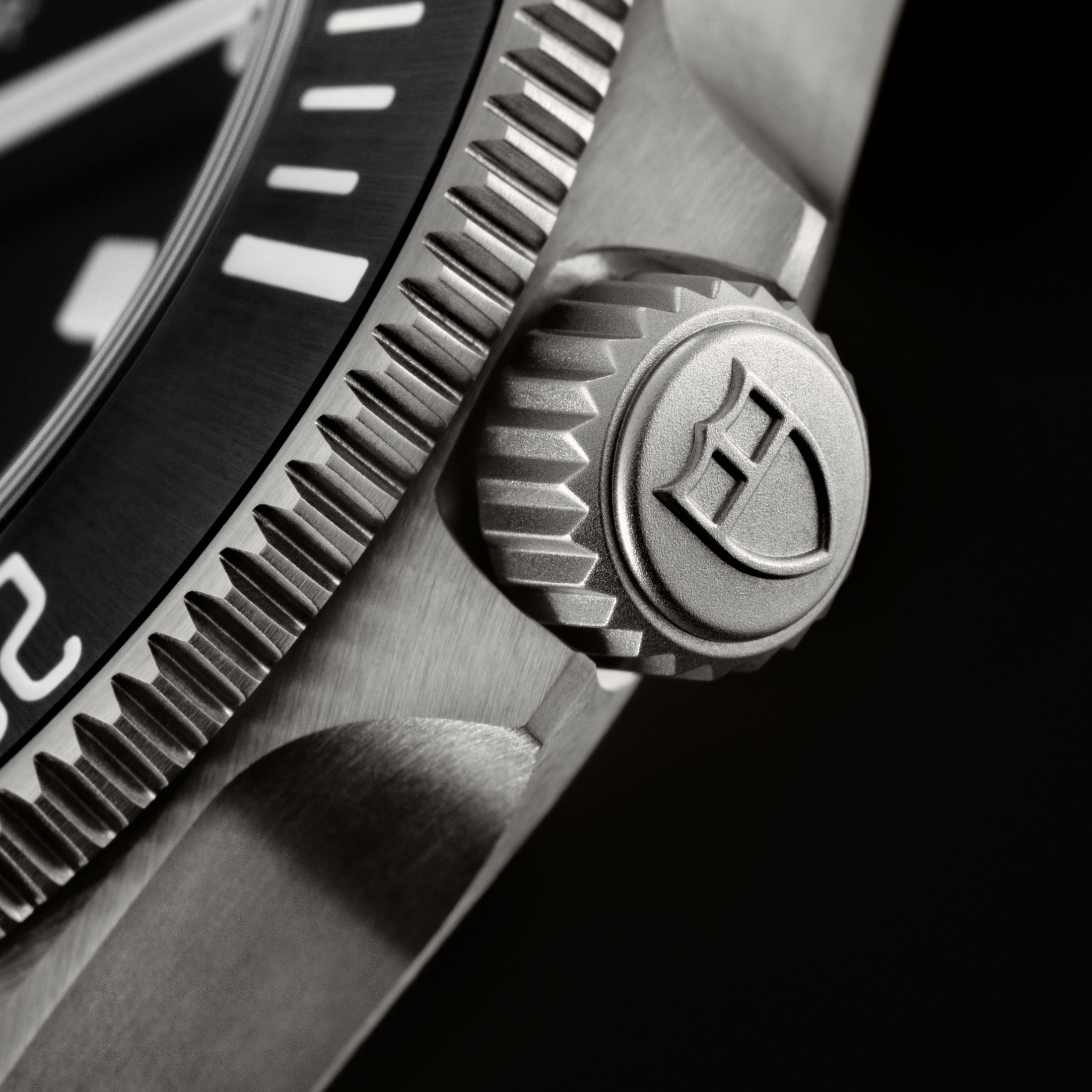 Le savant équilibre du modèle Pelagos 39 est obtenu grâce à un boîtier entièrement satiné, pour un effet mat, en ligne avec l’esthétique de la collection Pelagos, qui contraste habilement avec l’éclat de son insert de lunette en céramique noire satinée-soleil réhaussé et d’une graduation chargée en matière lumineuse blanche. Une lunette dont le diamètre dépasse légèrement celui de la carrure de manière à en optimiser la préhension.