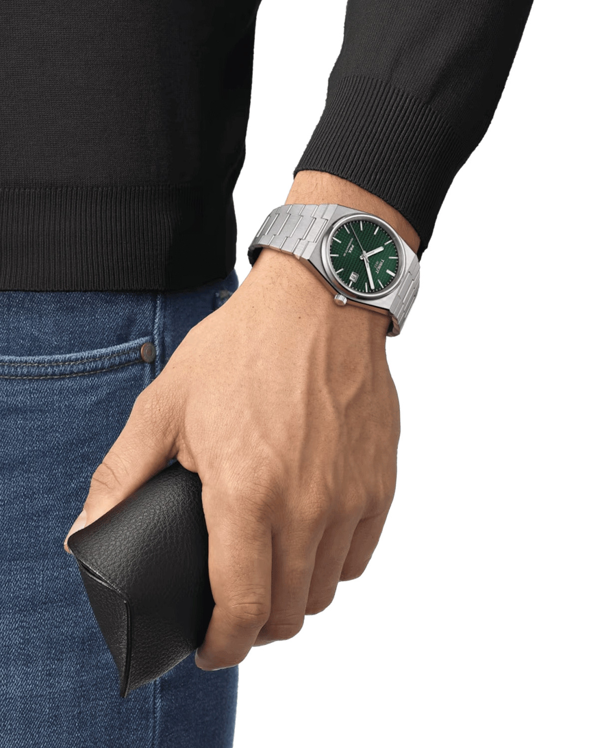 La Tissot PRX Powermatic 80 et son cadran vert guilloché capturent l'énergie et le style iconique des années 70, où liberté et audace étaient à l'honneur. Cette montre, avec sa teinte vibrante et son design épuré, est un parfait mélange de rétro et de modernité, idéale pour les jeunes générations en quête d'un accessoire tendance, original et élégant. Que vous souhaitiez briller lors de vos sorties ou afficher un style affirmé dans la vie quotidienne, cette PRX reflète un esprit dynamique et libre, tout en s'adaptant aux tendances actuelles.