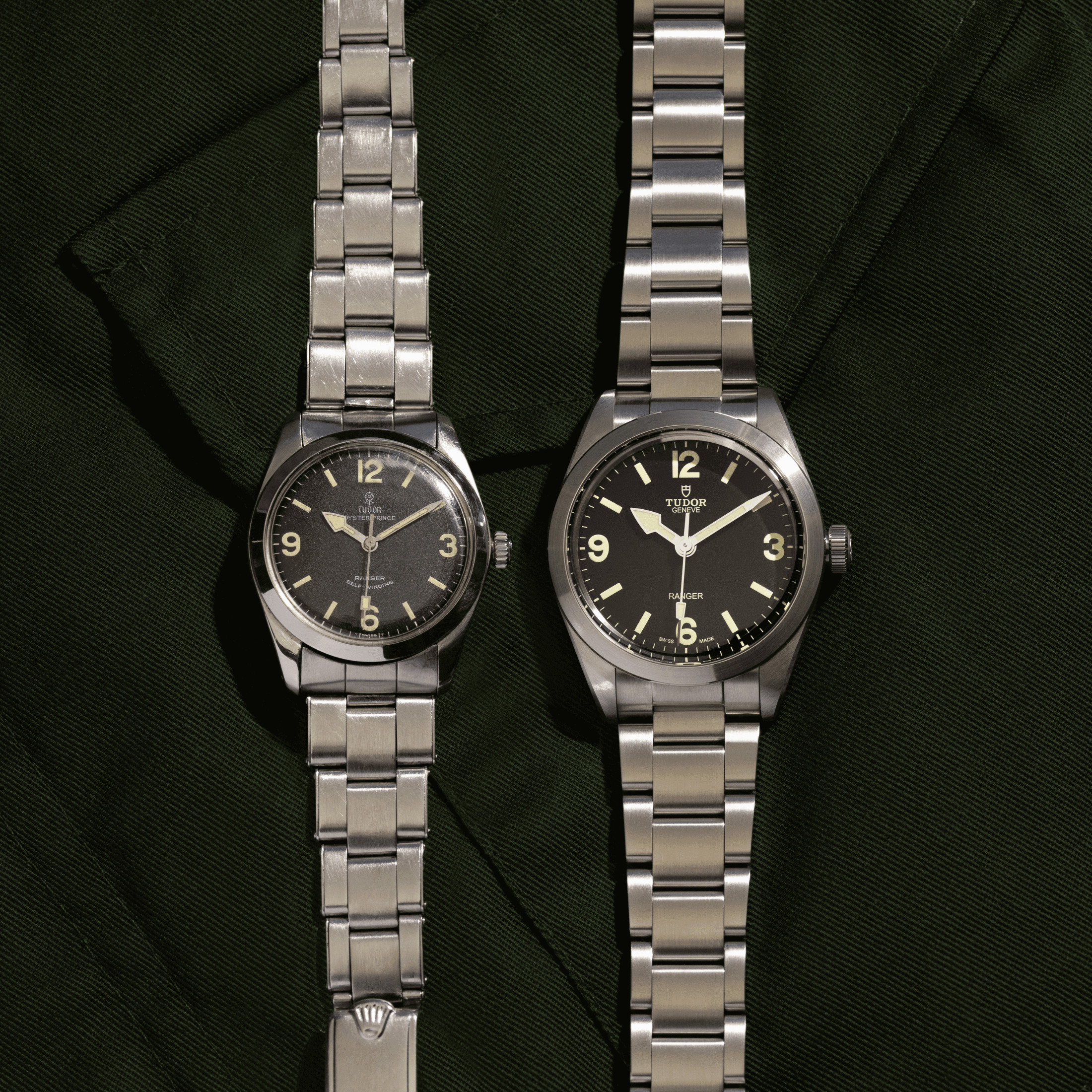 Il faut pour trouver les origines de la famille TUDOR Ranger, remonter à 1929. C’est en effet cette année-là, trois ans après avoir fait déposer la marque « The TUDOR », que Hans Wilsdorf fait enregistrer l’appellation « Ranger ». À l’époque, elle n’est pas utilisée pour désigner un modèle spécifiquement mais plutôt pour ajouter une dimension aventurière à certaines montres de la collection TUDOR. Il faut attendre les années soixante pour voir apparaitre l’esthétique qui caractérise Ranger aujourd’hui encore. Une TUDOR Ranger est en effet immédiatement reconnaissable à ses grands chiffres arabes généreusement surmontés de matière lumineuse à 3, 6, 9 et 12 heures de même que pour ses aiguilles au dessin unique.