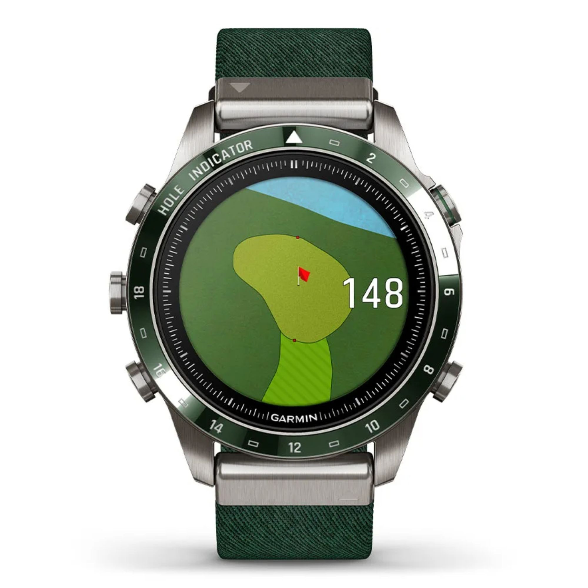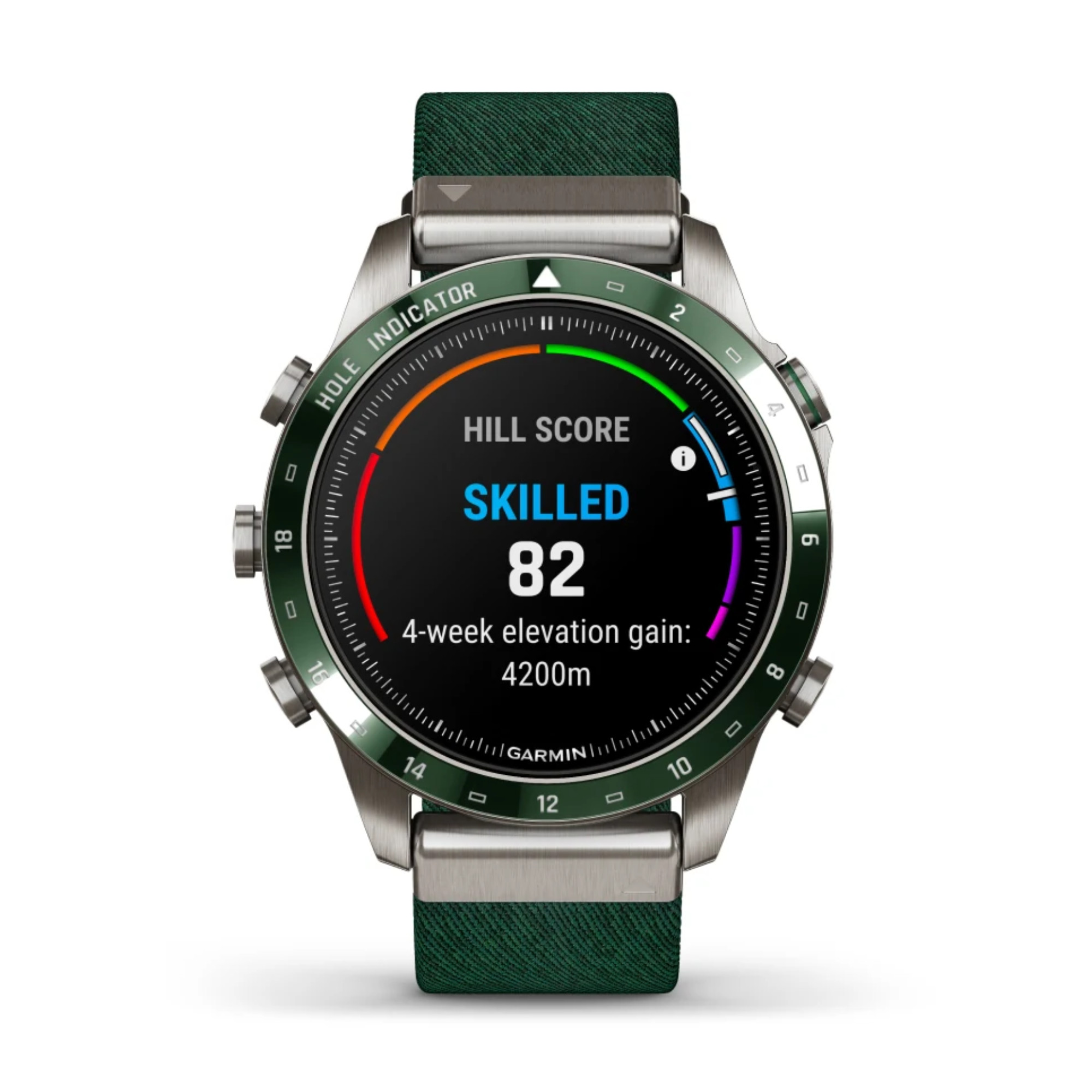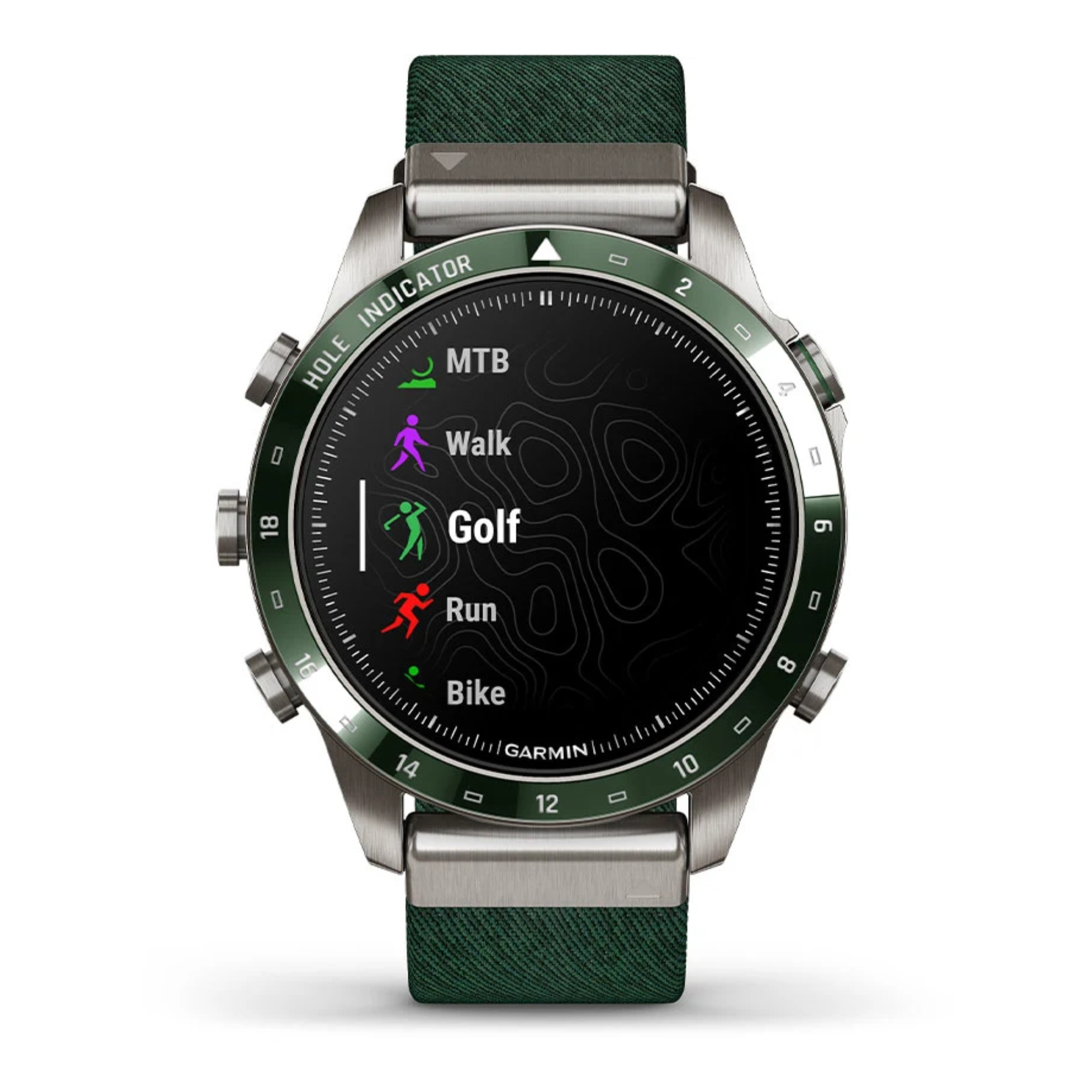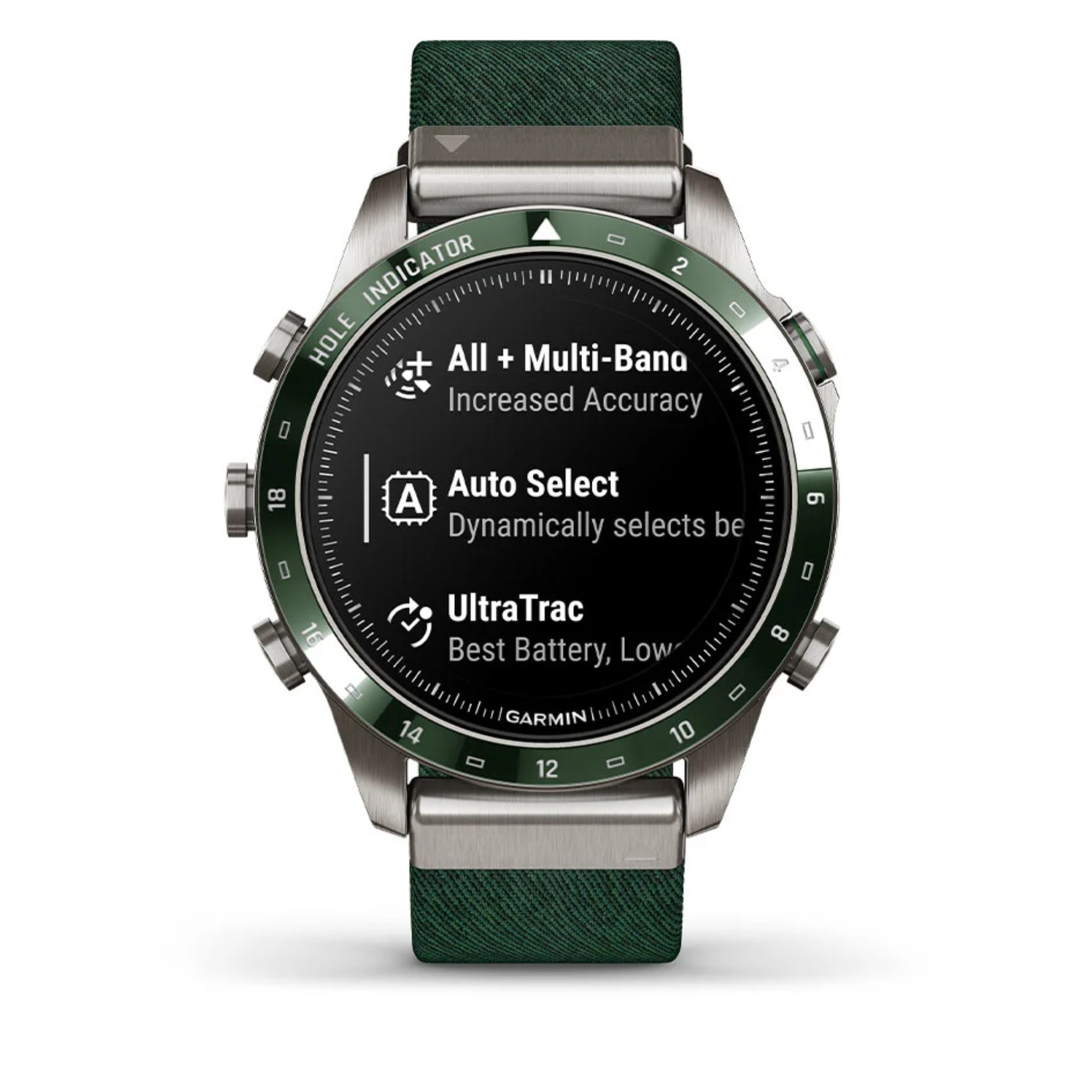 La marque Garmin nous présente sa toute nouvelle Marq Gen 2 ! Un grand pas en avant niveau technologie a été opéré dans ce modèle Golfer dont le passage du titane 2 au titane 5 et l'écran AMOLED de 1,2". La montre comprend un bracelet en nylon vert et un bracelet en silicone vert.