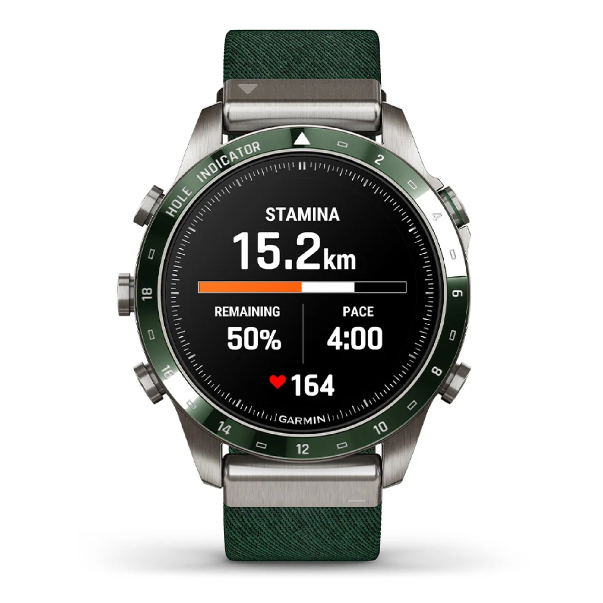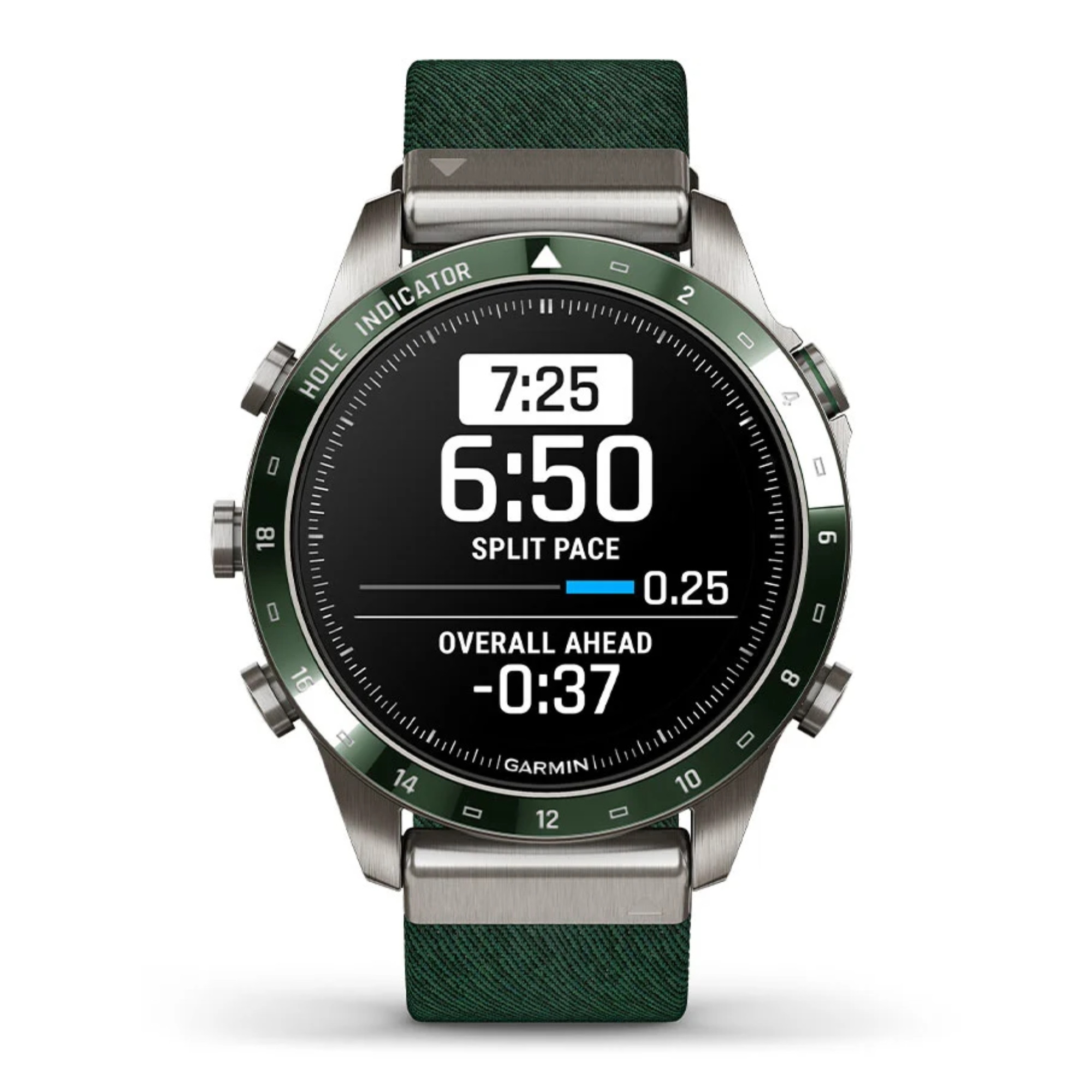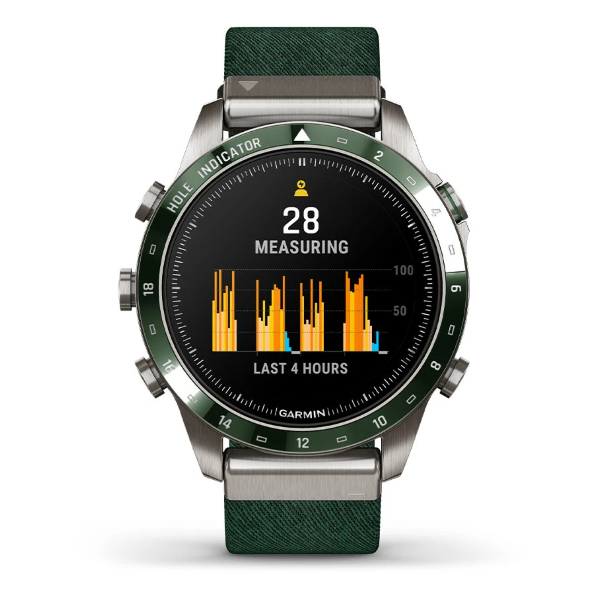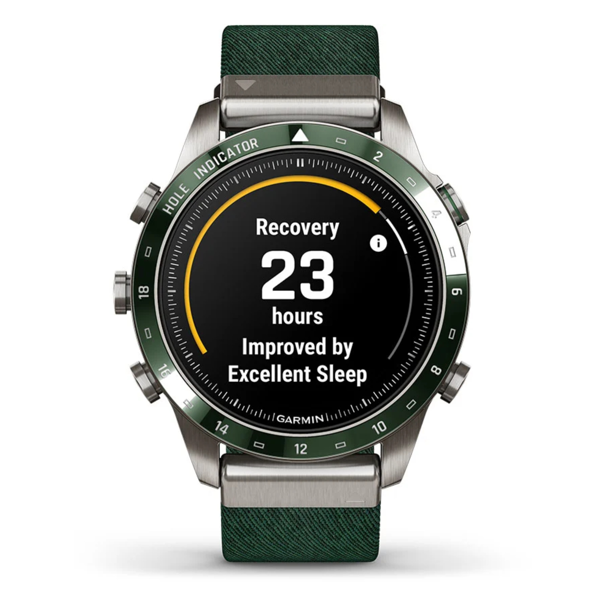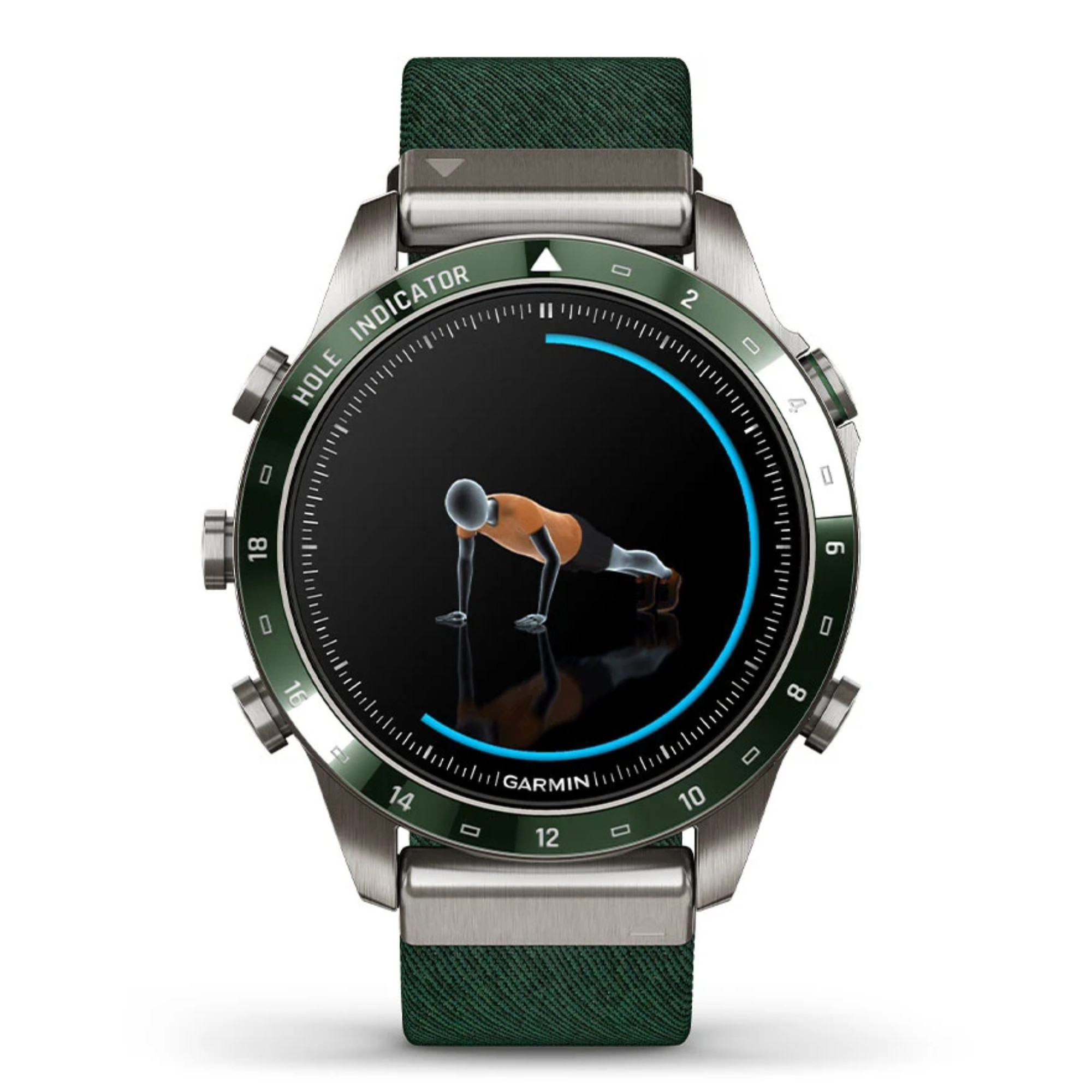 La marque Garmin nous présente sa toute nouvelle Marq Gen 2 ! Un grand pas en avant niveau technologie a été opéré dans ce modèle Golfer dont le passage du titane 2 au titane 5 et l'écran AMOLED de 1,2". La montre comprend un bracelet en nylon vert et un bracelet en silicone vert.