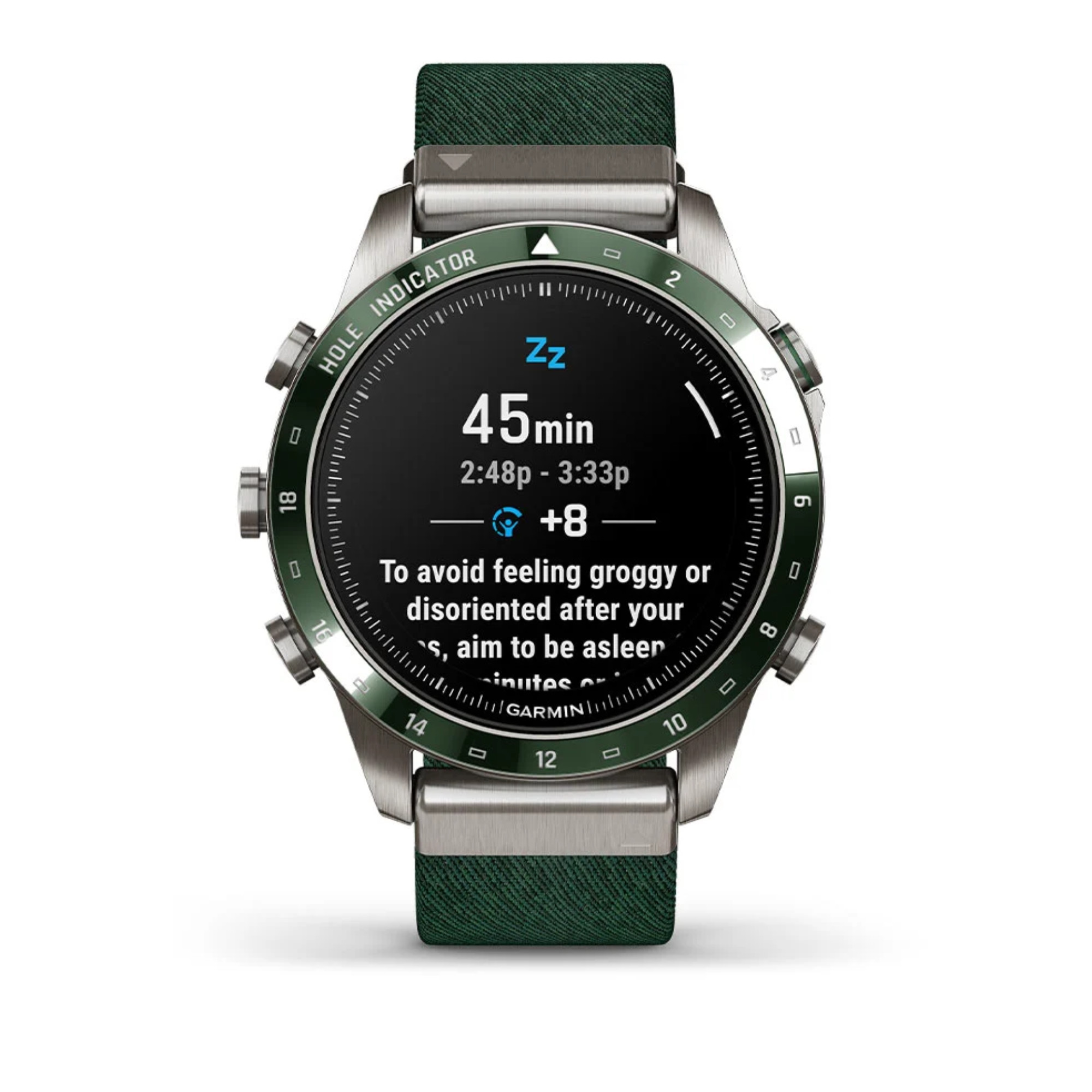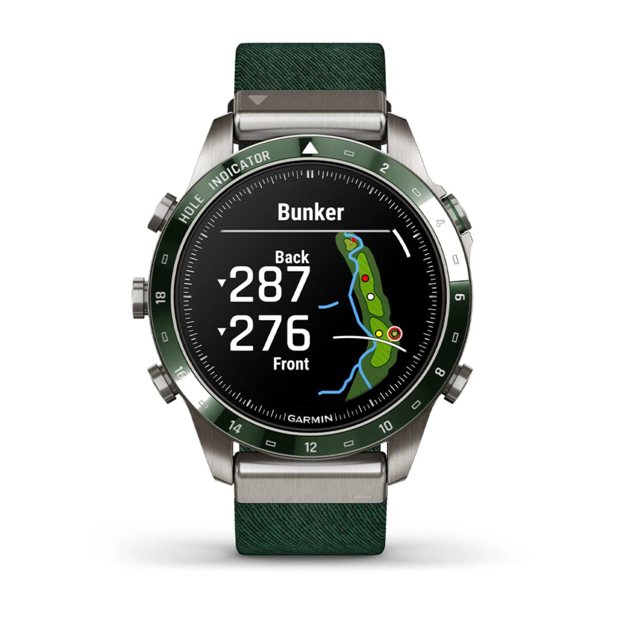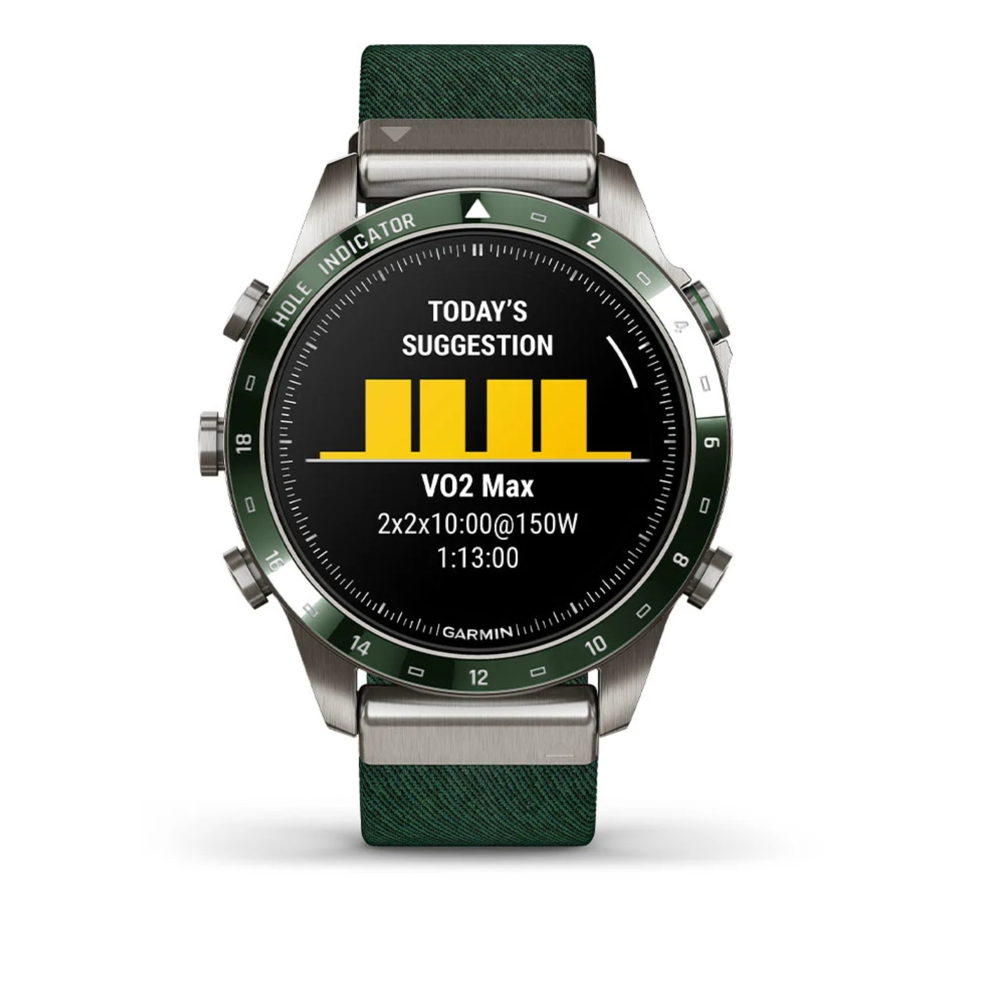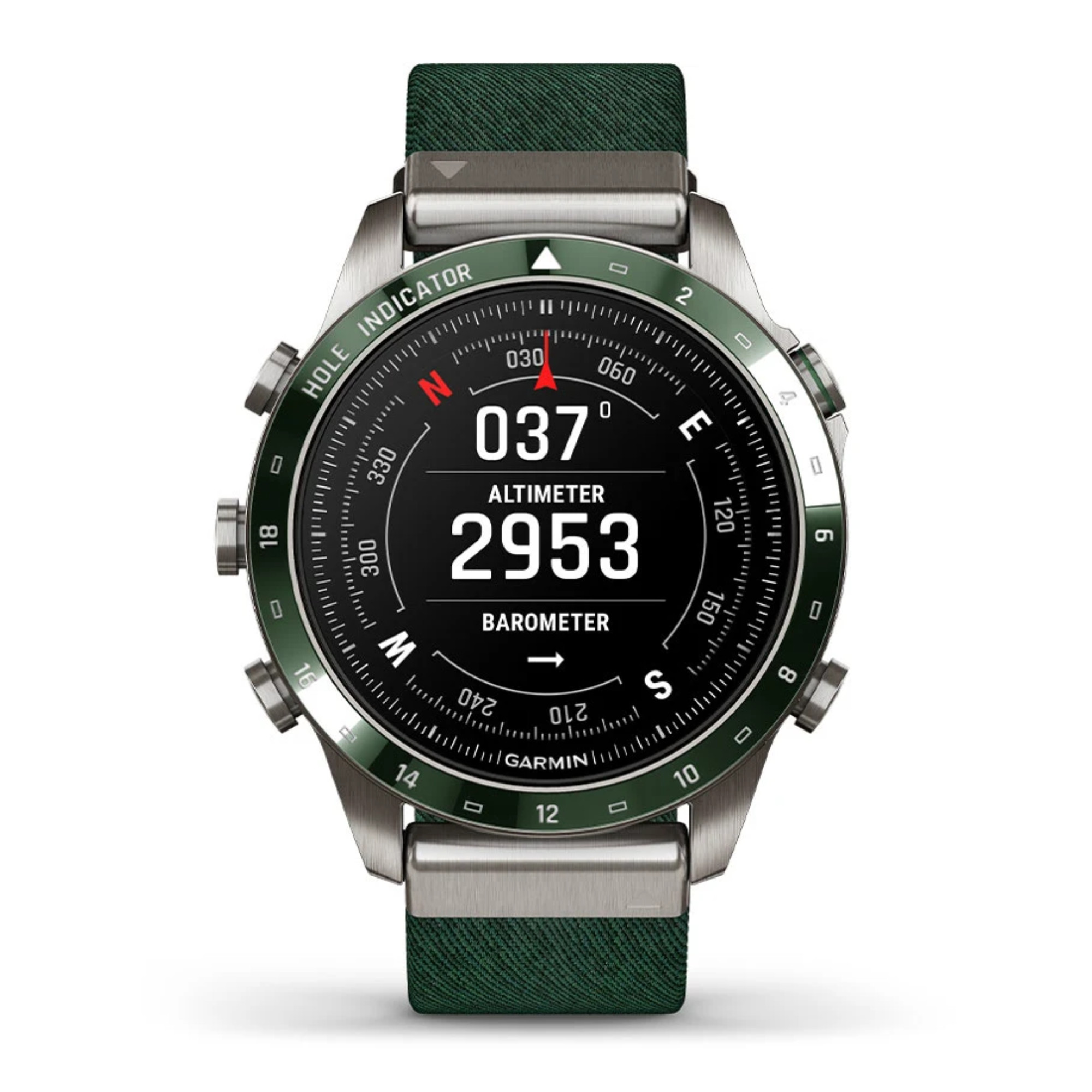 La marque Garmin nous présente sa toute nouvelle Marq Gen 2 ! Un grand pas en avant niveau technologie a été opéré dans ce modèle Golfer dont le passage du titane 2 au titane 5 et l'écran AMOLED de 1,2". La montre comprend un bracelet en nylon vert et un bracelet en silicone vert.