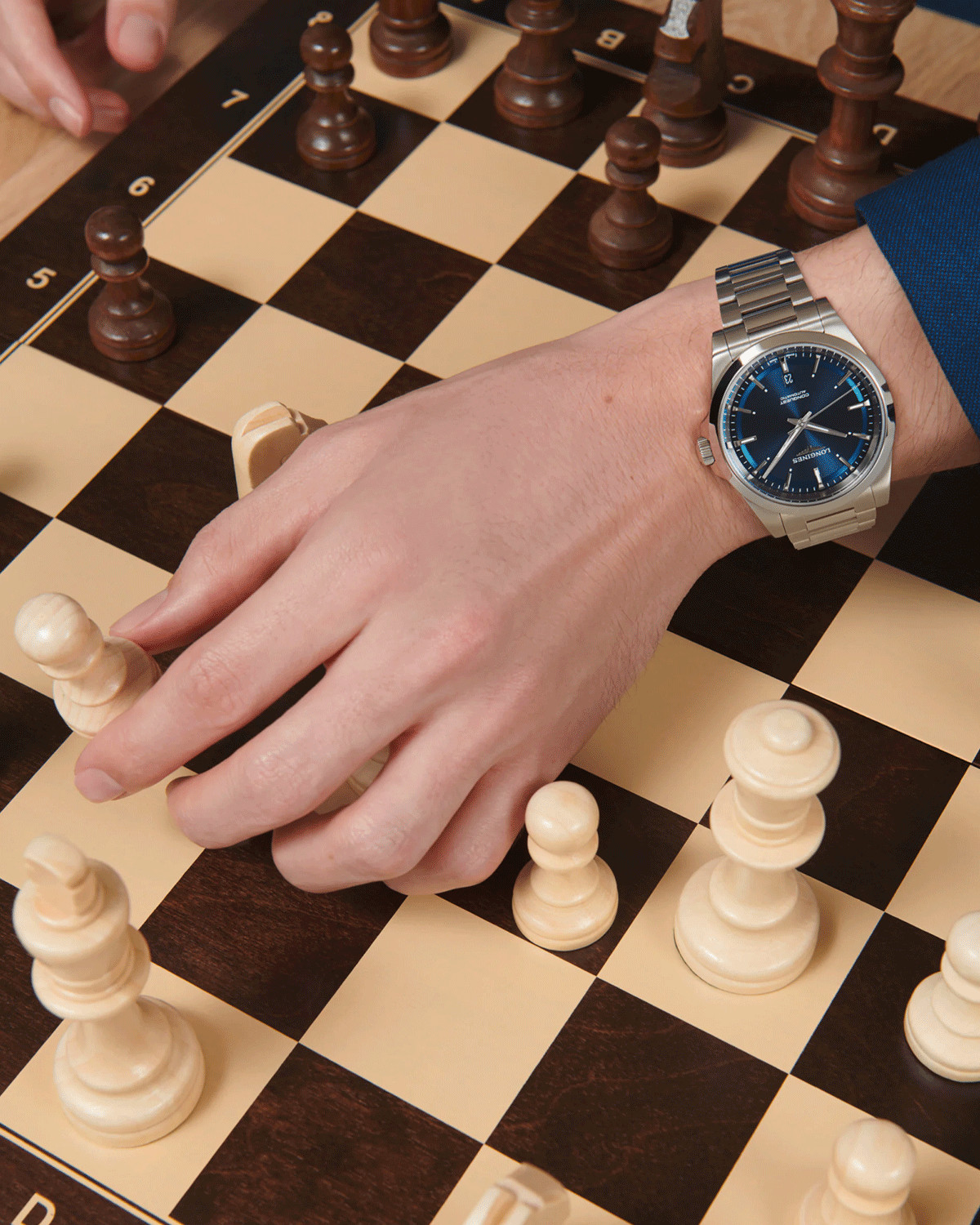Avec son boîtier en acier poli, conférant à la montre à la fois robustesse et allure sophistiquée, la montre présente une taille généreuse de 41 mm qui conviendra aussi bien aux poignets masculins que féminins. Le cadran de cette Conquest 2023 est un véritable bijou visuel. Son fond bleu soleillé met en valeur les index appliqués en bâtons, ainsi que les aiguilles dauphines, offrant une lisibilité optimale en toutes circonstances.