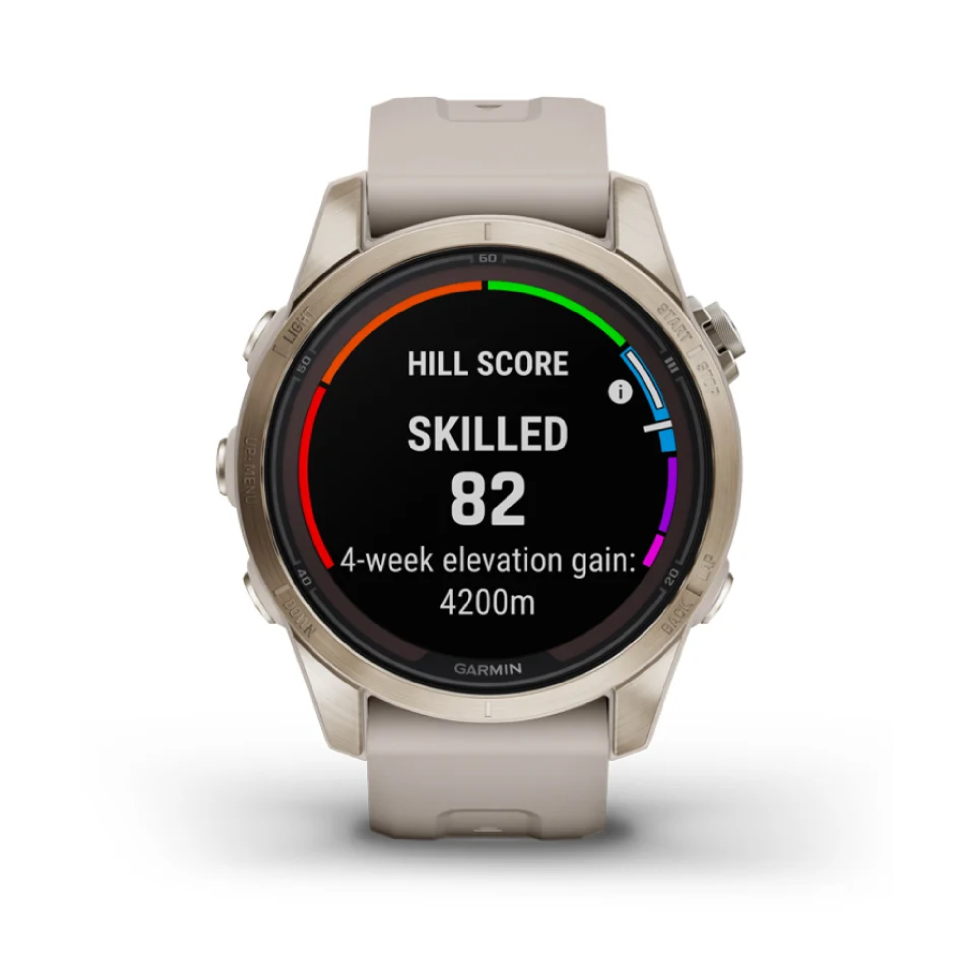 L'une des nouveautés les plus notables sur cette Fénix 7S Pro réf. 010-02776-15 se situe au niveau de l'écran tactile MIP (Mémoire en pixels) plus contrasté versus la série Fénix 7, pour une meilleure lisibilité (sous le soleil notamment) sur le terrain pendant la pratique de votre activité. Le verre Sapphire a été renforcé et retravaillé pour une meilleure résistance, il se présente dans un format 1,2" pour une résolution de 240 x 240 pixels couleurs. Son boîtier 42 mm robuste et léger est constitué de titane light gold. L'autonomie a été améliorée jusqu'à 11 jours et 14 jours grâce au verre solaire. La montre fonctionne jusqu'à 37 heures en mode GPS et jusqu'à 26 jours en expédition GPS et en mode solaire respectivement 46 heures et 43.jours. Cette montre vous est proposée sur son bracelet confortable et passe-partout en silicone beige sable avec boucle or pâle.