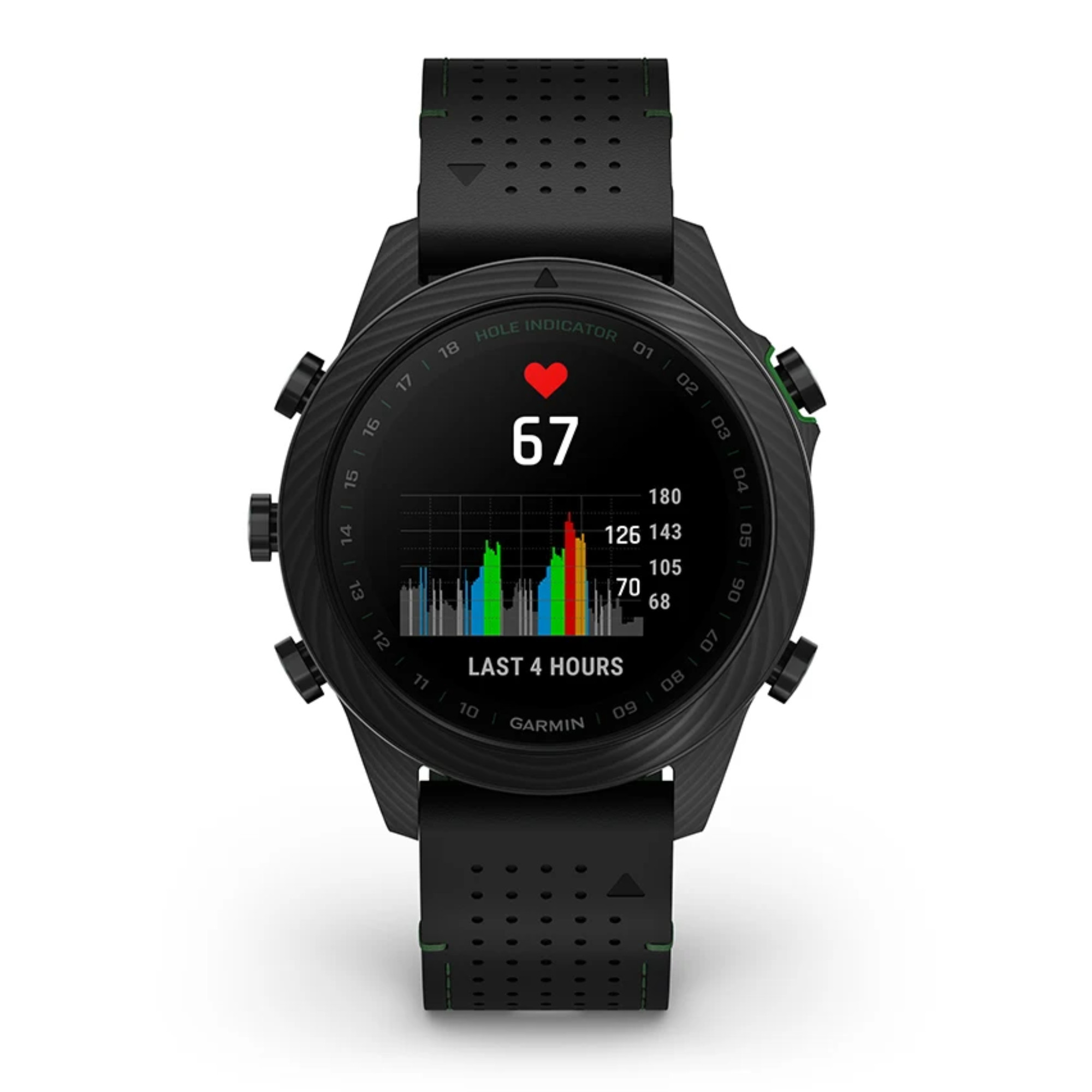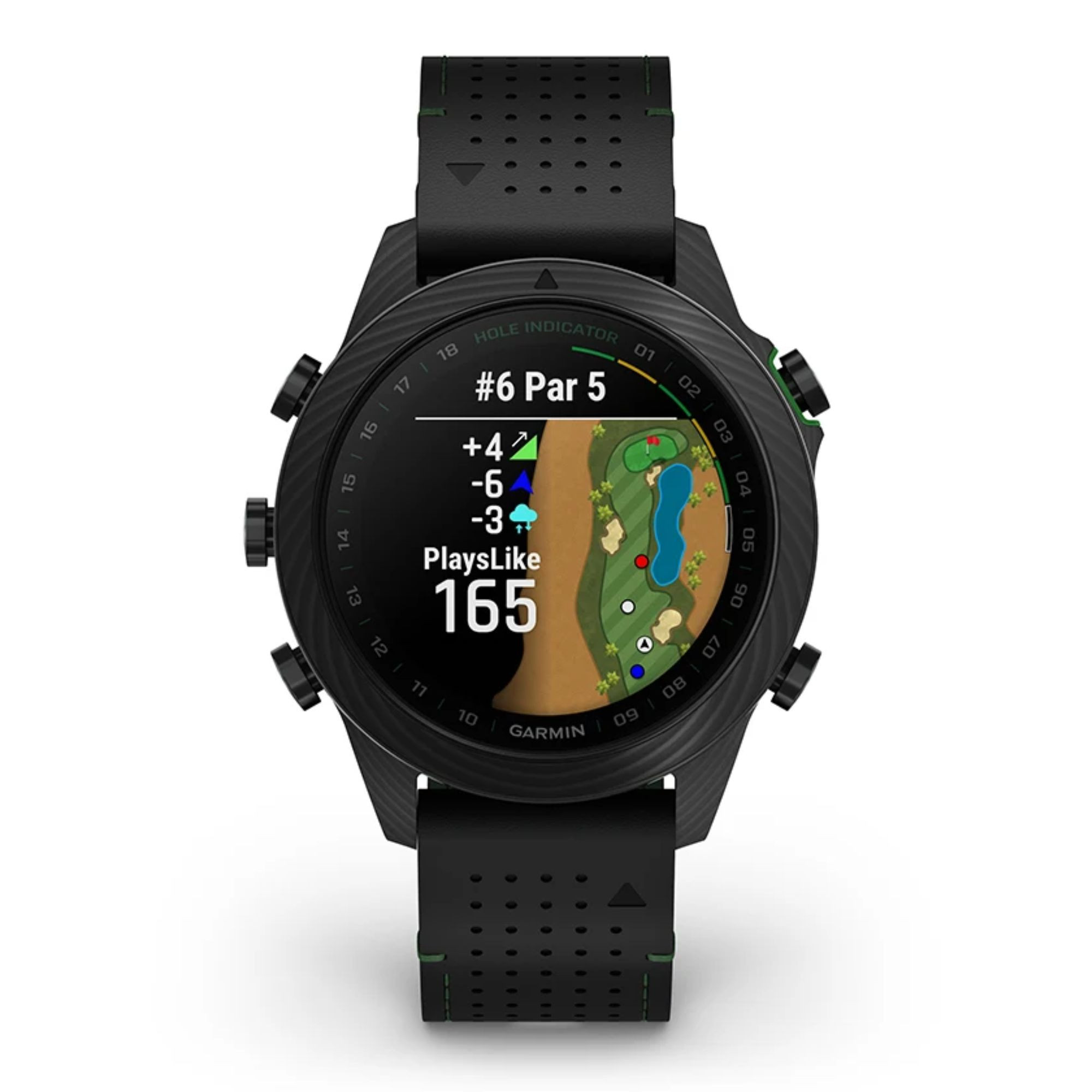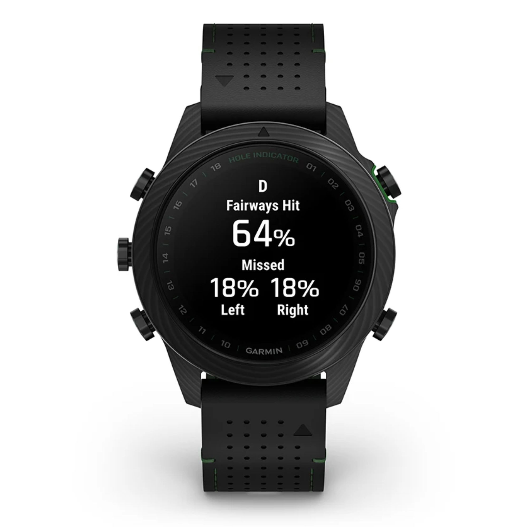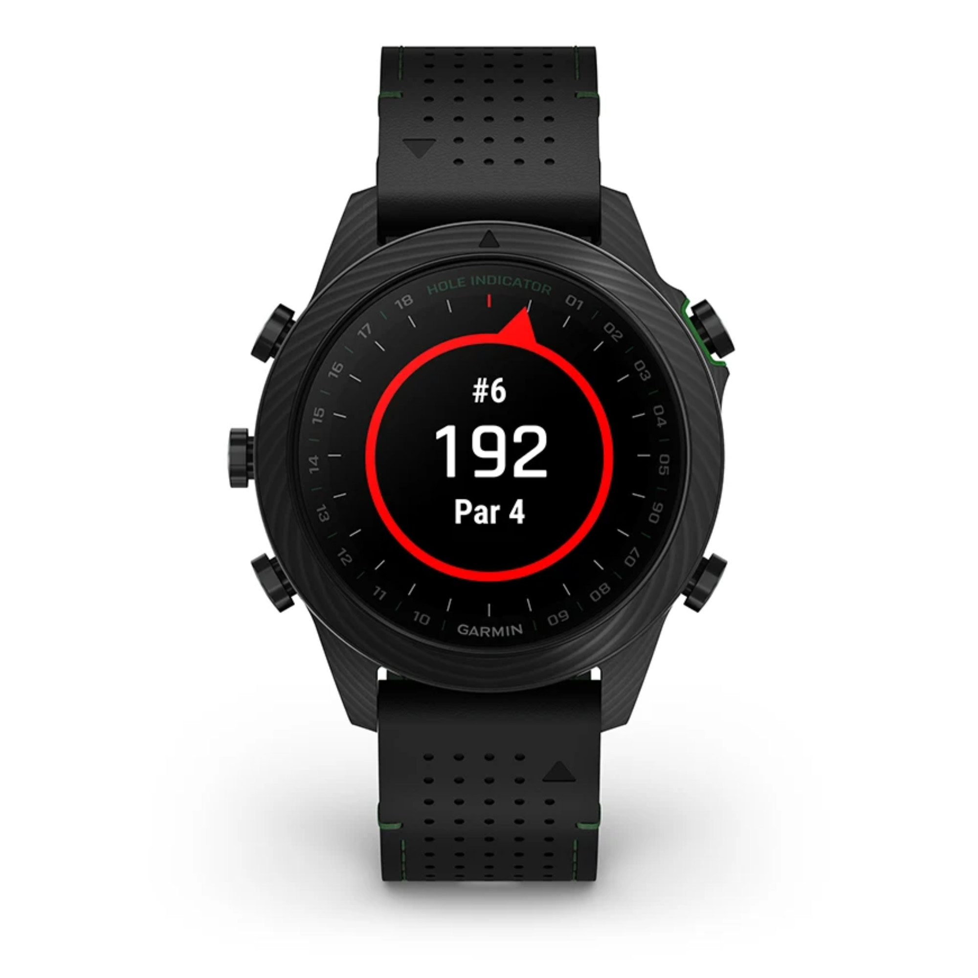 Découvrez cette toute nouvelle édition de la Marq Gen 2 Golfer composée entièrement de carbone avec un fond de boîte en titane. Accompagnée d'un bracelet hybride cuir noir et caoutchouc noir/vert et un bracelet silicone noir et de 3 capteurs Approach® CT10, vous apprécierez le caractère de cette montre connectée