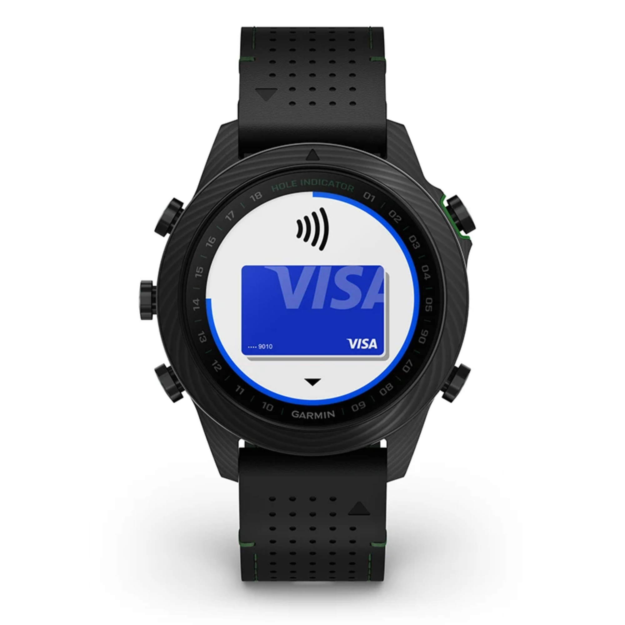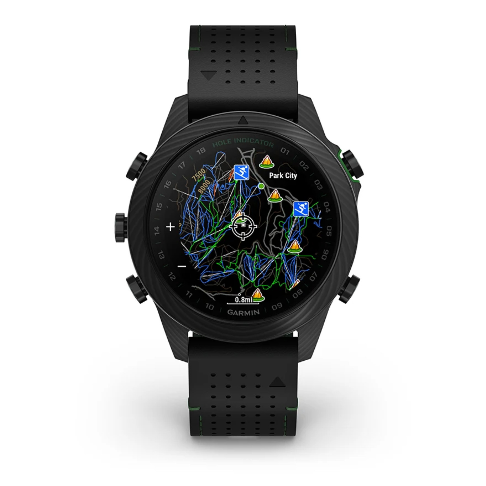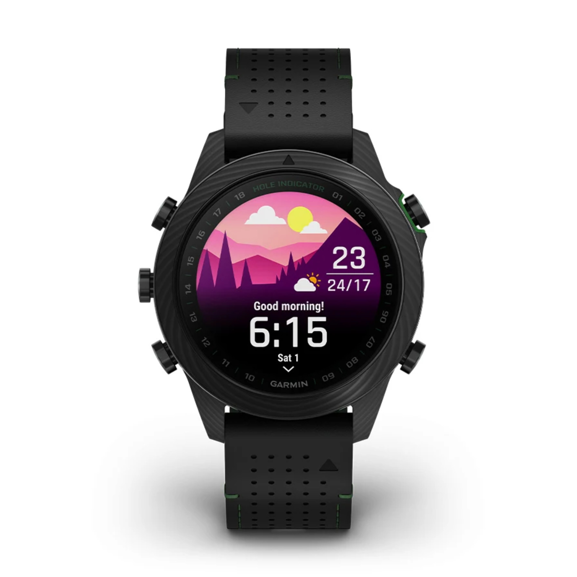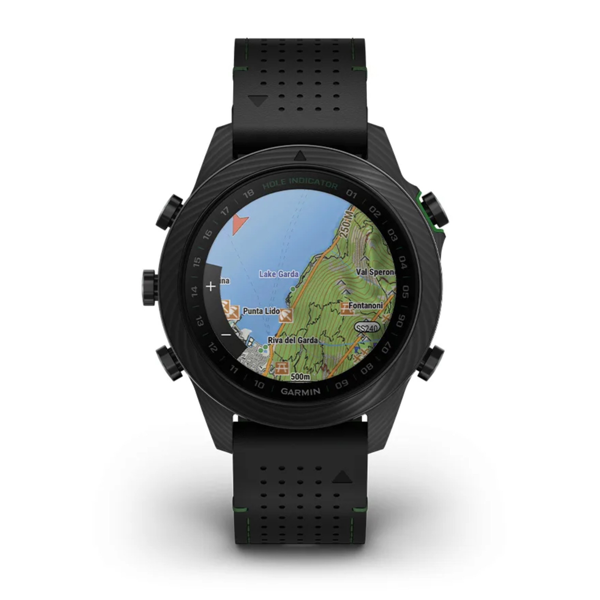Découvrez cette toute nouvelle édition de la Marq Gen 2 Golfer composée entièrement de carbone avec un fond de boîte en titane. Accompagnée d'un bracelet hybride cuir noir et caoutchouc noir/vert et un bracelet silicone noir et de 3 capteurs Approach® CT10, vous apprécierez le caractère de cette montre connectée