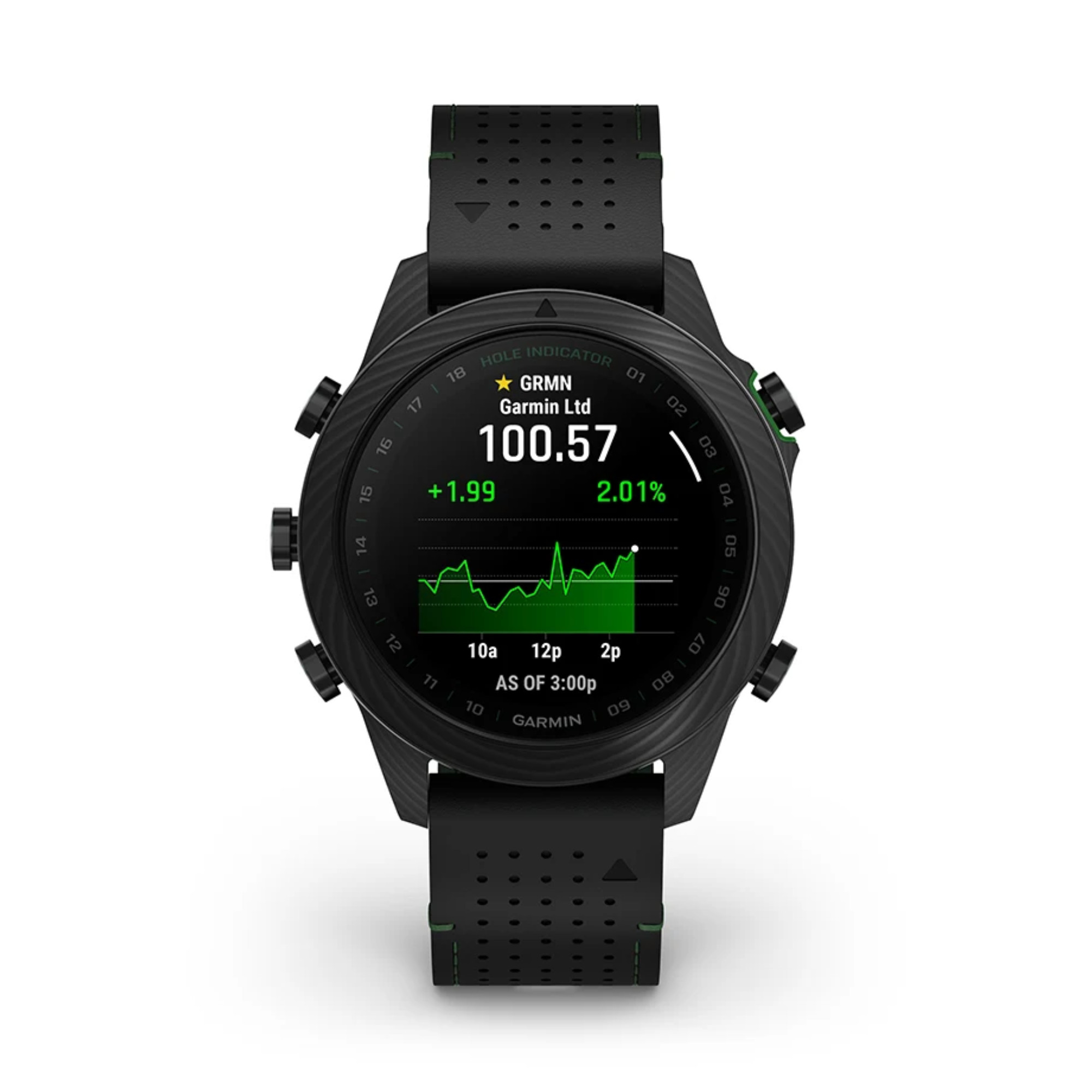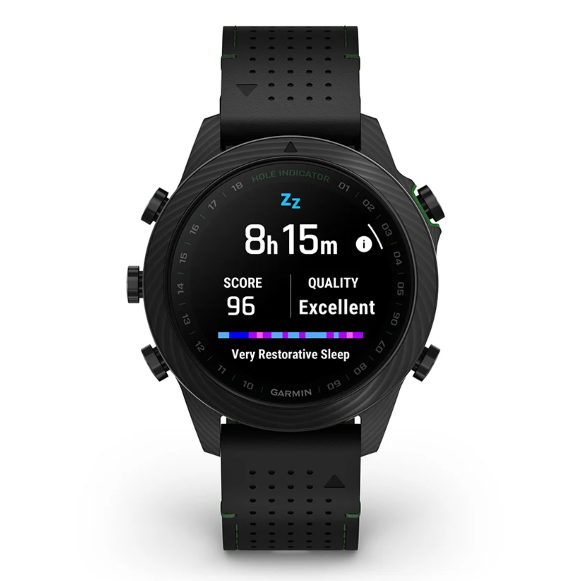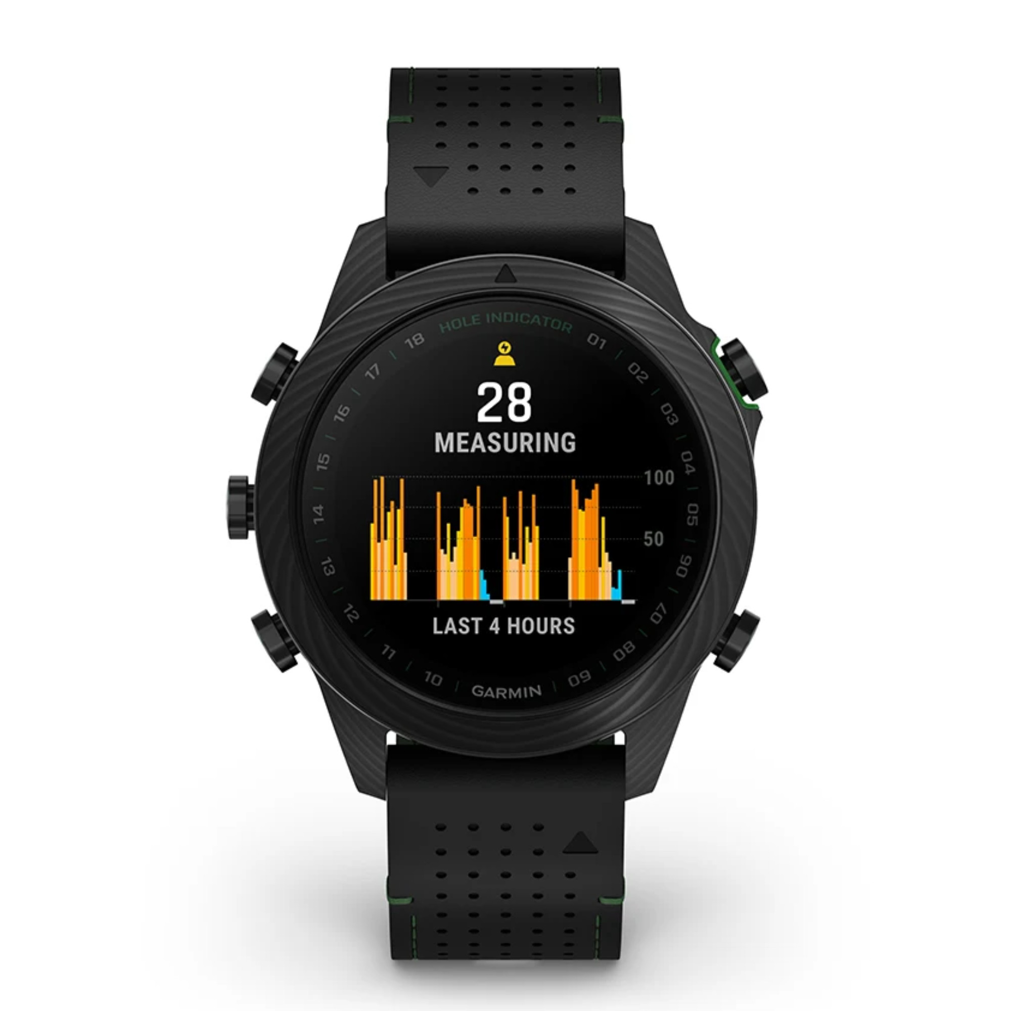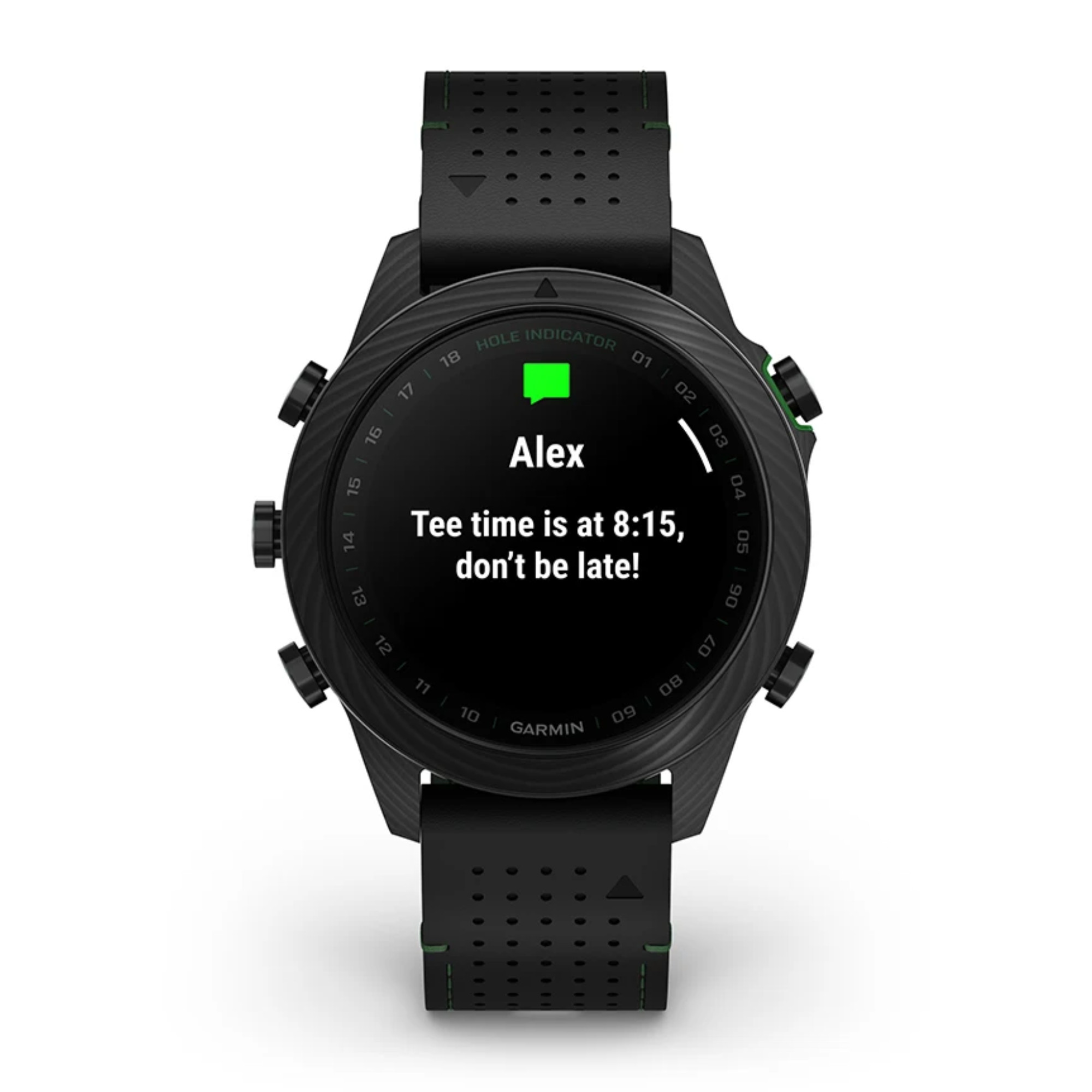Découvrez cette toute nouvelle édition de la Marq Gen 2 Golfer composée entièrement de carbone avec un fond de boîte en titane. Accompagnée d'un bracelet hybride cuir noir et caoutchouc noir/vert et un bracelet silicone noir et de 3 capteurs Approach® CT10, vous apprécierez le caractère de cette montre connectée