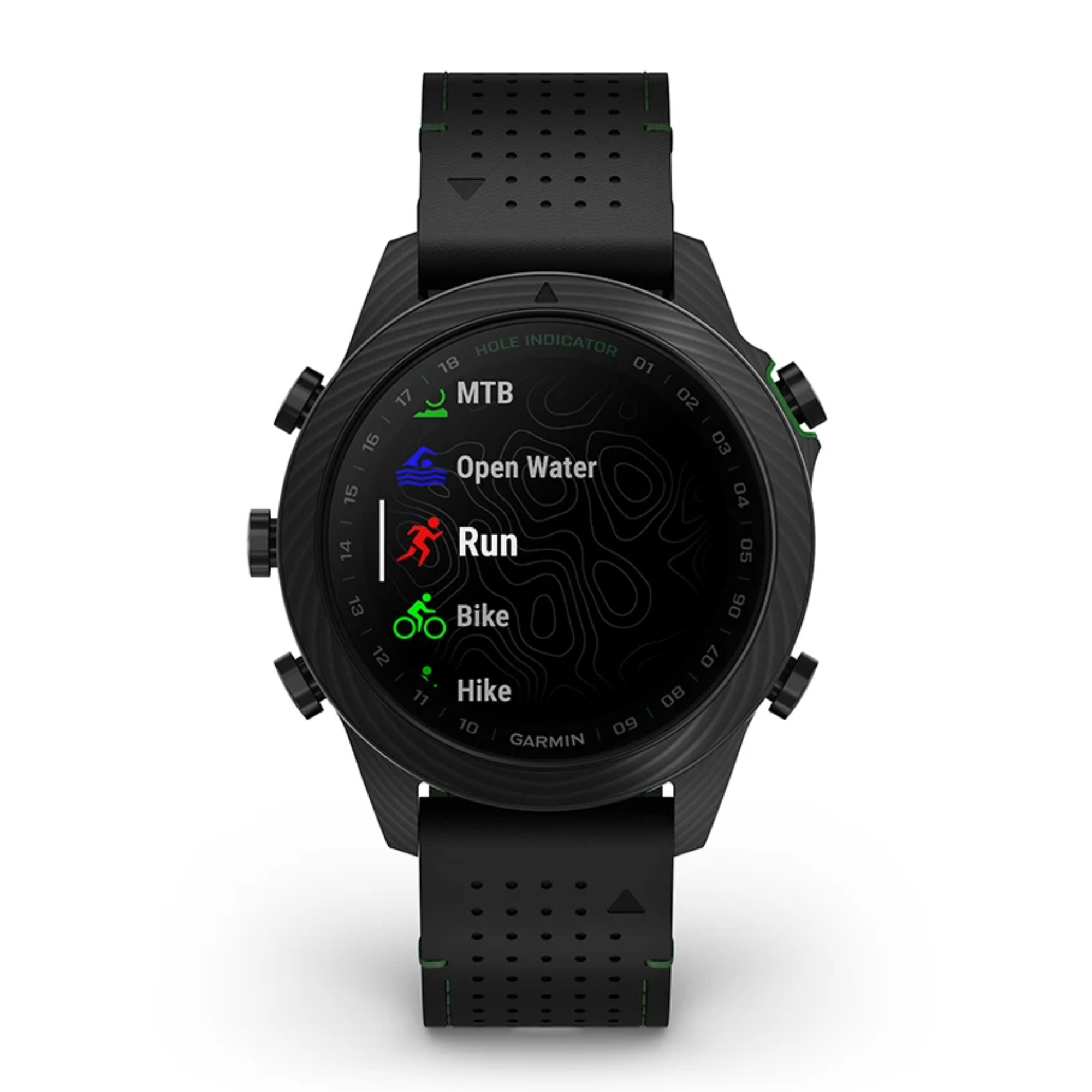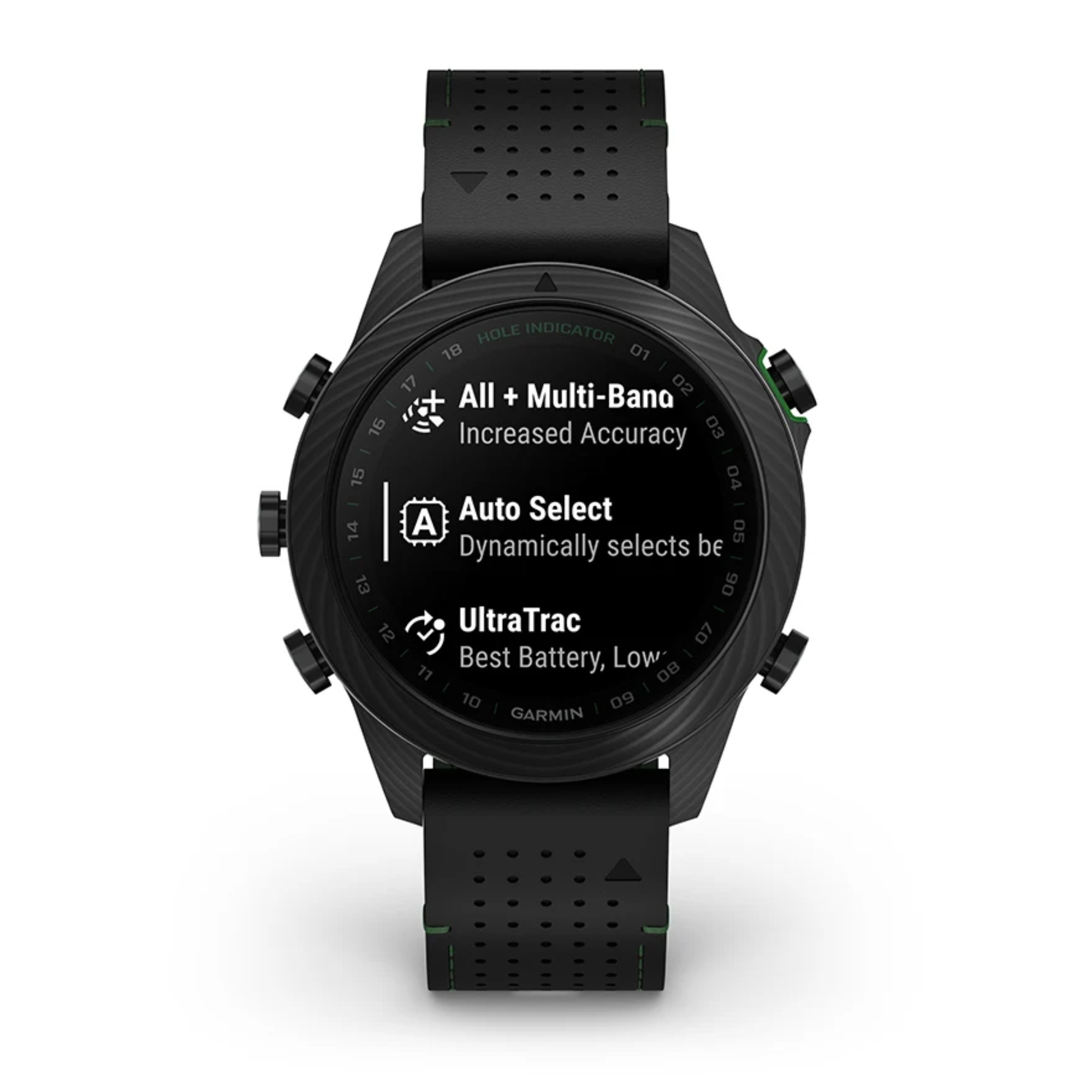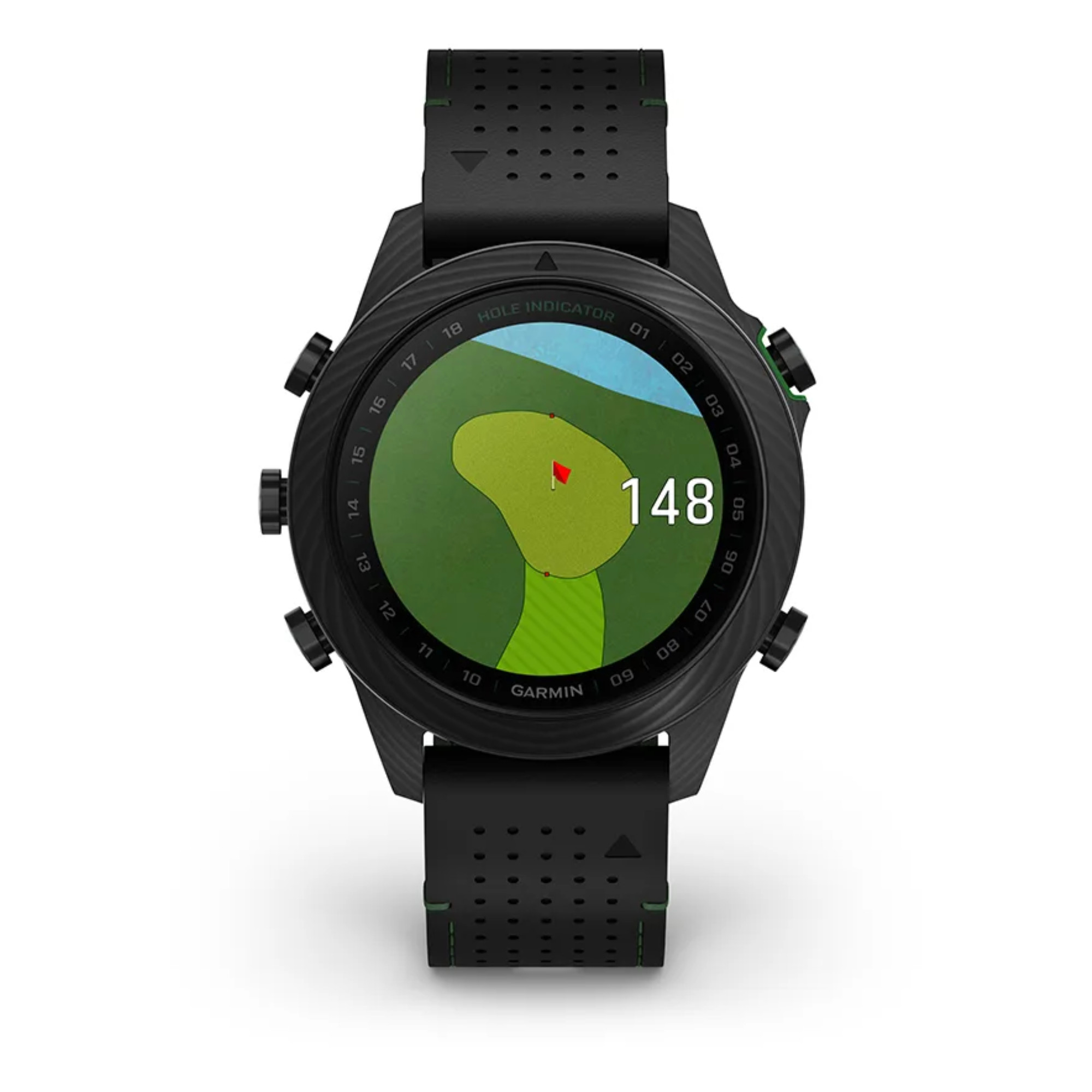 Cette montre est spécialement conçue pour les passionnés souhaitant réinventer leur jeu. Proposée en carbone avec fond de boîte en titane grade 5 traité DLC, elle est disponible sur un bracelet confort cuir noir avec un poids total de 82 g. La lunette carbone est marquée 18 trous et l'écran propose les contours du green en affichant le sens de la pente du green sur votre montre, le caddie virtuel pour vous suggérer le club basé sur l'historique des coups ainsi que les statistiques de performance avec l'indice de handicap et la précision des coups. Deux autres Marq Gen 2 Carbon accompagnent cette nouveauté, la Commander et la Athlete.