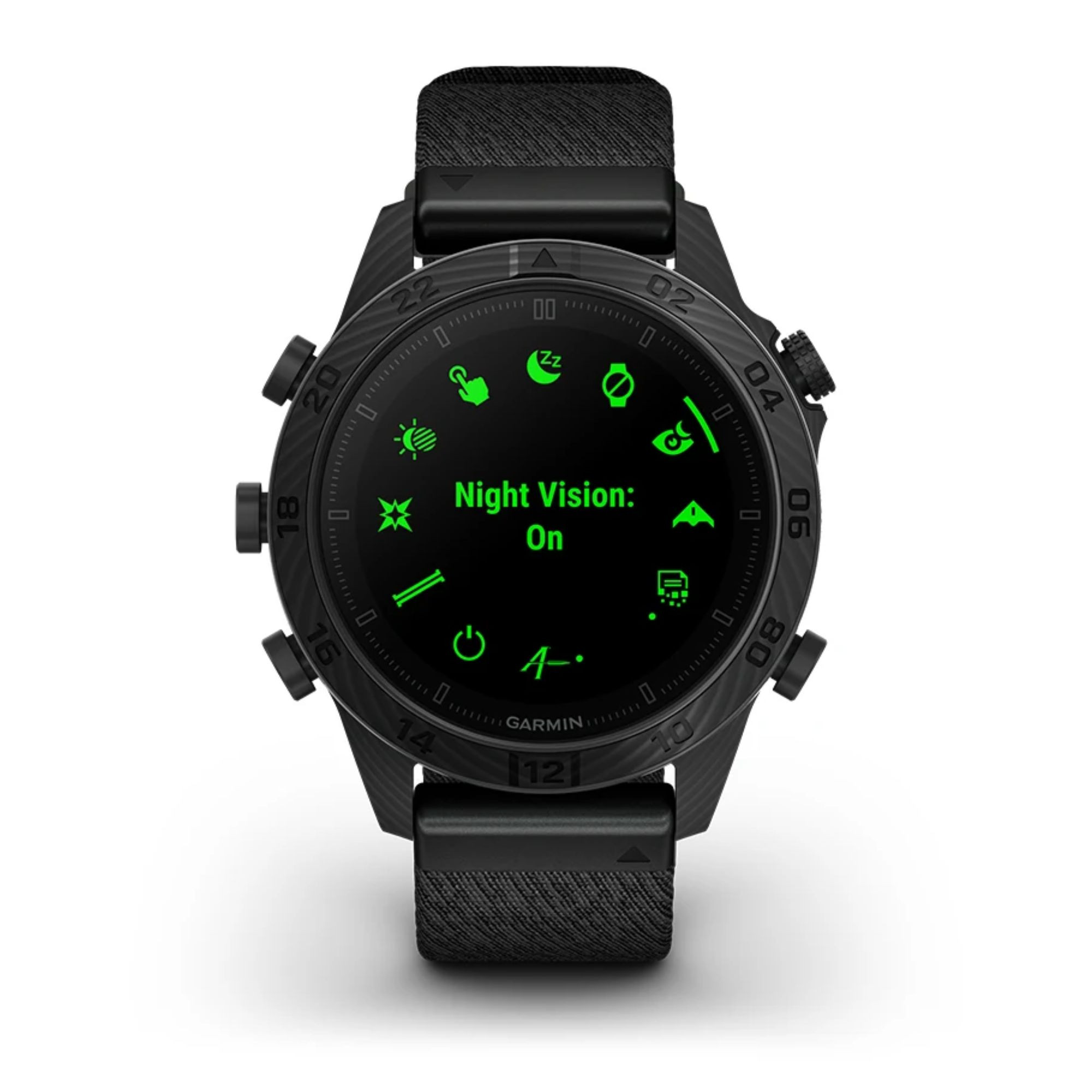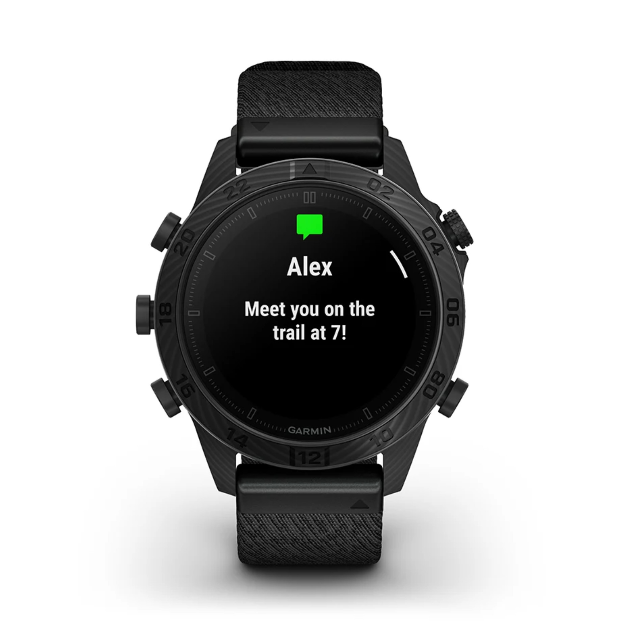 Découvrez cette toute nouvelle édition de la Marq Gen 2 Commander composée entièrement de carbone avec un fond de boîte en titane. Accompagnée d'un bracelet nylon noir et bracelet en caoutchouc de silicone noir vous apprécierez le caractère de cette montre connectée