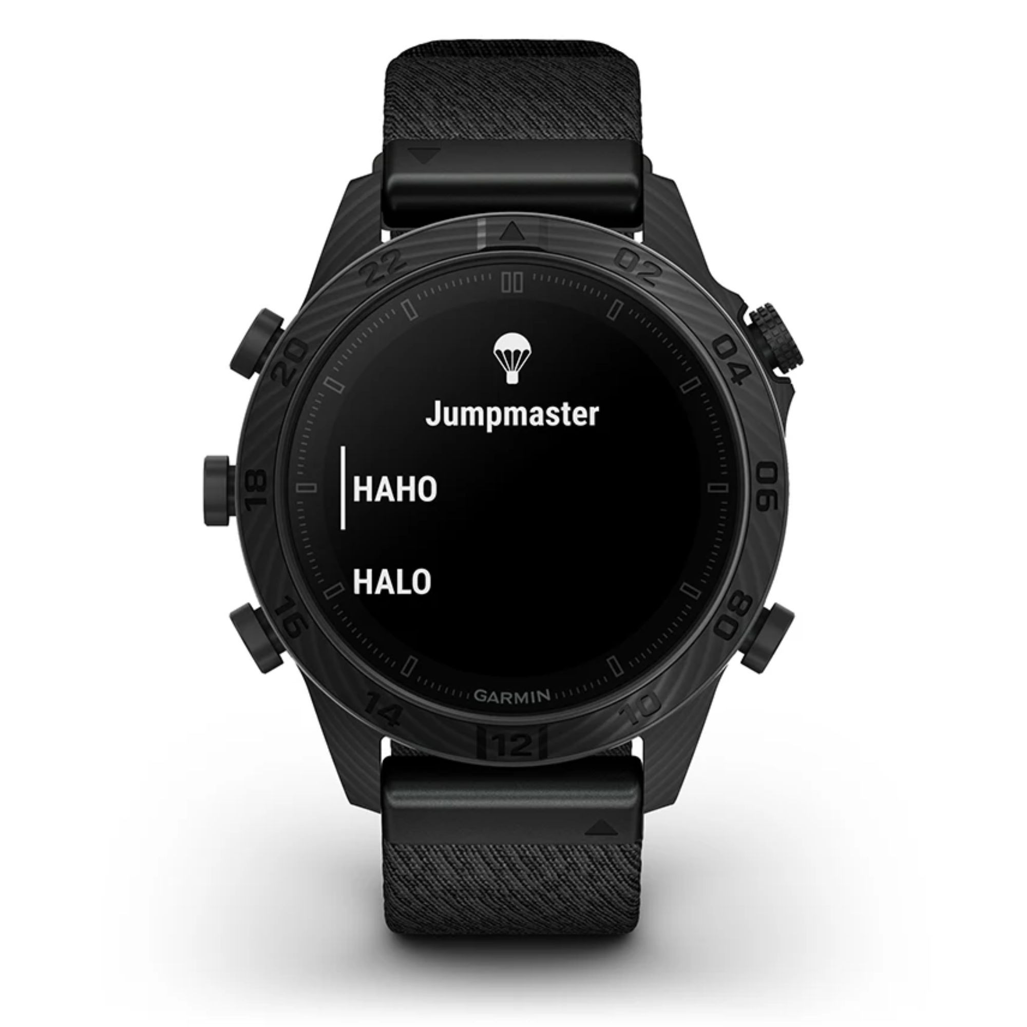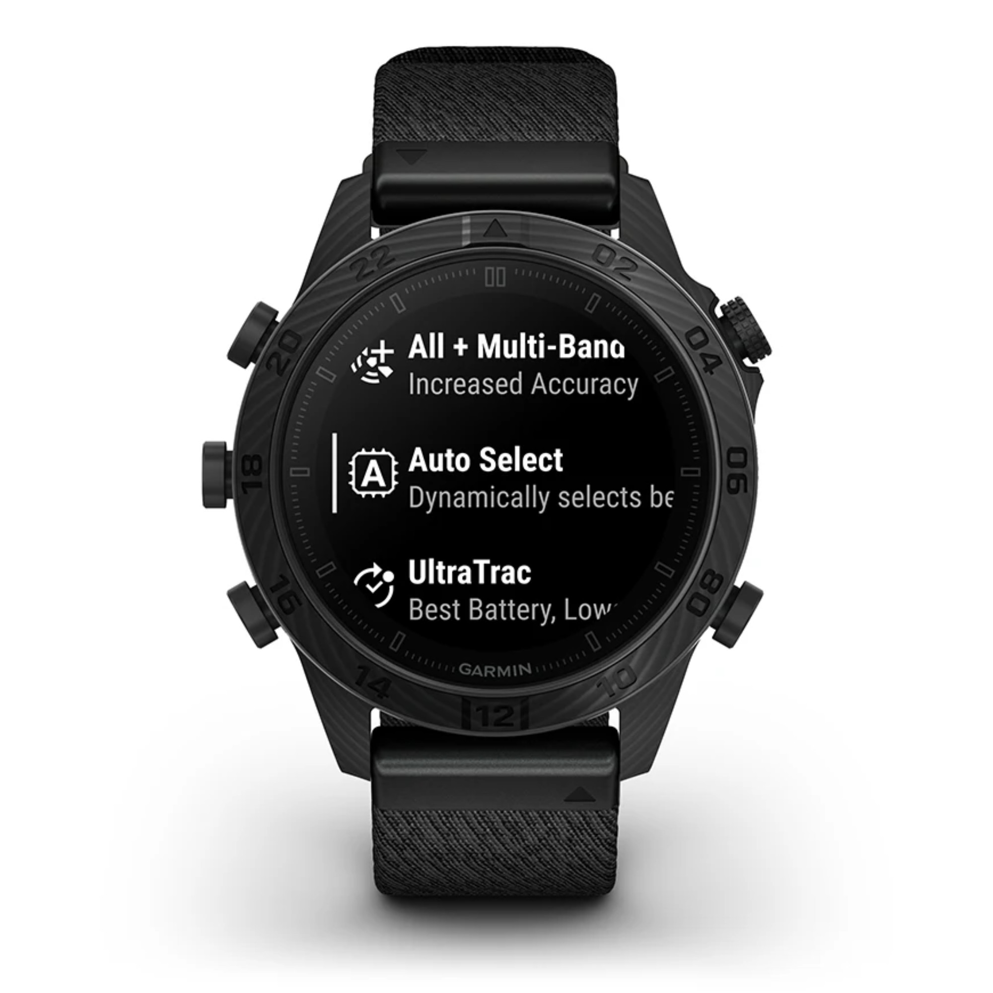 Cette montre est spécialement conçue pour les professionnels de l'action, celles et ceux en quête de l'excellence. Proposée en carbone avec fond de boîte en titane grade 5 traité DLC, elle est disponible sur un bracelet confort en nylon noir. La lunette carbone est marquée 24h UTC et l'écran propose une vision nocturne grâce à un réglage optimisé pour les jumelles de vision nocturne. Dernier petit détail qui a son importance : le mode furtif. Celui-ci garde la veille opérationnelle et arrête de stocker et de partager la position GPS, il désactive la connectivité et la communication sans fil. Deux autres Marq Gen 2 Carbon accompagnent cette nouveauté, la Golfer et la Athlete.