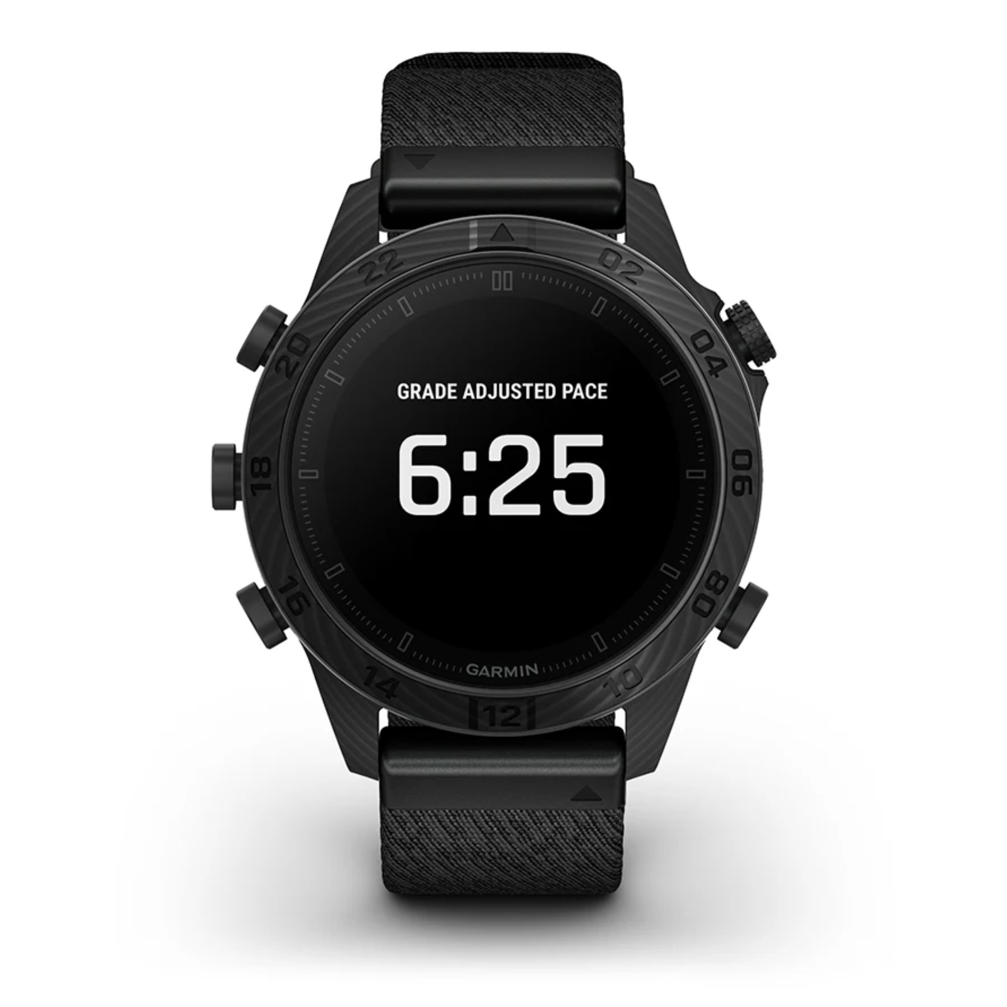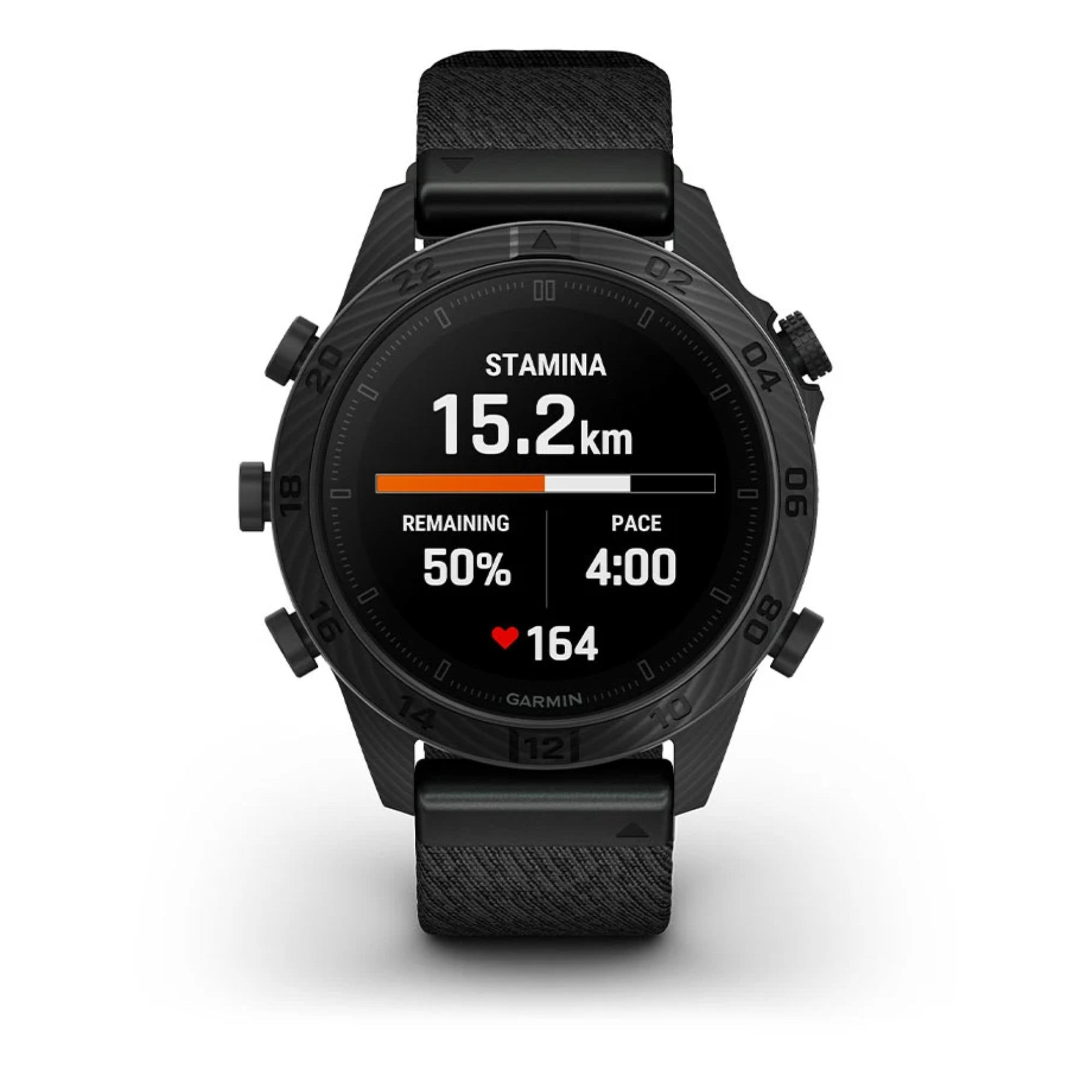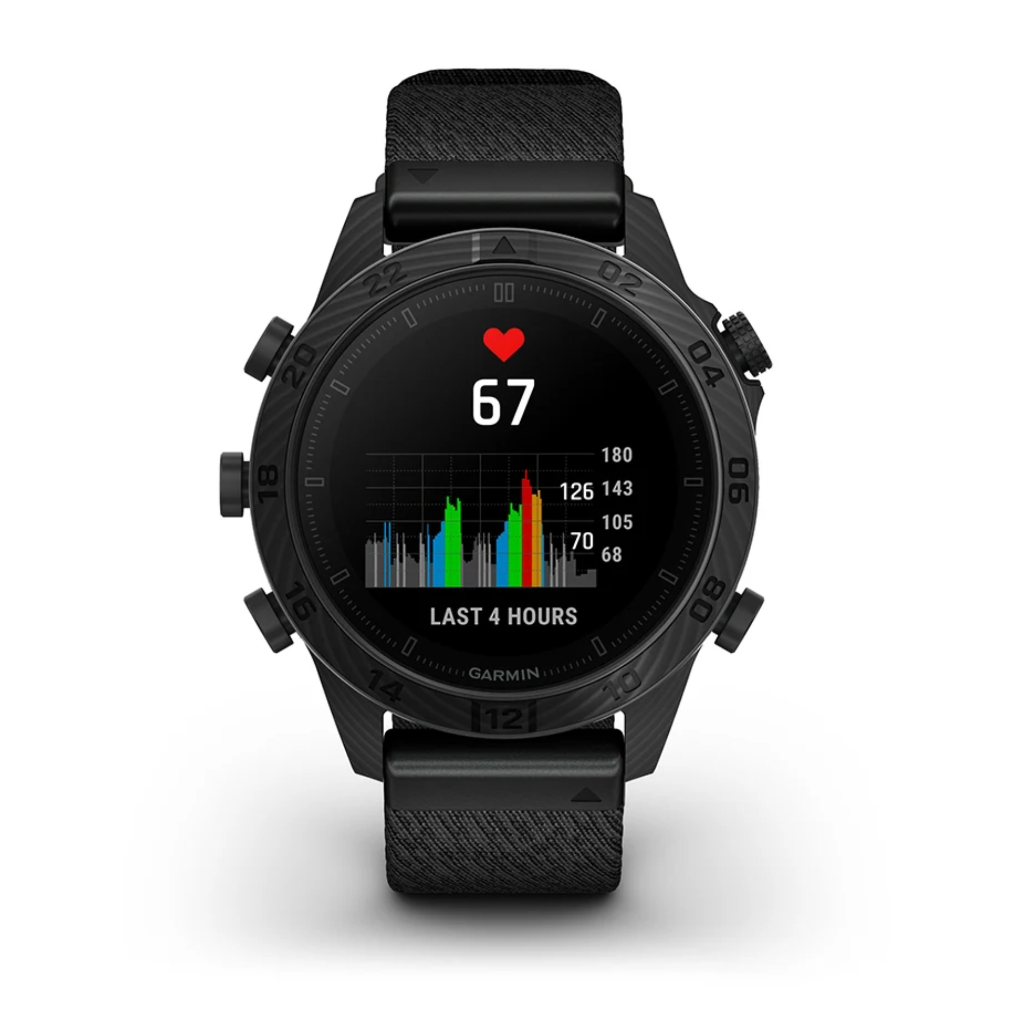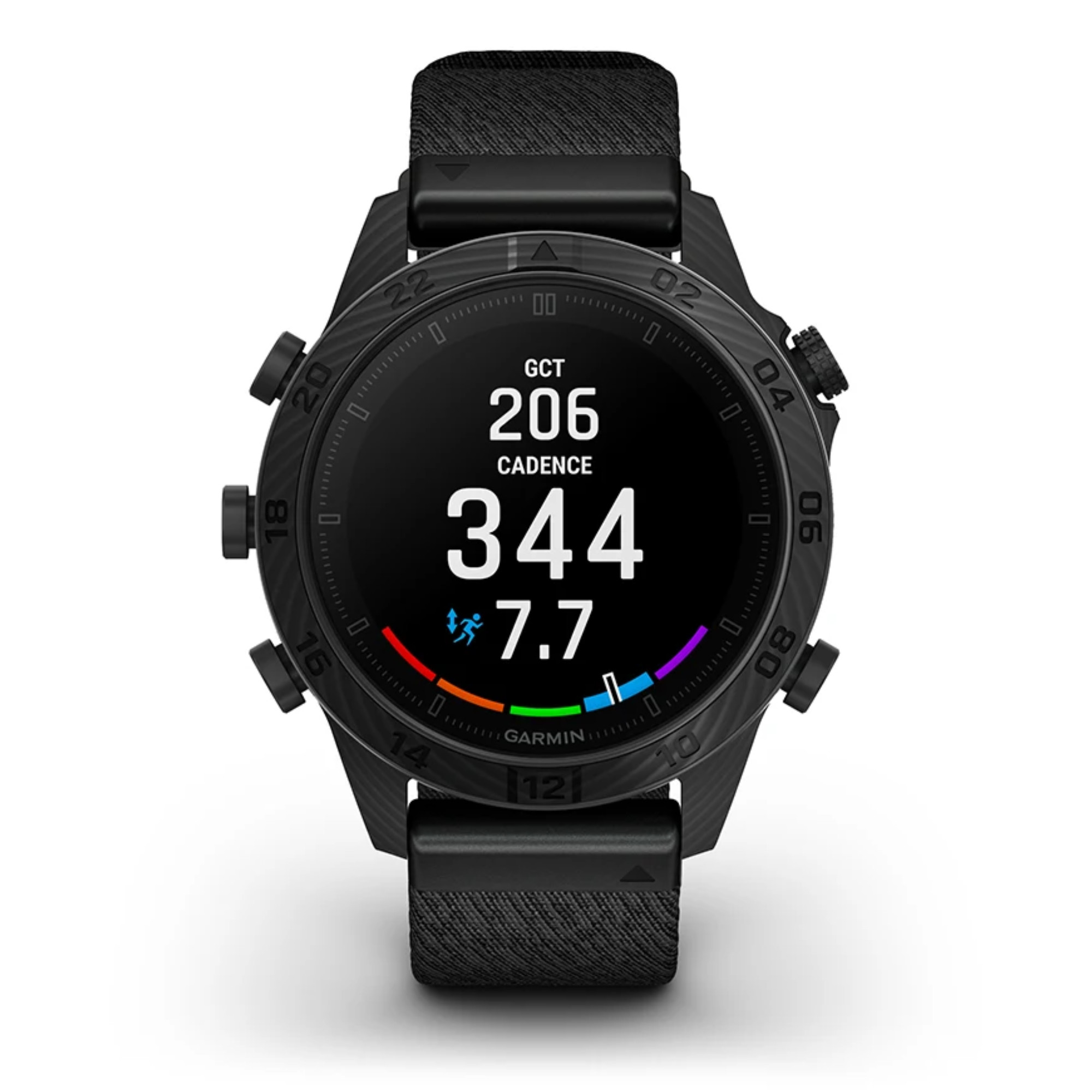 La Maison Garmin a choisi le Carbone car cette matière représente la performance. Utilisé dans de nombreux domaines comme l'aviation, le cyclisme ou encore l'automobile il est devenu indispensable dans les sports de pointe. Il représente la légèreté et la résistance mais nécessite de nombreuses heures de travail pour arriver à un résultat comme la Marq Gen 2, environ 50 jours pour fabriquer une Marq Carbon avec pas moins de 60 étapes et 130 couches de feuilles de carbone disposées manuellement. Un matériau technique à l'image de la collection Tool Watch et athlétique avec un design associé aux performances de la gamme Marq.