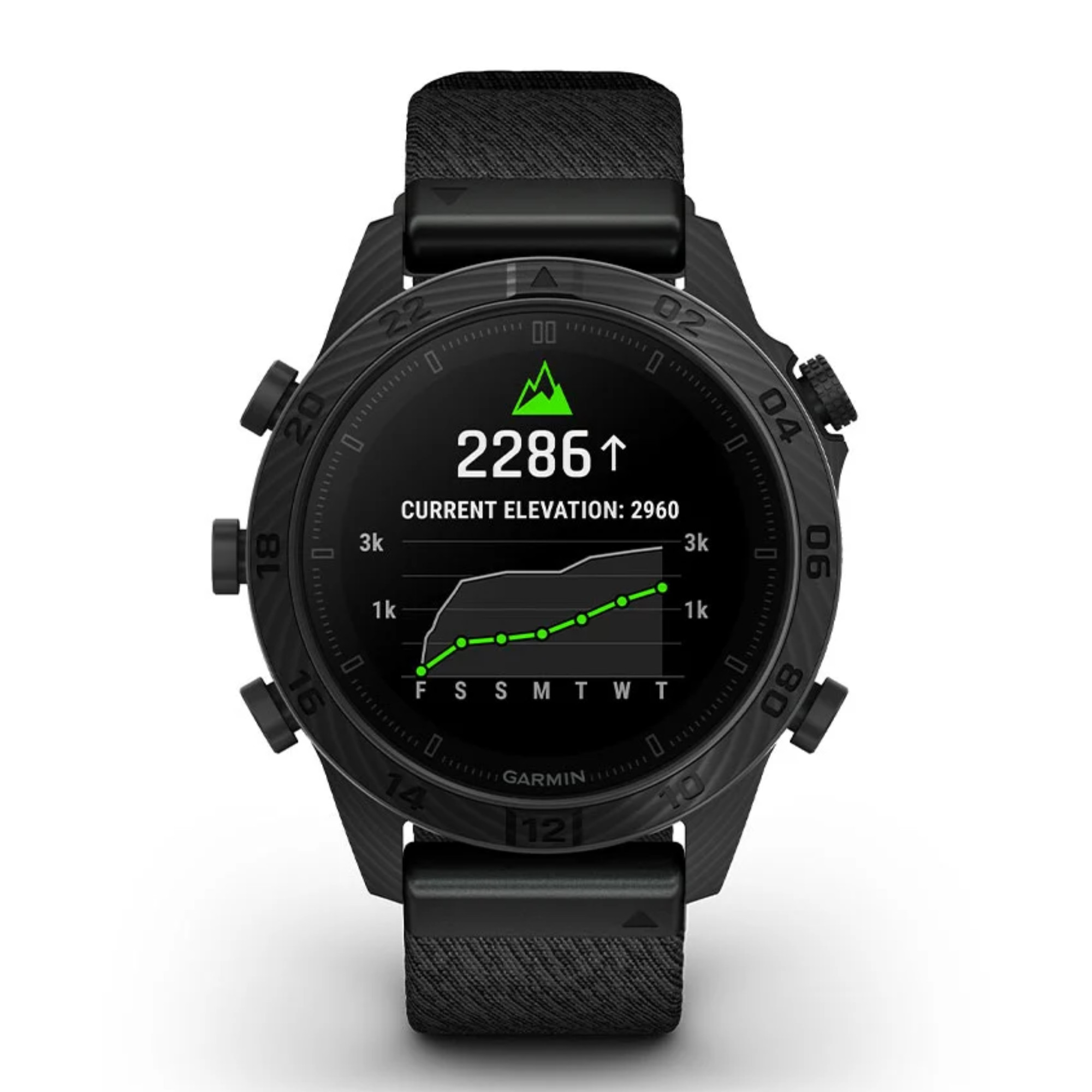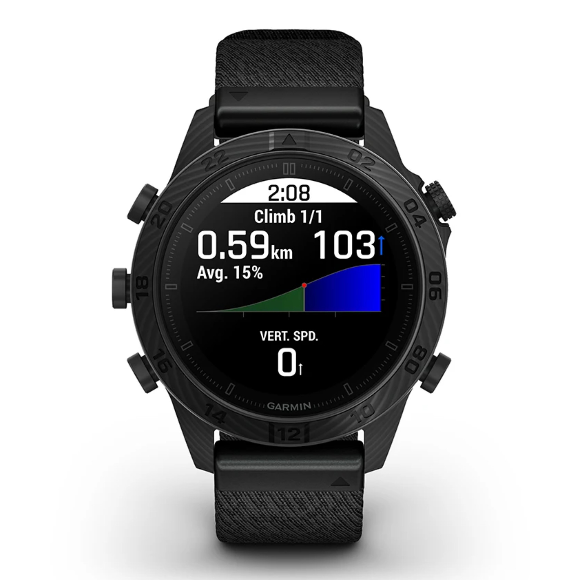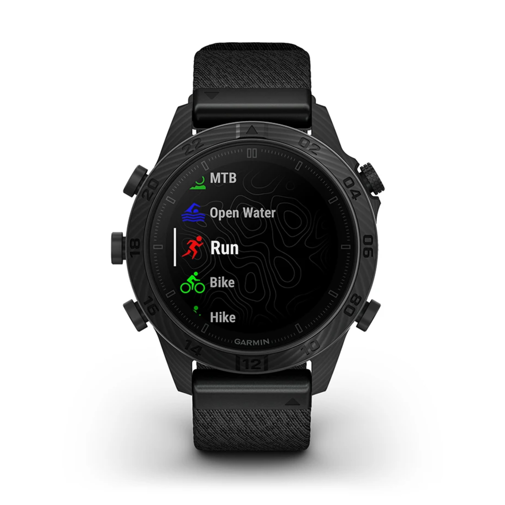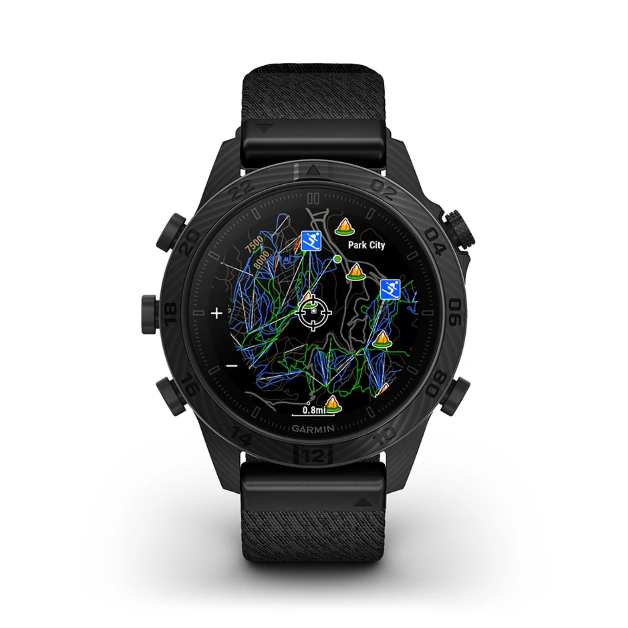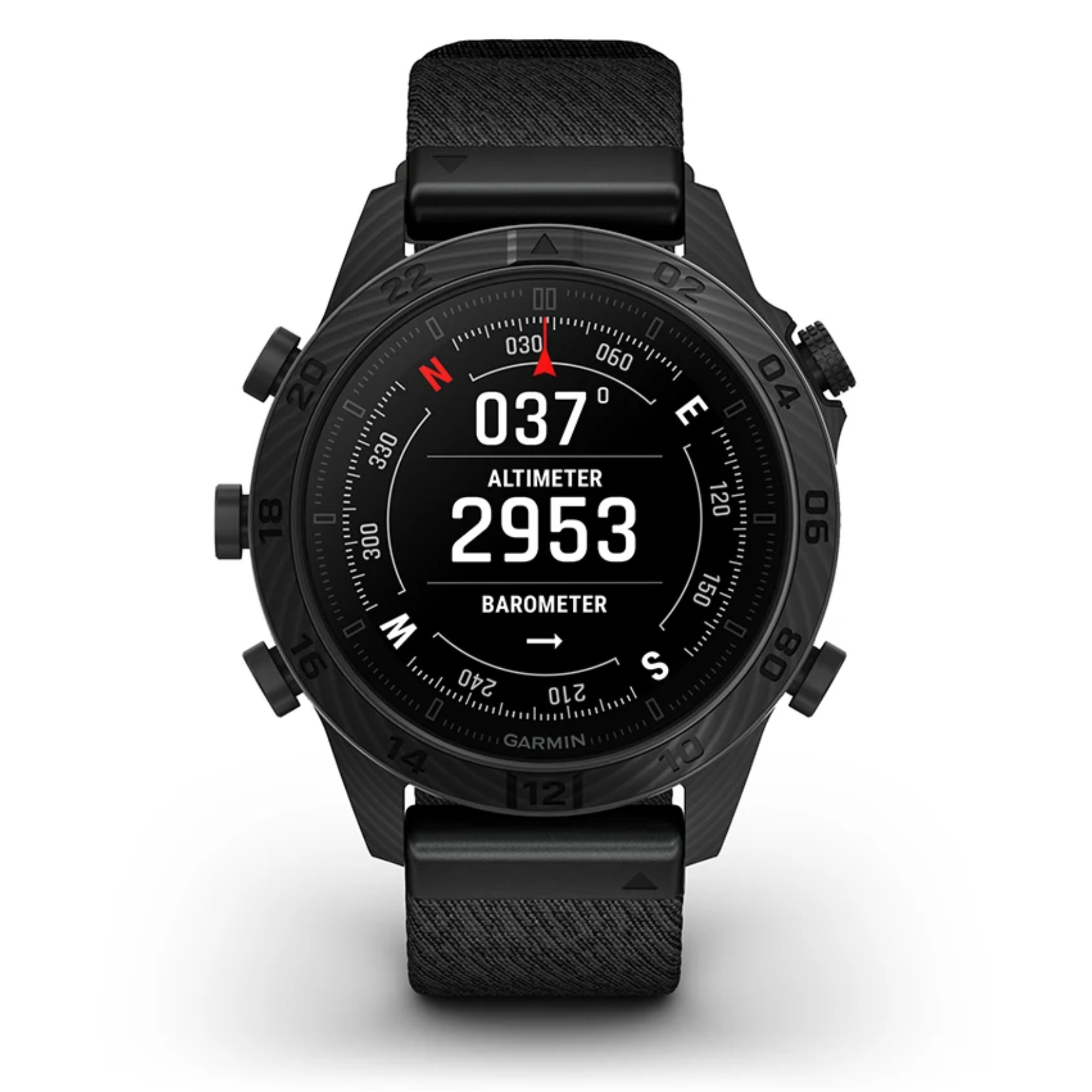 La Maison Garmin a choisi le Carbone car cette matière représente la performance. Utilisé dans de nombreux domaines comme l'aviation, le cyclisme ou encore l'automobile il est devenu indispensable dans les sports de pointe. Il représente la légèreté et la résistance mais nécessite de nombreuses heures de travail pour arriver à un résultat comme la Marq Gen 2, environ 50 jours pour fabriquer une Marq Carbon avec pas moins de 60 étapes et 130 couches de feuilles de carbone disposées manuellement. Un matériau technique à l'image de la collection Tool Watch et athlétique avec un design associé aux performances de la gamme Marq.