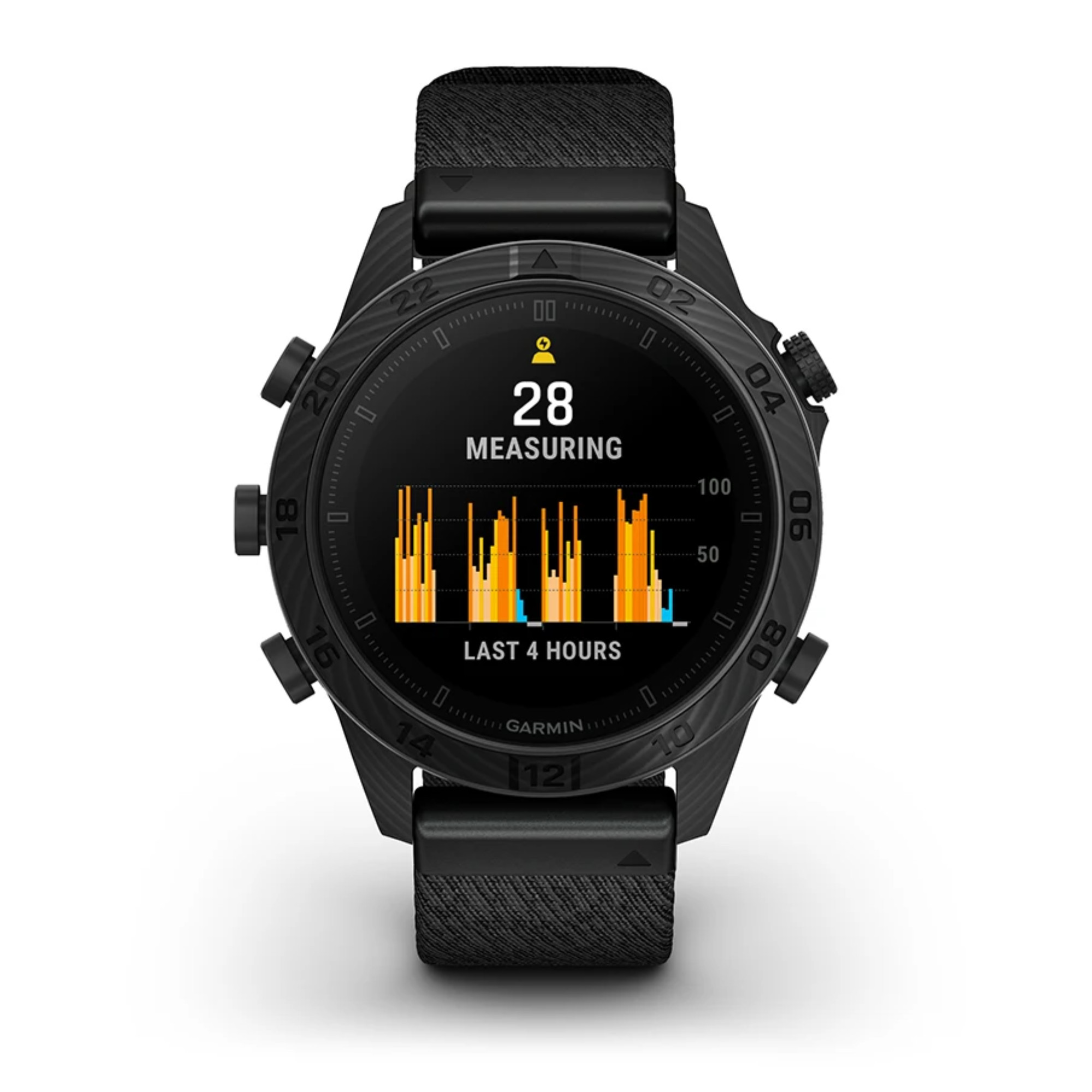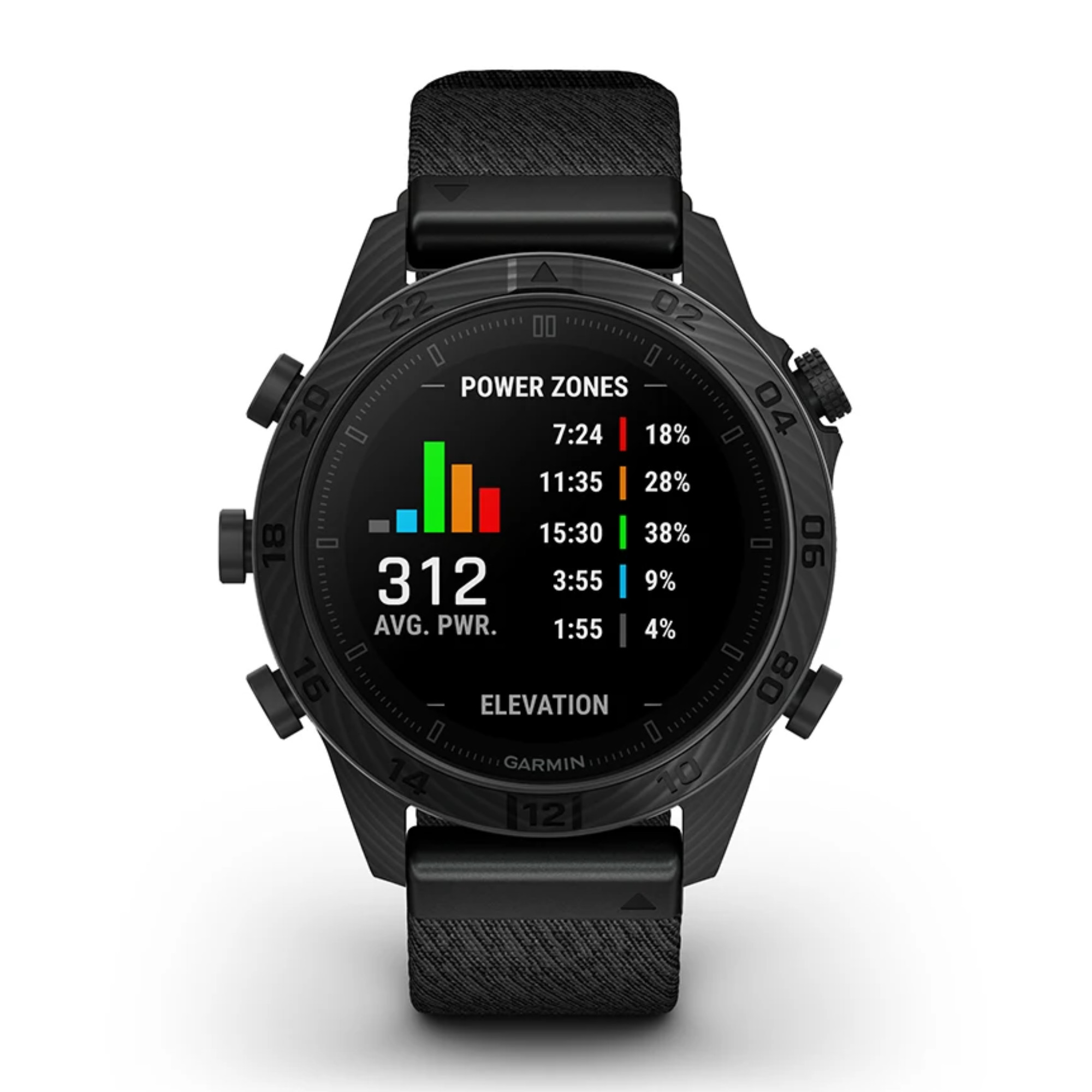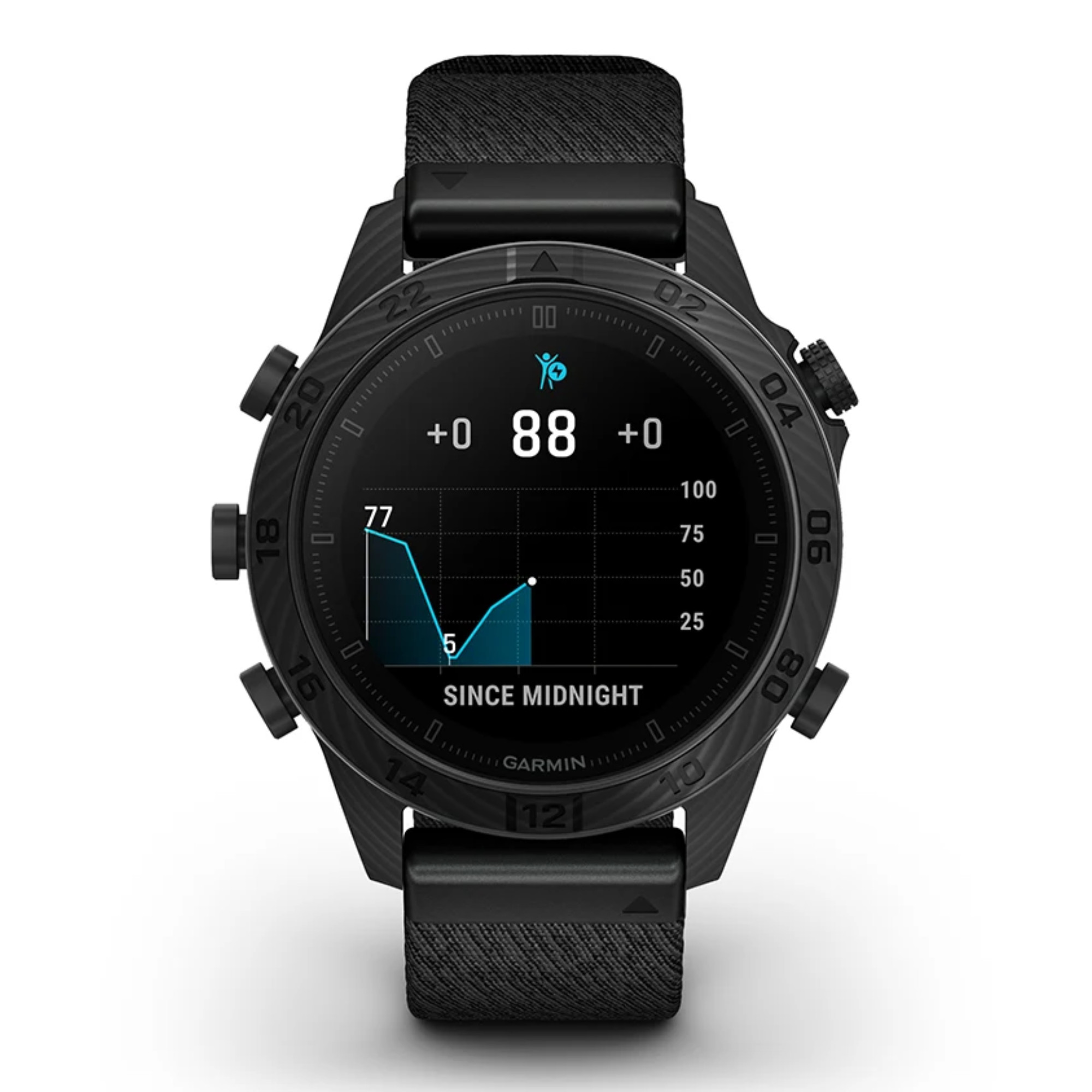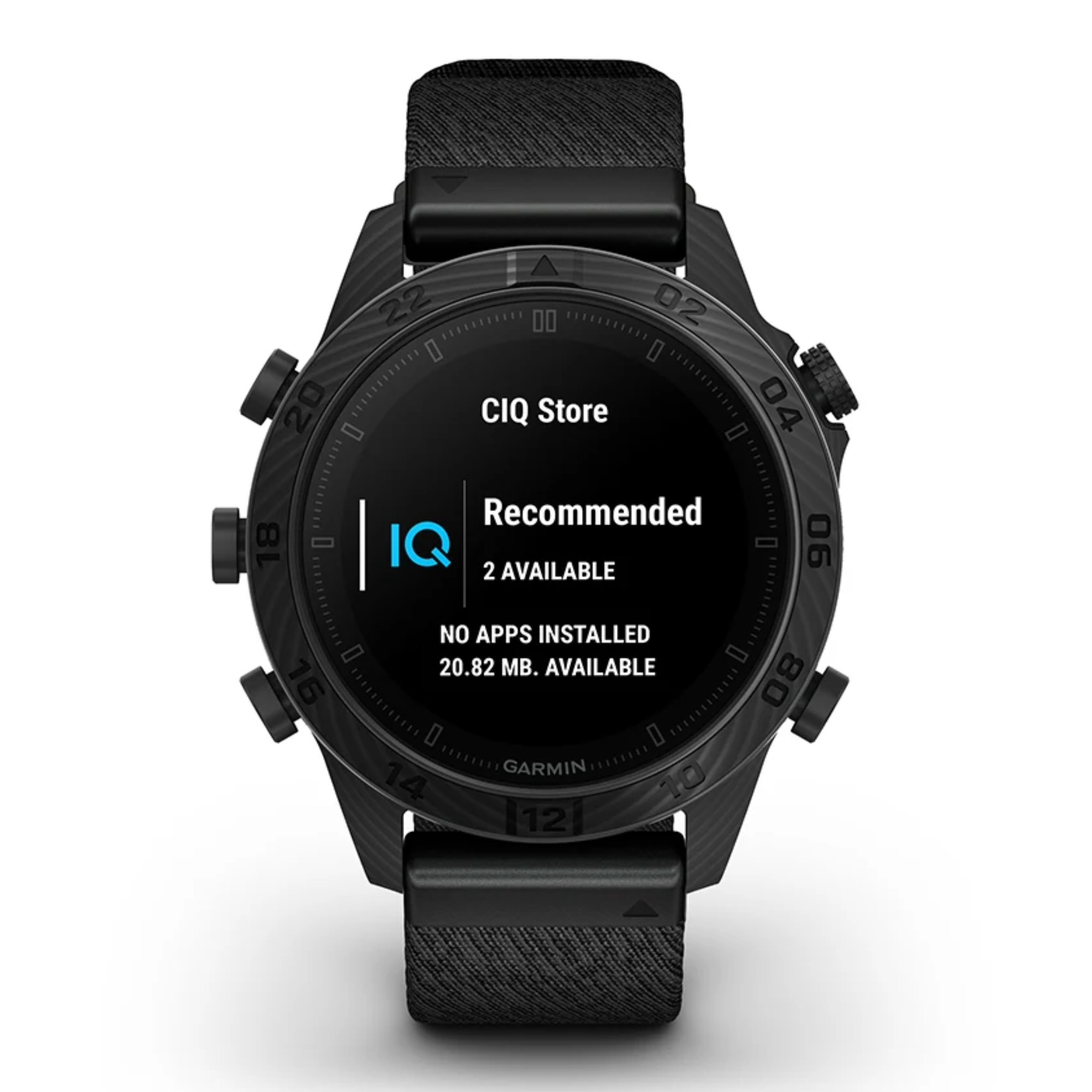 La Maison Garmin a choisi le Carbone car cette matière représente la performance. Utilisé dans de nombreux domaines comme l'aviation, le cyclisme ou encore l'automobile il est devenu indispensable dans les sports de pointe. Il représente la légèreté et la résistance mais nécessite de nombreuses heures de travail pour arriver à un résultat comme la Marq Gen 2, environ 50 jours pour fabriquer une Marq Carbon avec pas moins de 60 étapes et 130 couches de feuilles de carbone disposées manuellement. Un matériau technique à l'image de la collection Tool Watch et athlétique avec un design associé aux performances de la gamme Marq.