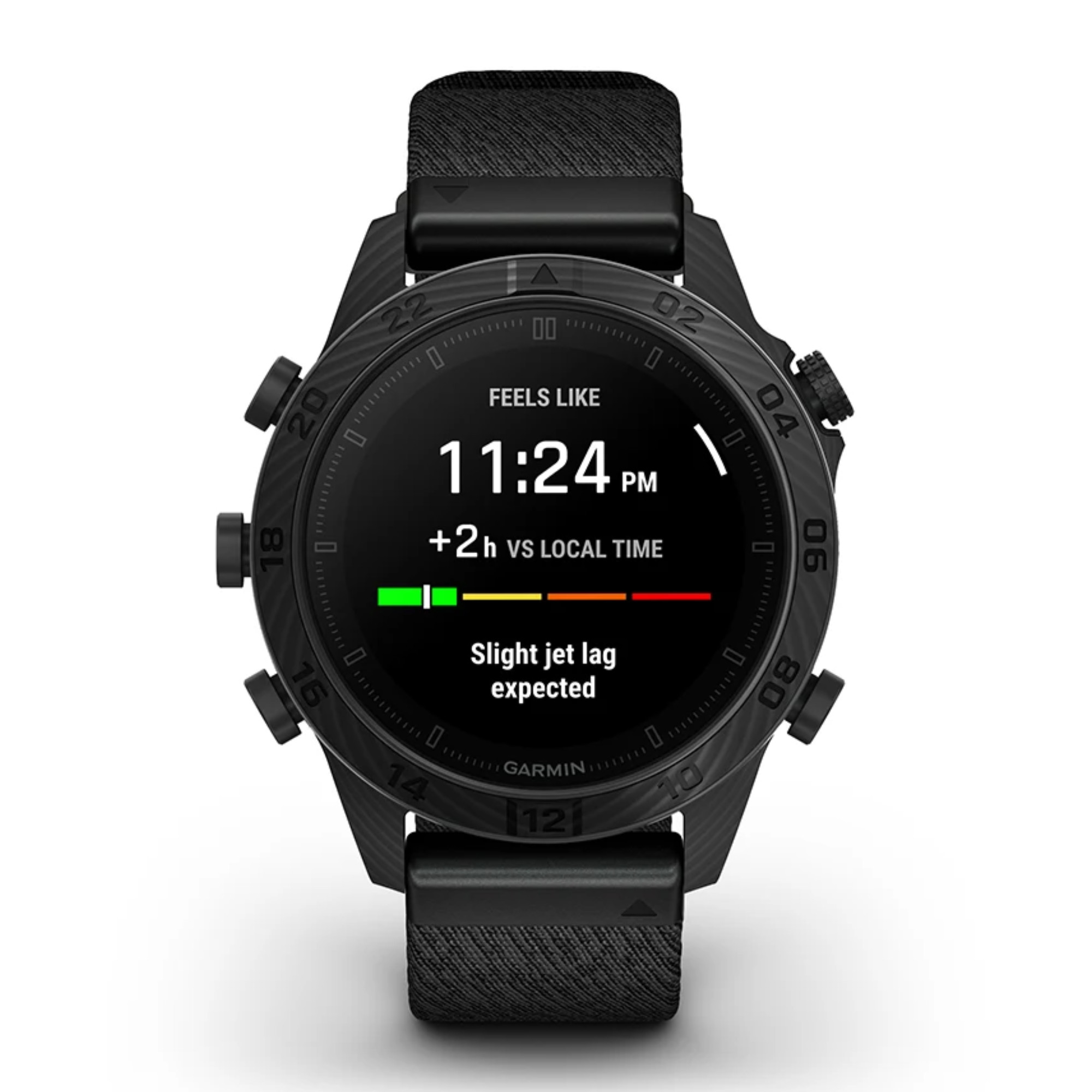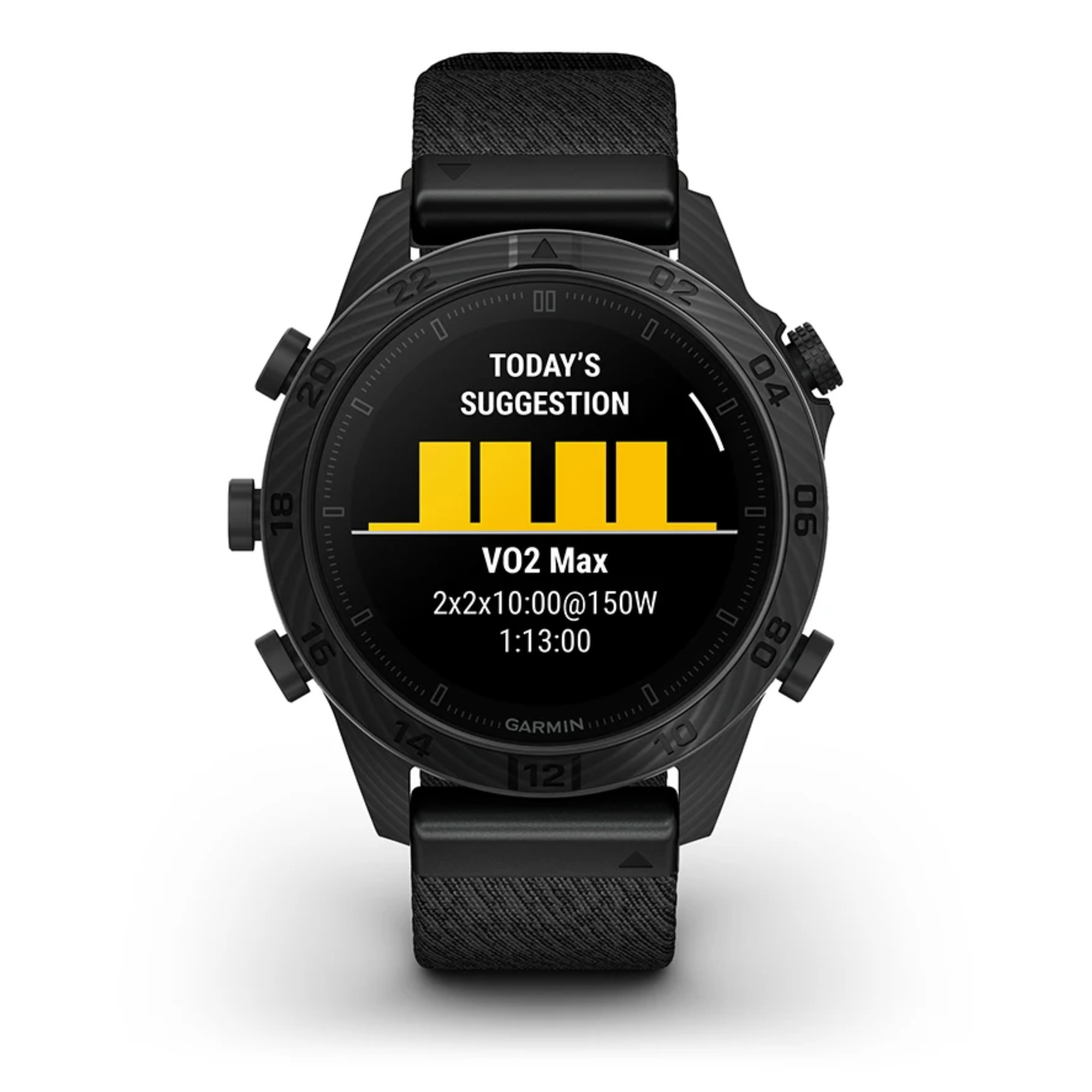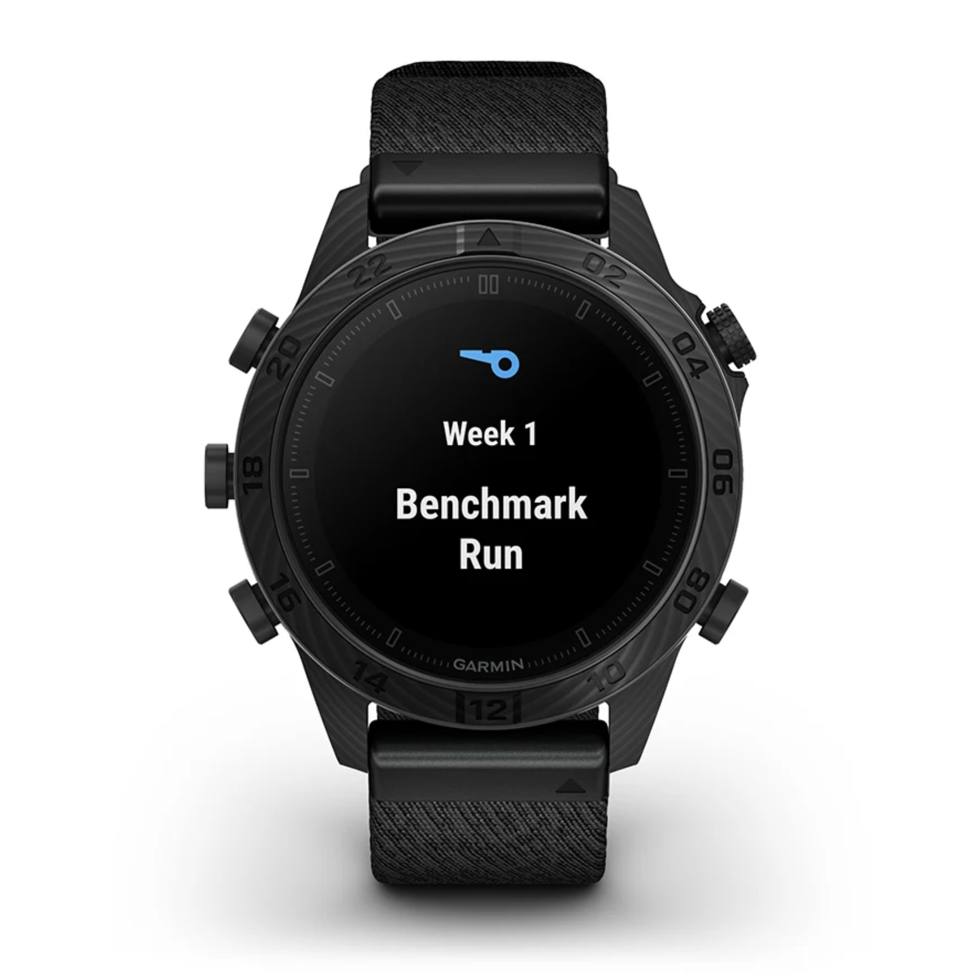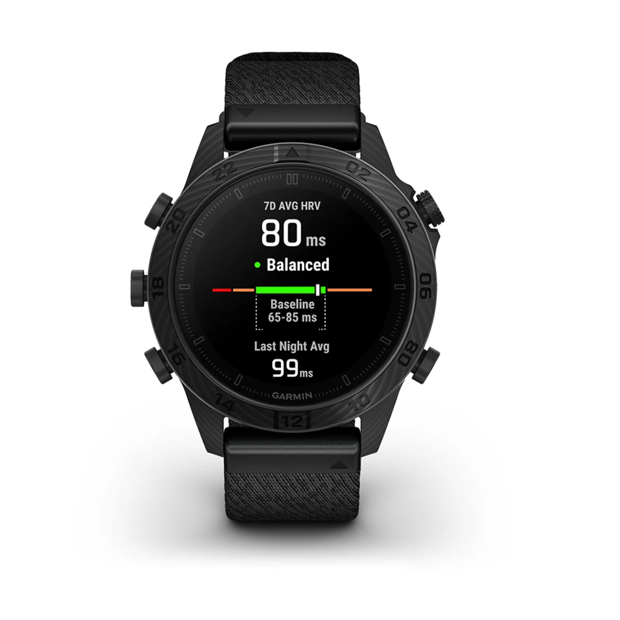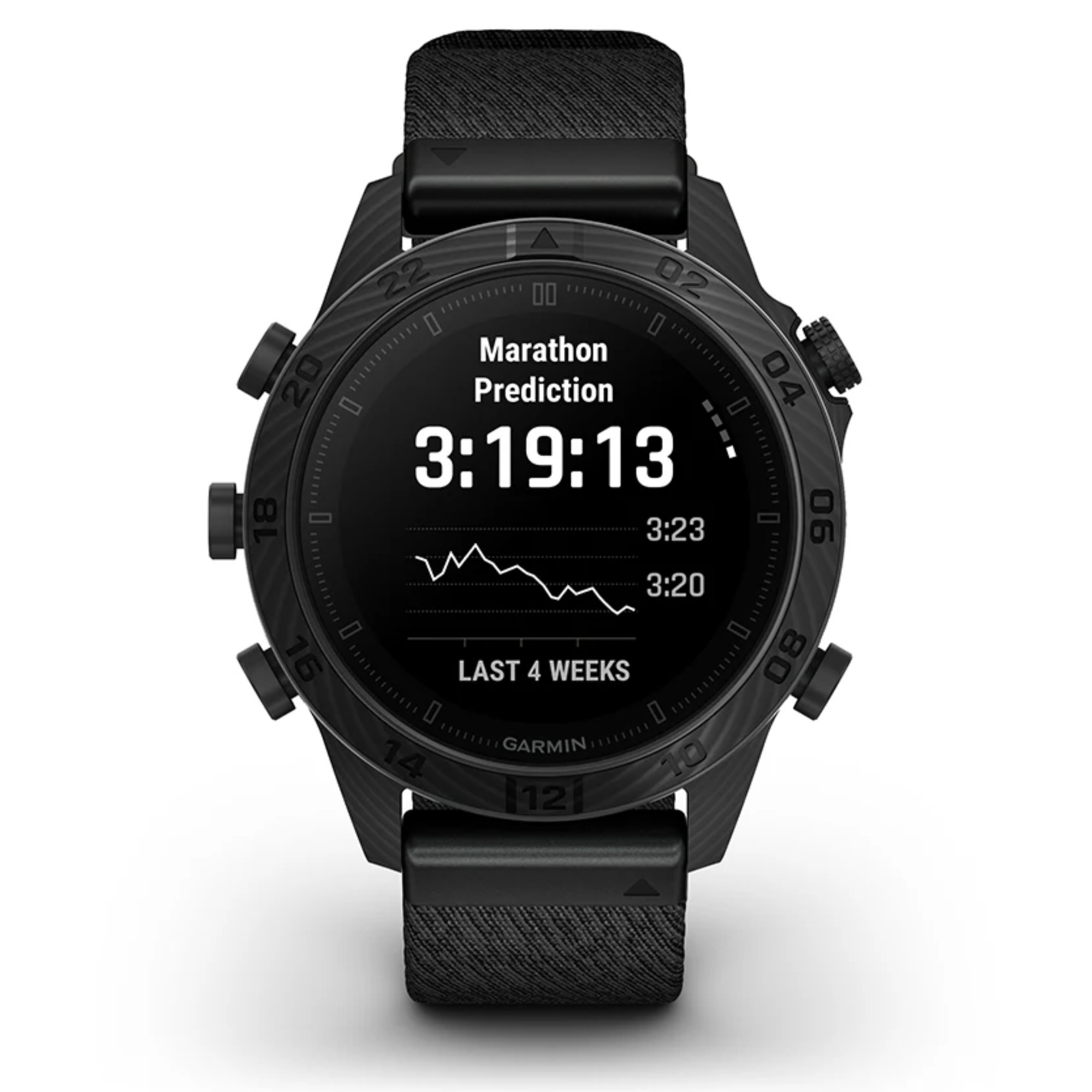 La Maison Garmin a choisi le Carbone car cette matière représente la performance. Utilisé dans de nombreux domaines comme l'aviation, le cyclisme ou encore l'automobile il est devenu indispensable dans les sports de pointe. Il représente la légèreté et la résistance mais nécessite de nombreuses heures de travail pour arriver à un résultat comme la Marq Gen 2, environ 50 jours pour fabriquer une Marq Carbon avec pas moins de 60 étapes et 130 couches de feuilles de carbone disposées manuellement. Un matériau technique à l'image de la collection Tool Watch et athlétique avec un design associé aux performances de la gamme Marq.
