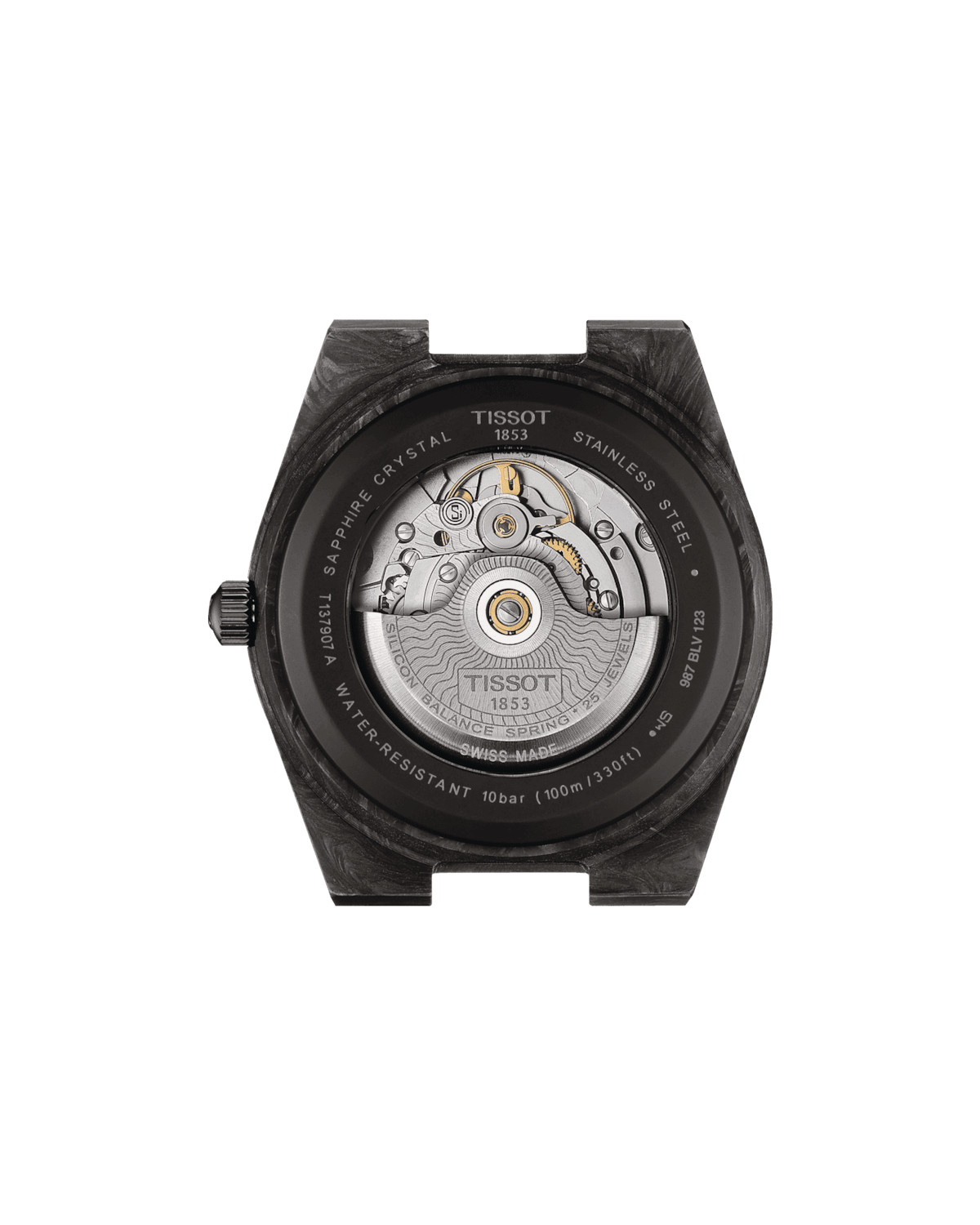 Au cœur de cette montre bat le mouvement Powermatic 80, un calibre automatique reconnu pour son incroyable précision et sa réserve de marche de 80 heures. Idéal pour ceux qui recherchent une montre performante et fiable, ce mouvement suisse garantit une endurance exceptionnelle. Le fond de boîte transparent permet de contempler la beauté mécanique de ce mouvement automatique, ajoutant une dimension supplémentaire à l'expérience horlogère. Avec le Powermatic 80, la Tissot PRX Carbone allie tradition et innovation.