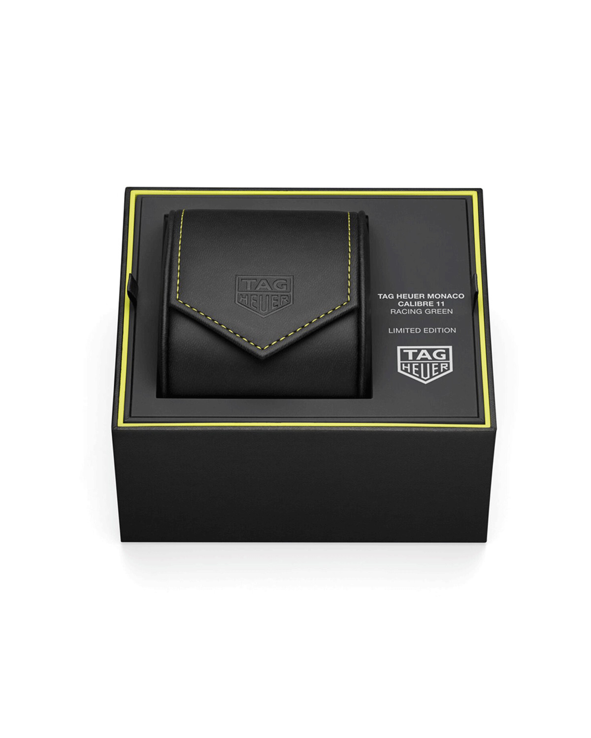 Ce modèle Monaco Racing Green est doté d'un mouvement automatique Calibre 11 swiss made, cette montre au boîtier de 39 mm de diamètre conserve les codes qui ont bâti sa renommée, tout en s'imprégnant des couleurs qui forgent les course auto d'autrefois. Son cadran ainsi que son bracelet se parent des couleurs vert et jaune, tandis que les logos des deux Maisons sont imprimés et fièrement portés par l'ensemble. Démarquez-vous et vivez votre passion à 100 à l'heure avec cette TAG Heuer Monaco Chronograph Racing Blue. Le cadran est orné de huit index appliqués, polis et argentés, ainsi que de 12 index Super- LumiNova® vert clair pour une meilleure lisibilité. À 12 heures, un marqueur facetté est rehaussé d’une bande jaune vibrante, un rappel de l’aiguille centrale jaune du chronographe et les touches de jaune ornant les célèbres voitures de course.