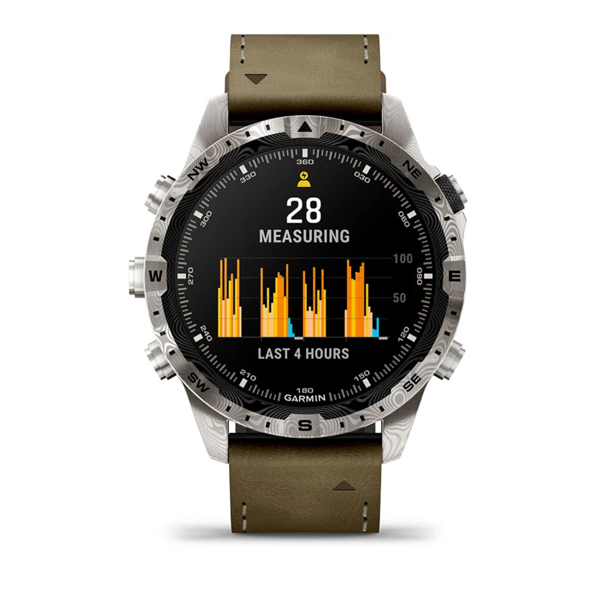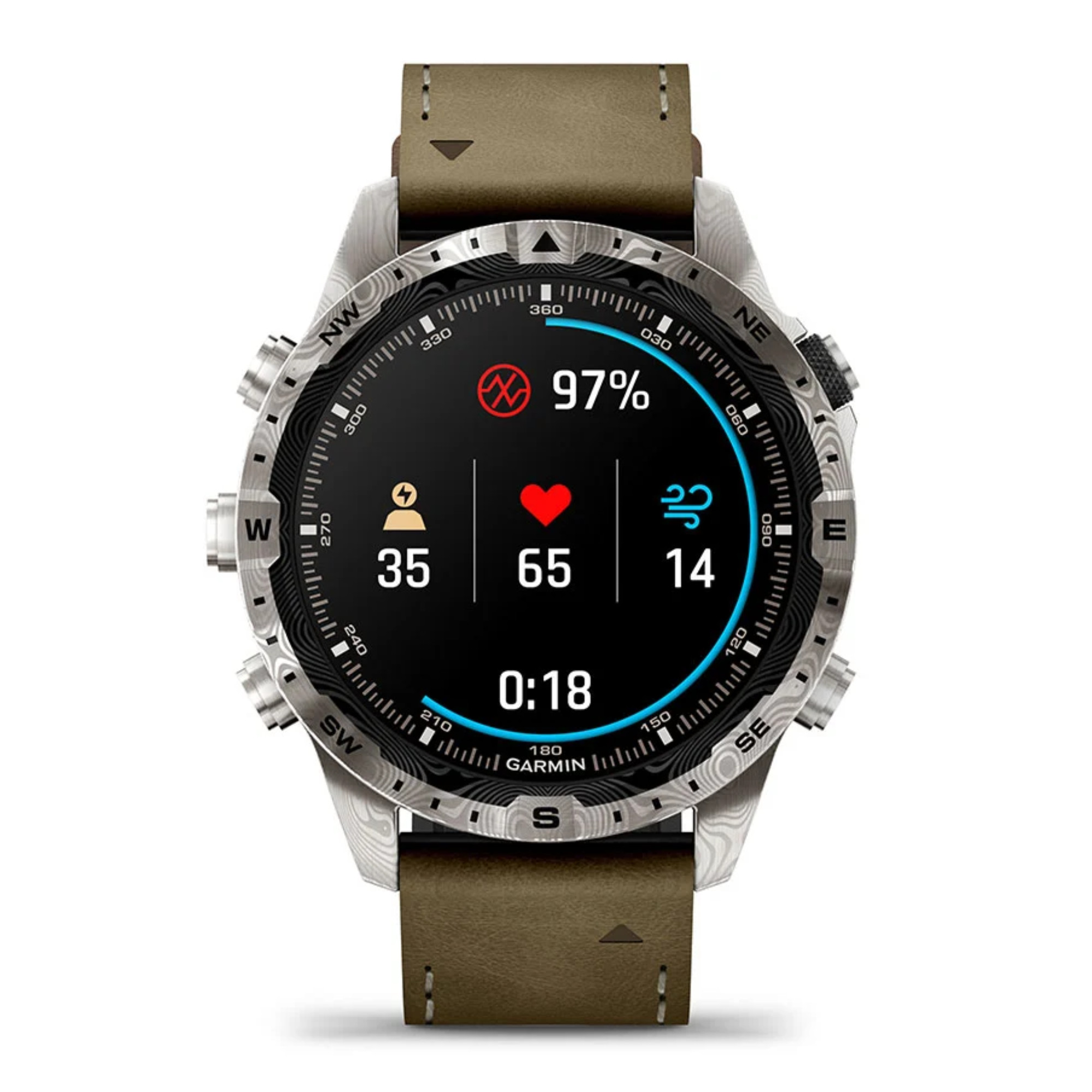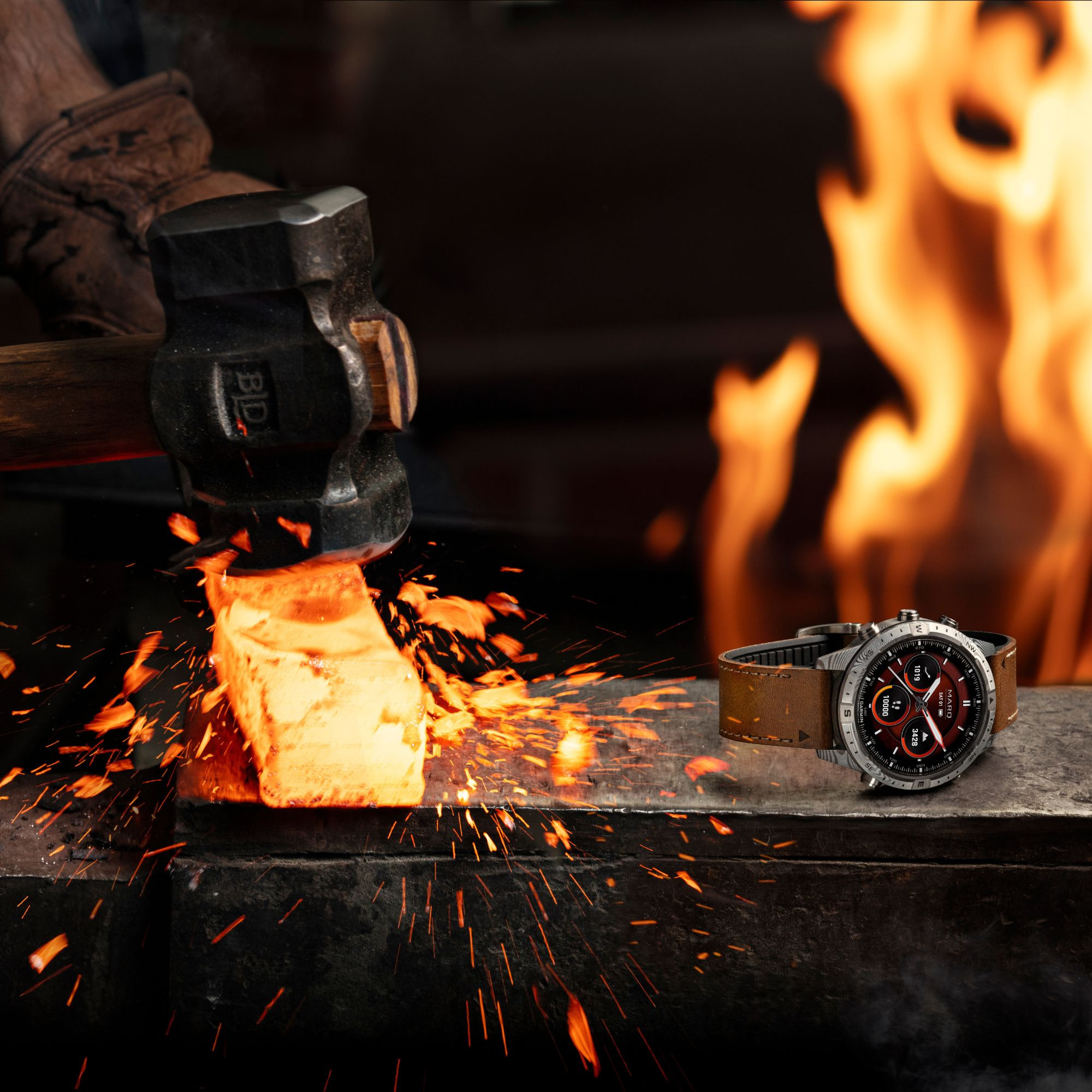Découvrez la MARQ® Adventurer (Gen 2) – Damascus Steel Edition, une montre connectée de luxe alliant tradition et innovation. Forgée à partir d'acier de Damas, elle est le fruit d'un savoir-faire ancestral, offrant une solidité inégalée et des motifs uniques créés par les couches d'acier pliées et vrillées ensemble. Ce modèle est conçu pour les aventuriers exigeants, avec un écran AMOLED tactile de 46 mm protégé par un verre saphir bombé, et un bracelet hybride en cuir et caoutchouc, résistant à la sueur et aux taches.
