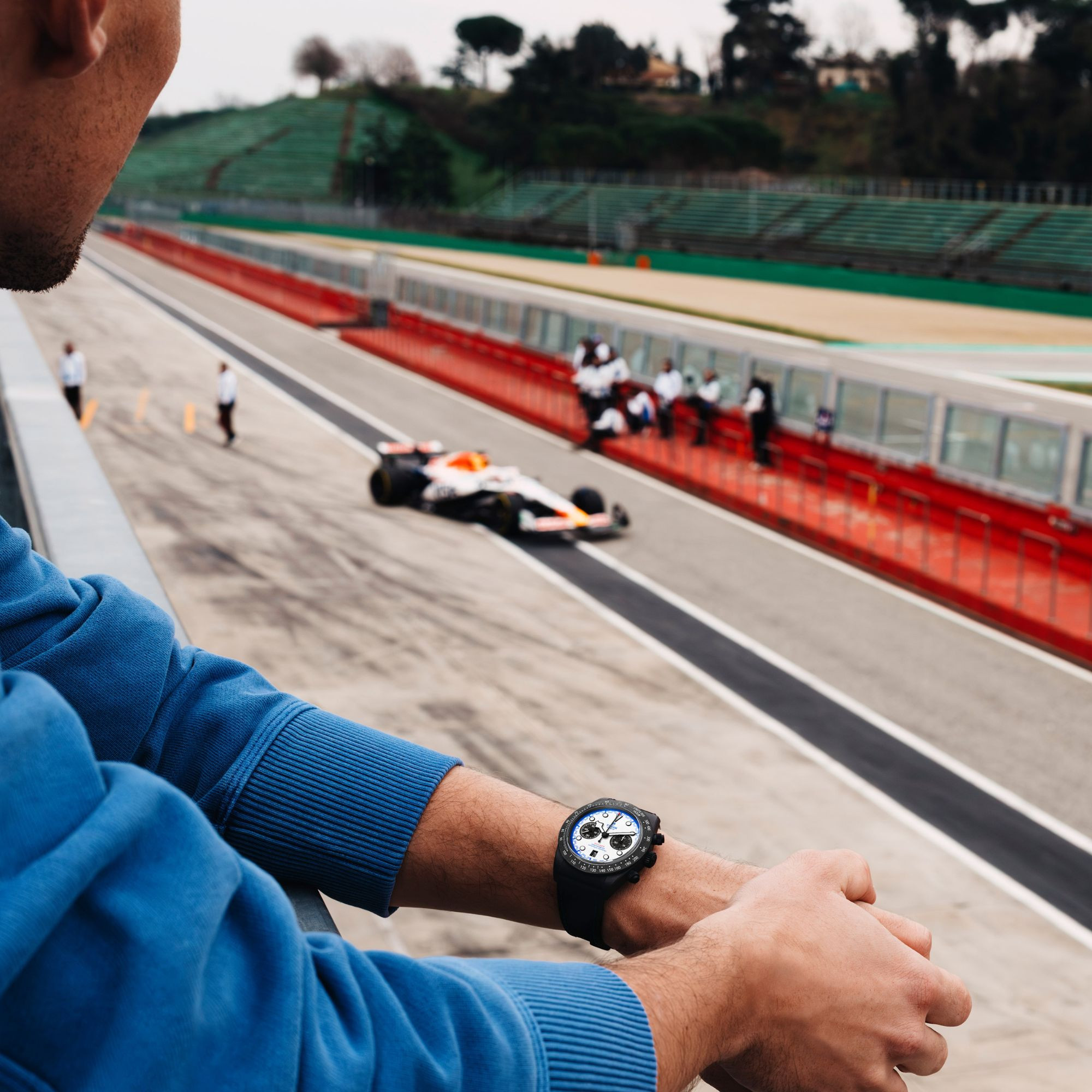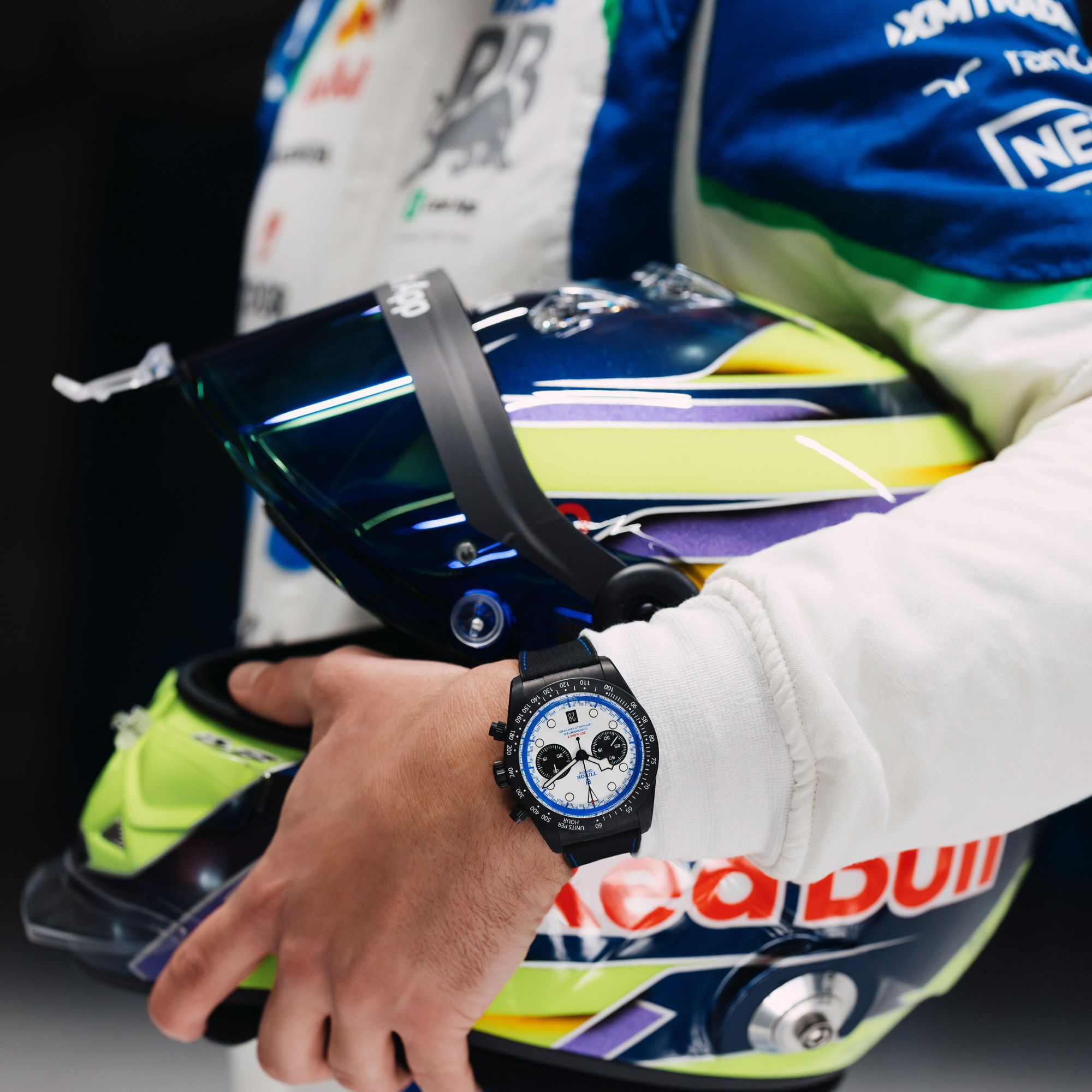 Depuis les années 50, TUDOR tisse un lien fort avec la course. La Black Bay Chrono Carbon 25 rend hommage à cet héritage avec un design inspiré de la Visa Cash App Racing Bulls F1. Produite à 2 025 exemplaires, elle célèbre la passion de la marque pour la vitesse.
