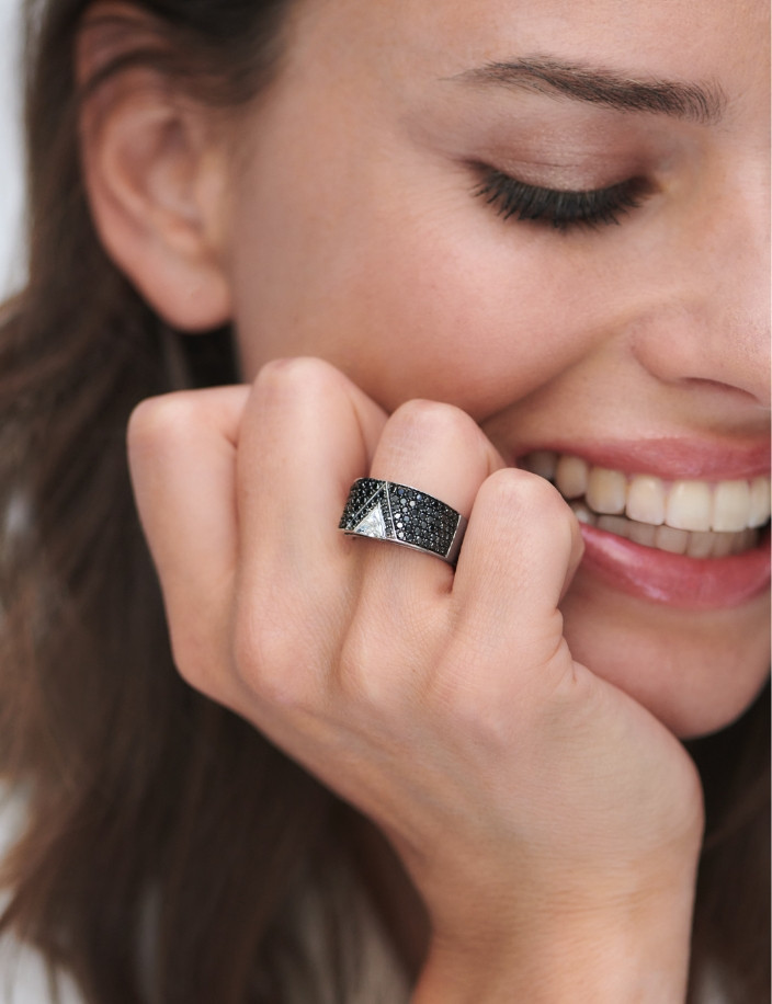 Bague La Prestigieuse en or blanc, diamant et diamants noirs
