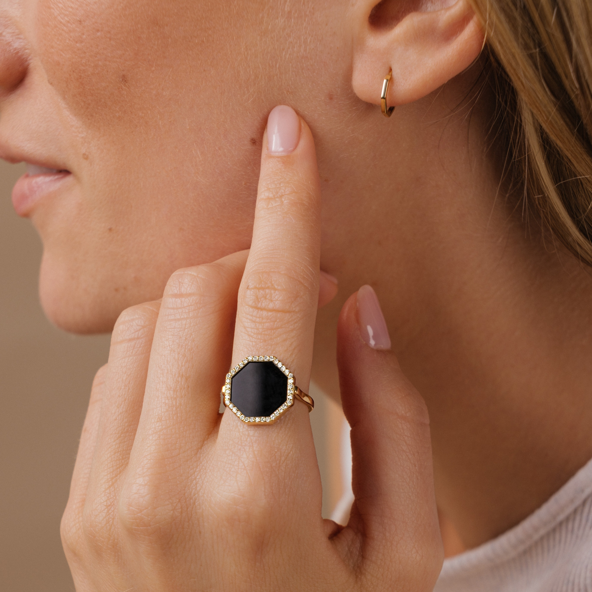 Nous utilisons exclusivement de l’or 750 millièmes dans la réalisation de nos collections, c’est-à-dire la plus belle qualité d’or qu’il soit possible de trouver en bijouterie. Cette matière est en réalité un alliage, composé à 75% d’or pur, et à 25% d’autres métaux précieux afin de lui donner une consistance et une couleur spécifique. En effet, il est impossible de travailler avec de l’or pur, qui est beaucoup trop mou et malléable. Afin de le solidifier et de le façonner, il est donc associé à du cuivre, de l’argent ou du palladium dans des proportions différentes en fonction du rendu final que l’on souhaite lui donner. Pour de l’or rose, une proportion de cuivre plus importante sera ajoutée, ce qui confèrera une douce teinte rosée. Pour obtenir de l’or blanc, c’est l’argent et le palladium qui offriront la nuance grise-argentée à l’alliage (d’ailleurs l’or blanc est également appelé or gris). Le bijou sera ensuite recouvert d’une fine couche de rhodium lors de l’étape du rhodiage, ce qui lui apportera sa blancheur et son éclat. Le rhodiage est à répéter tous les deux ou trois ans afin que votre bijou conserve sa superbe, car il va finir par se patiner naturellement avec le temps.