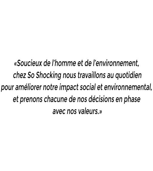 Afin de respecter au mieux la planète et l’environnement, la marque So Shocking s’engage à limiter tant qu’elle peut son empreinte écologique. Pour se faire, elle propose des écrins éco-responsables, fabriqués en matériaux naturels recyclés.