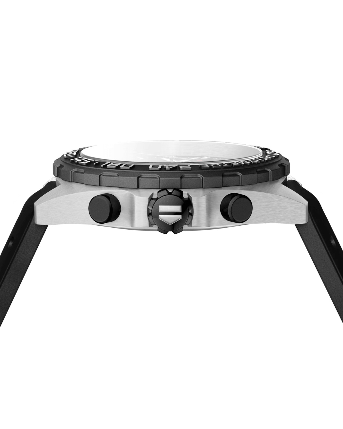 Le bracelet en caoutchouc perforé noir de cette TAG Heuer Formula 1 assure un confort exceptionnel, même lors des activités les plus intenses. Conçu pour résister aux conditions extrêmes, il est à la fois durable et souple, s'ajustant parfaitement à votre poignet. Son design perforé est un clin d'œil aux gants de course des pilotes, offrant une respirabilité idéale lors des journées les plus chaudes. Ce bracelet renforce le caractère sportif de la montre tout en maintenant un style élégant et discret, parfaitement adapté à une tenue casual ou plus habillée.