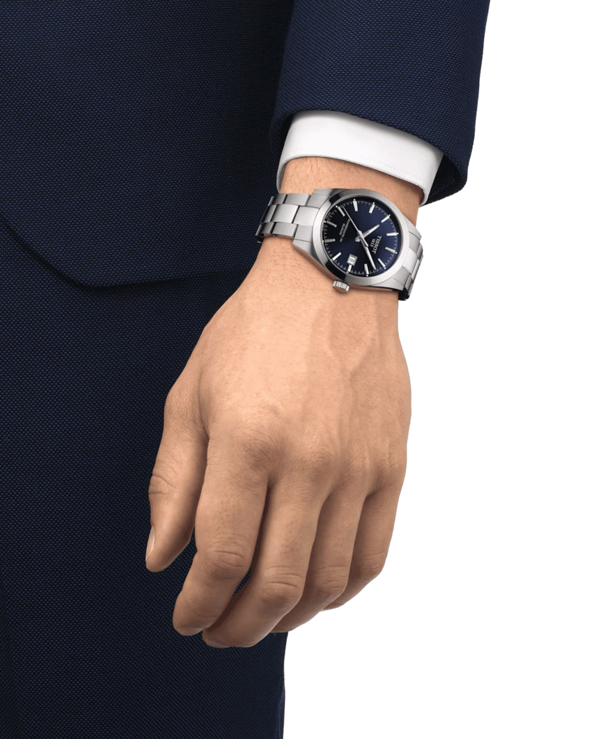Cette Tissot Gentleman au cadran bleu nuit à sa place dans la vie d'un homme actif et polyvalent