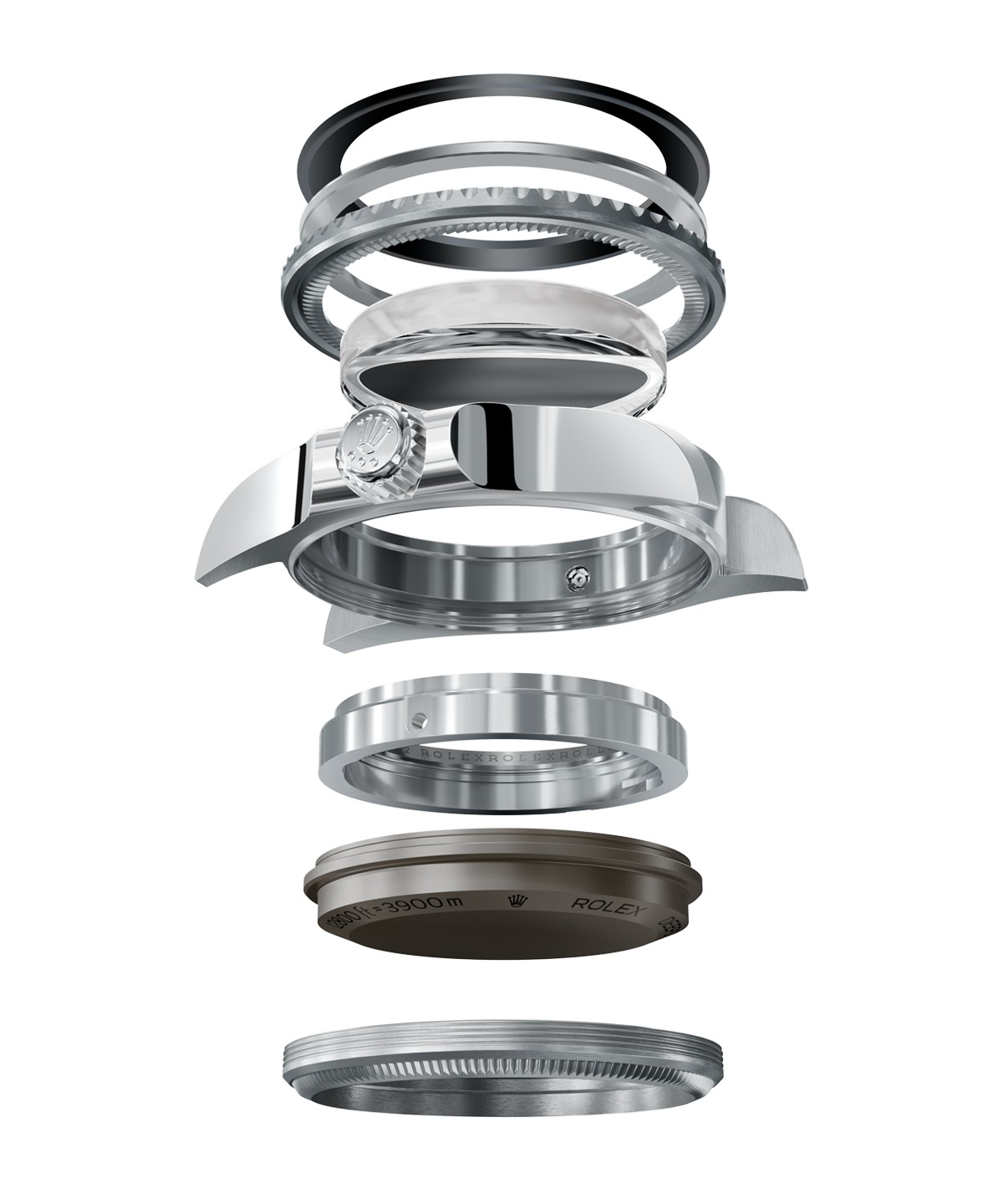 Breveté par Rolex, le système Ringlock équipe la Rolex Deepsea et la Deepsea Challenge, les montres de plongée de la marque conçues pour les profondeurs extrêmes. Prolongeant les recherches sur l’étanchéité de l’Oyster, ce système est une architecture de boîtier renforcée qui combine une épaisse glace saphir légèrement bombée, un anneau de compression haute performance et un fond en titane RLX.